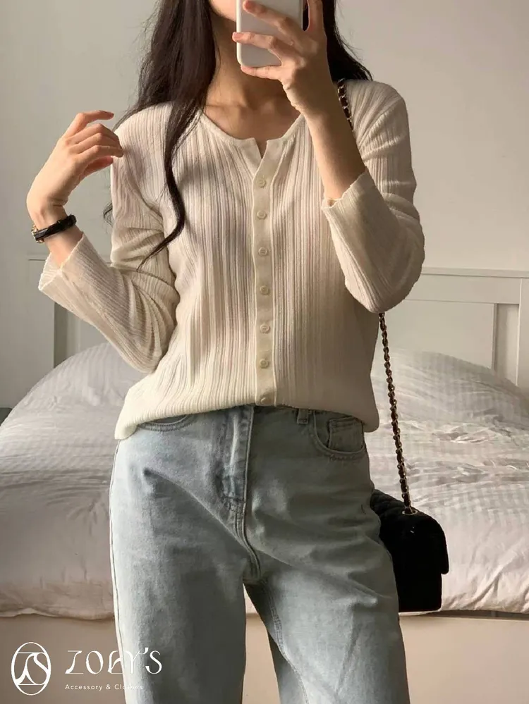 凹凸立體直坑紋+偏長袖長,穿上身有整個人內縮顯瘦的效果!