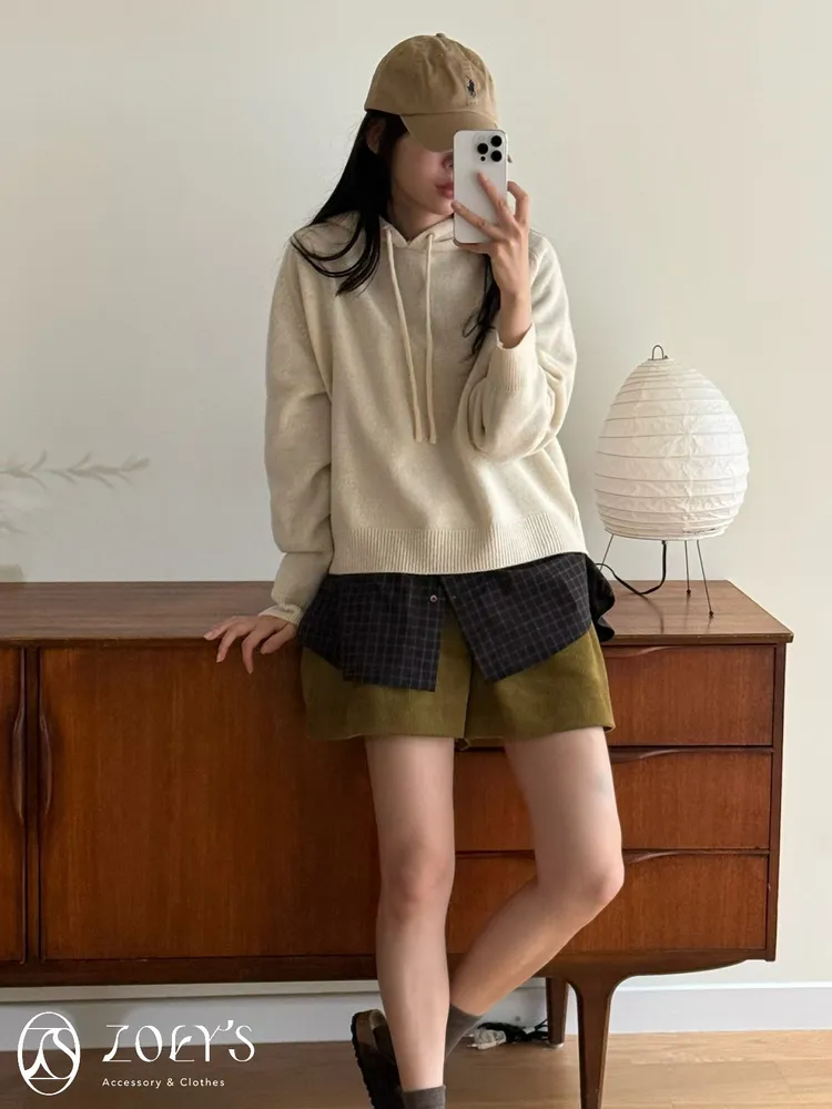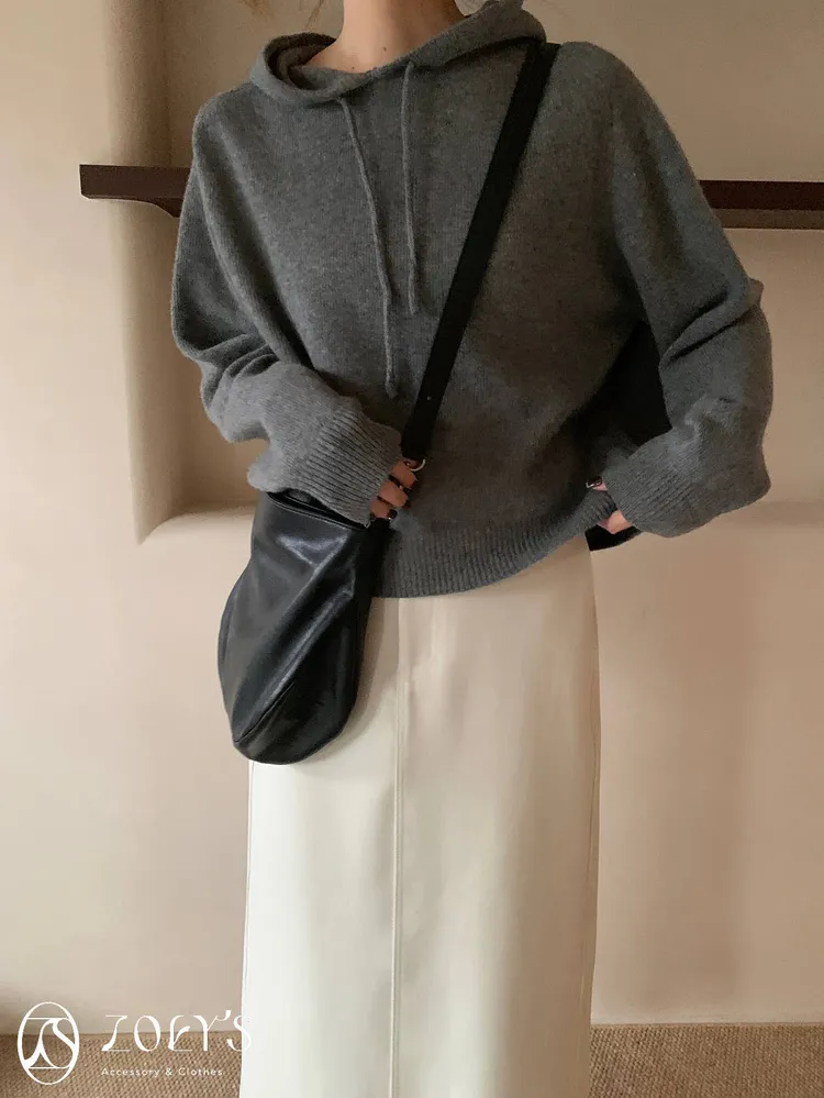 正韓 100%薄軟羊毛連帽上衣 灰/米