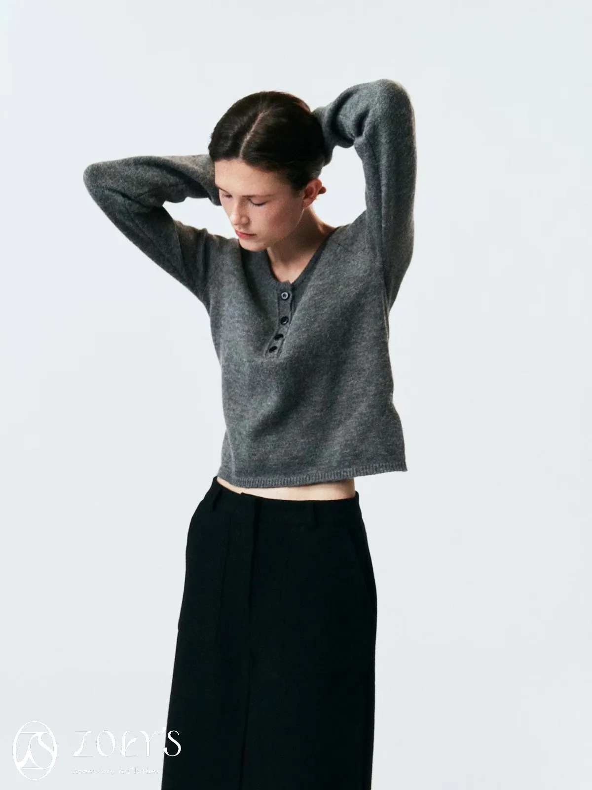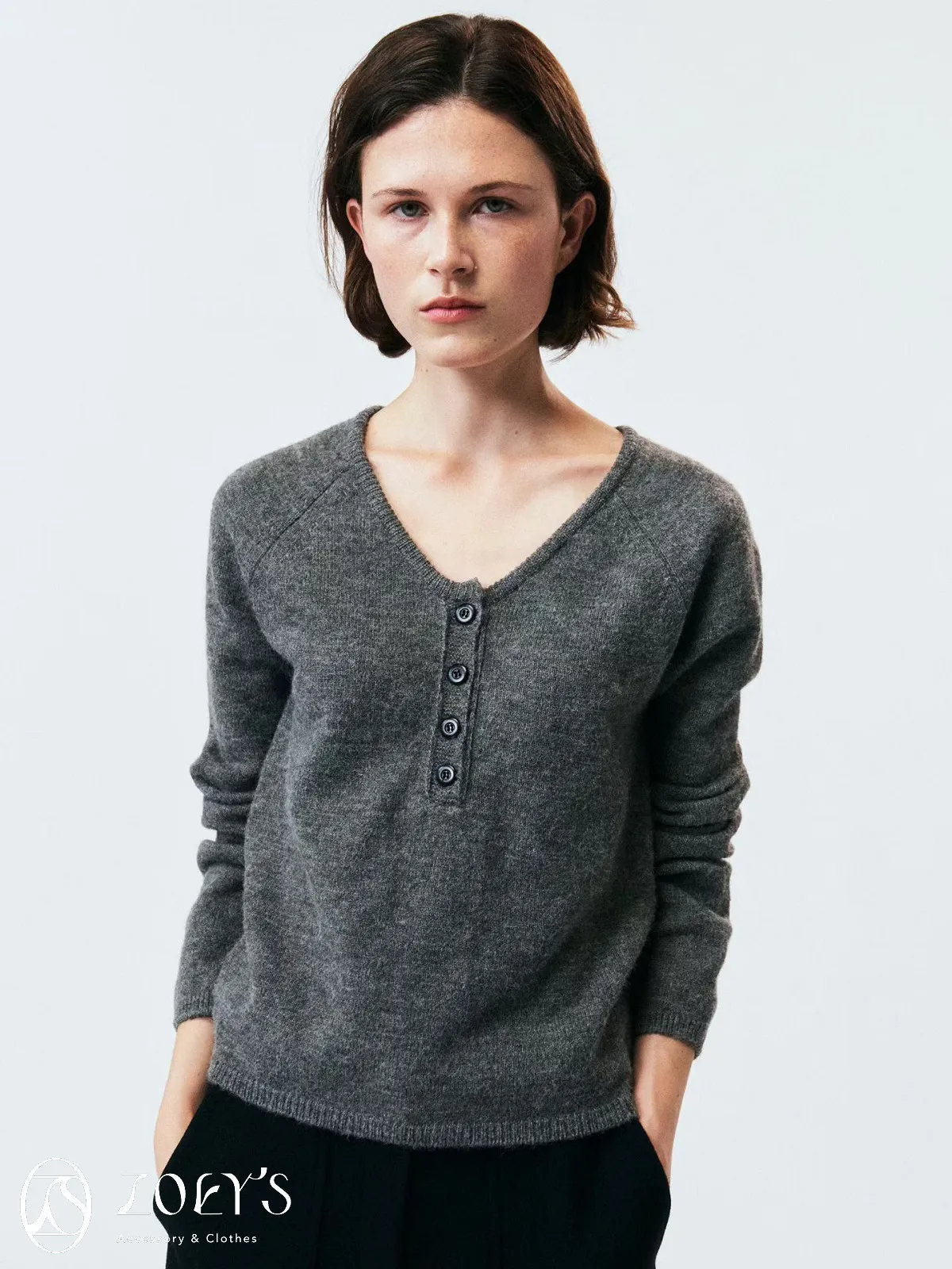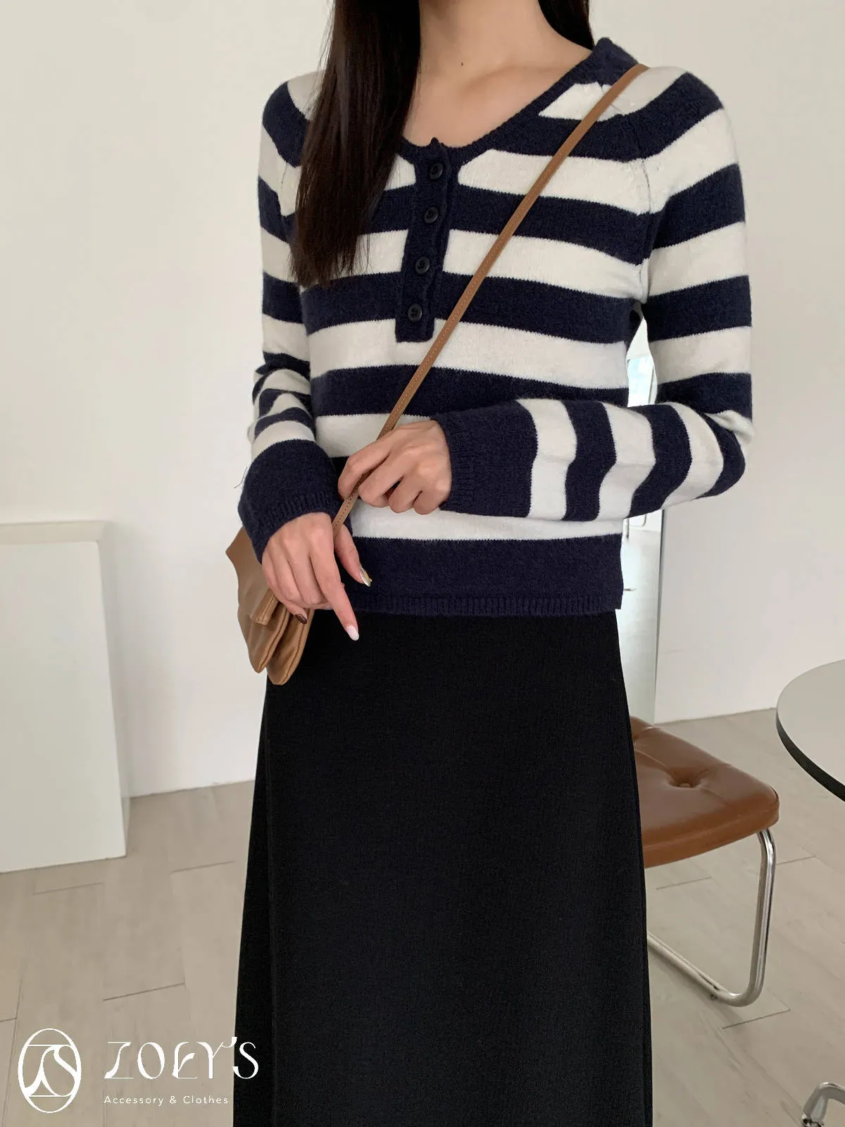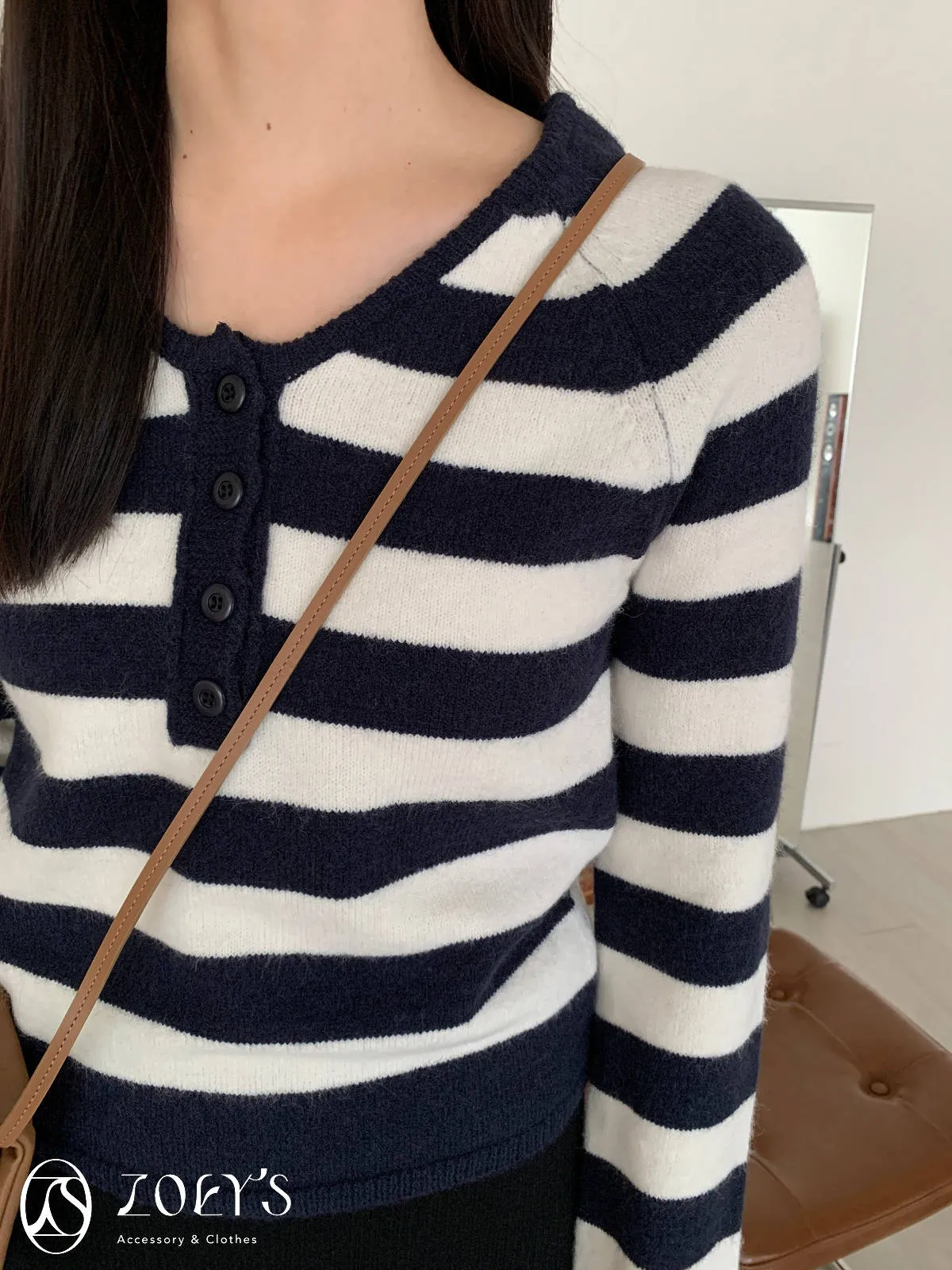 正韓 微V領排扣針織衫 橫紋/深灰