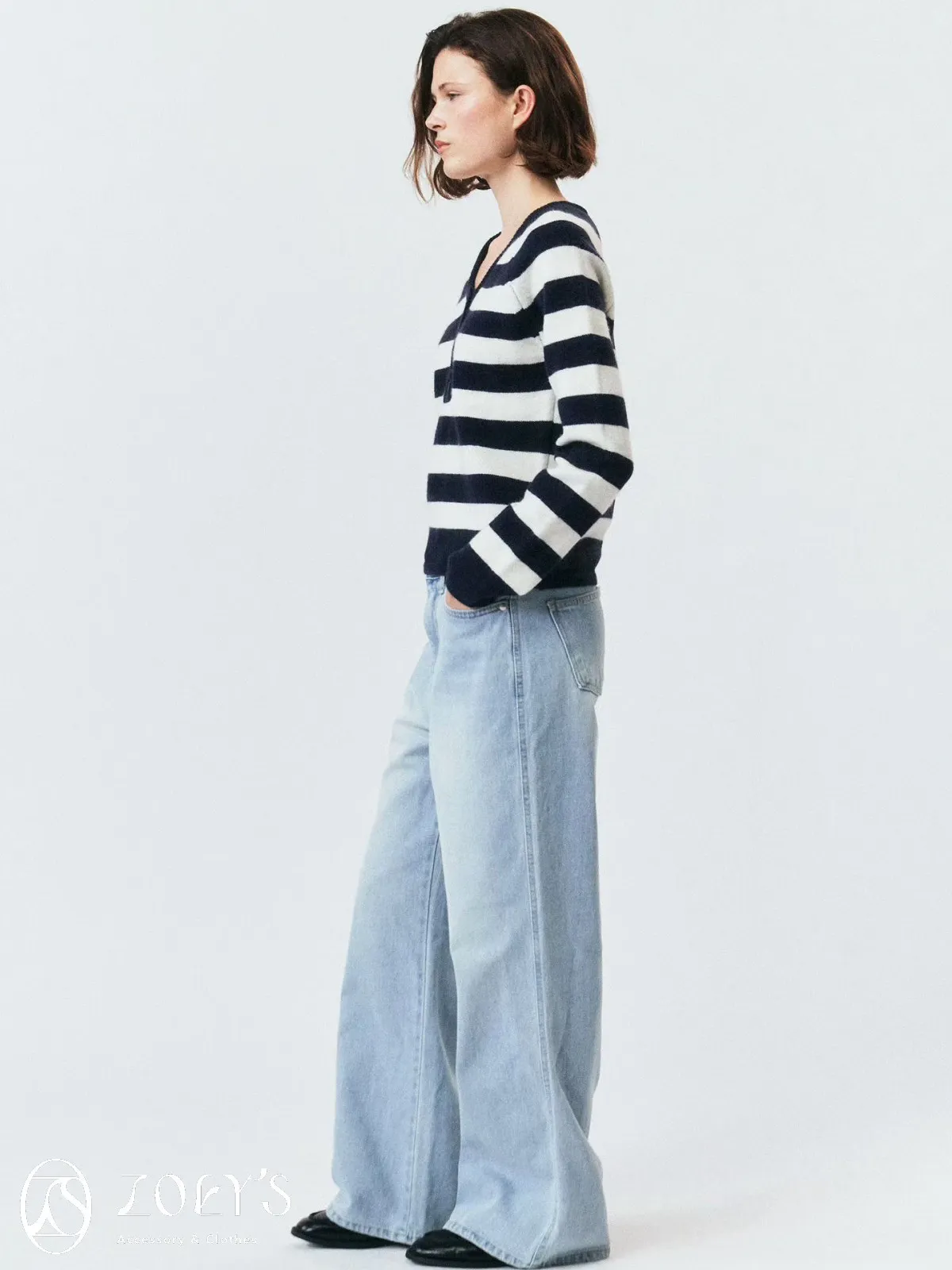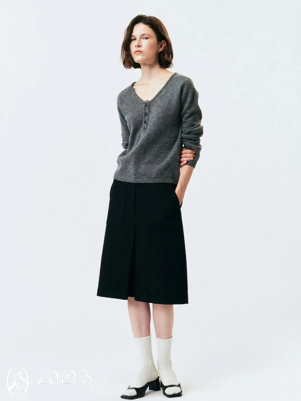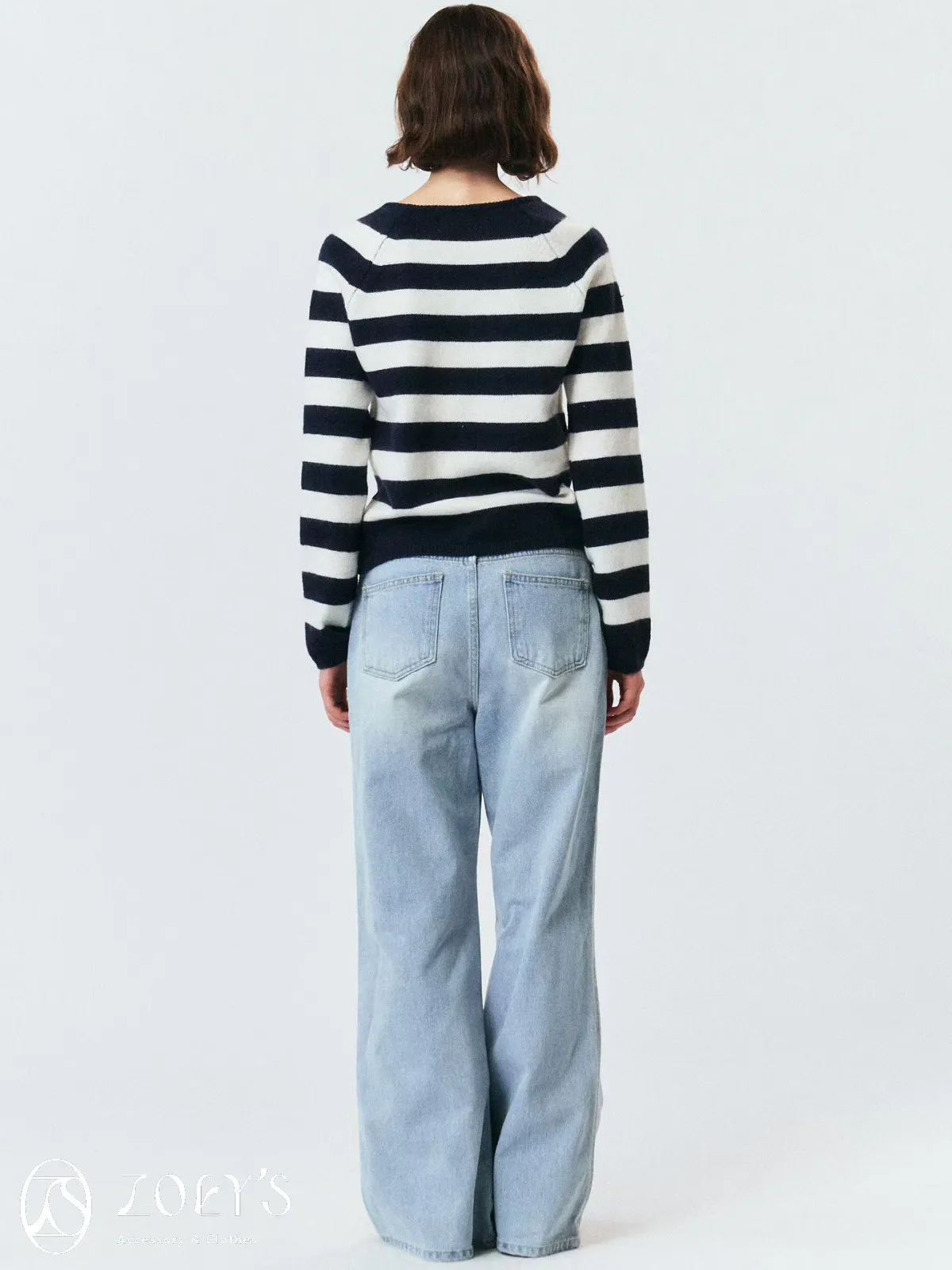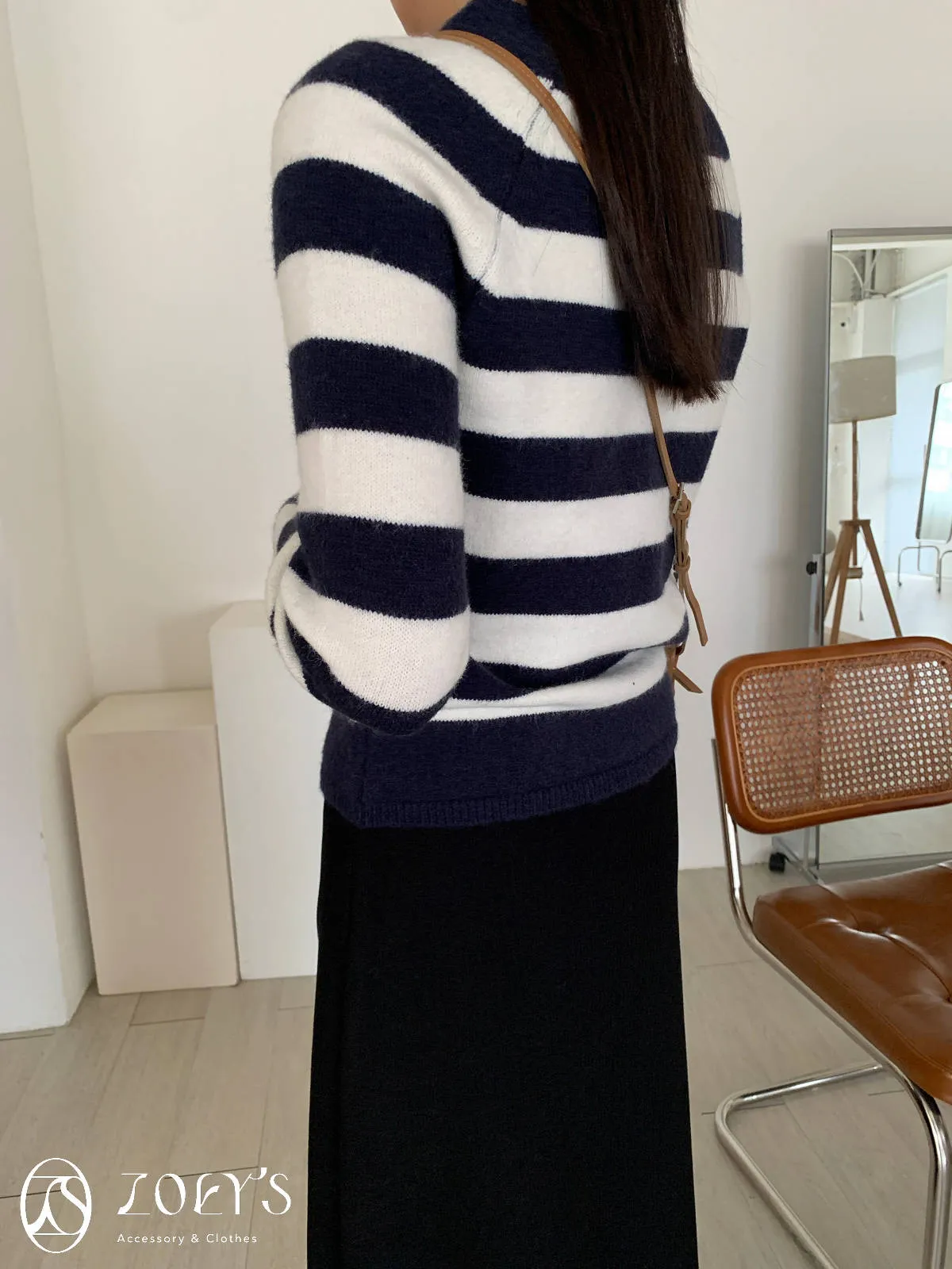 正韓 微V領排扣針織衫 橫紋/深灰