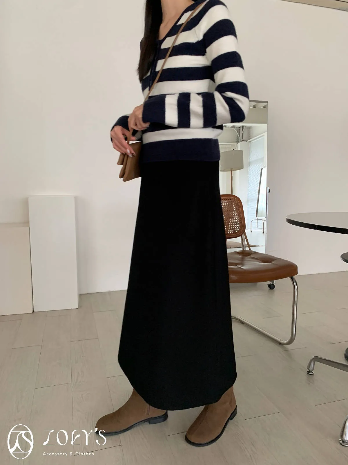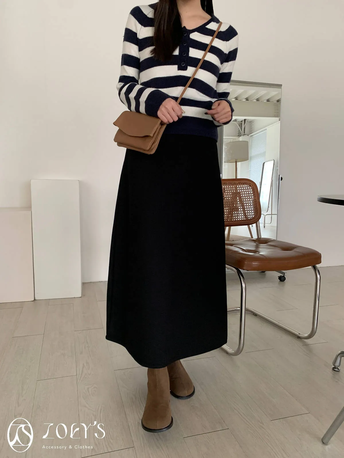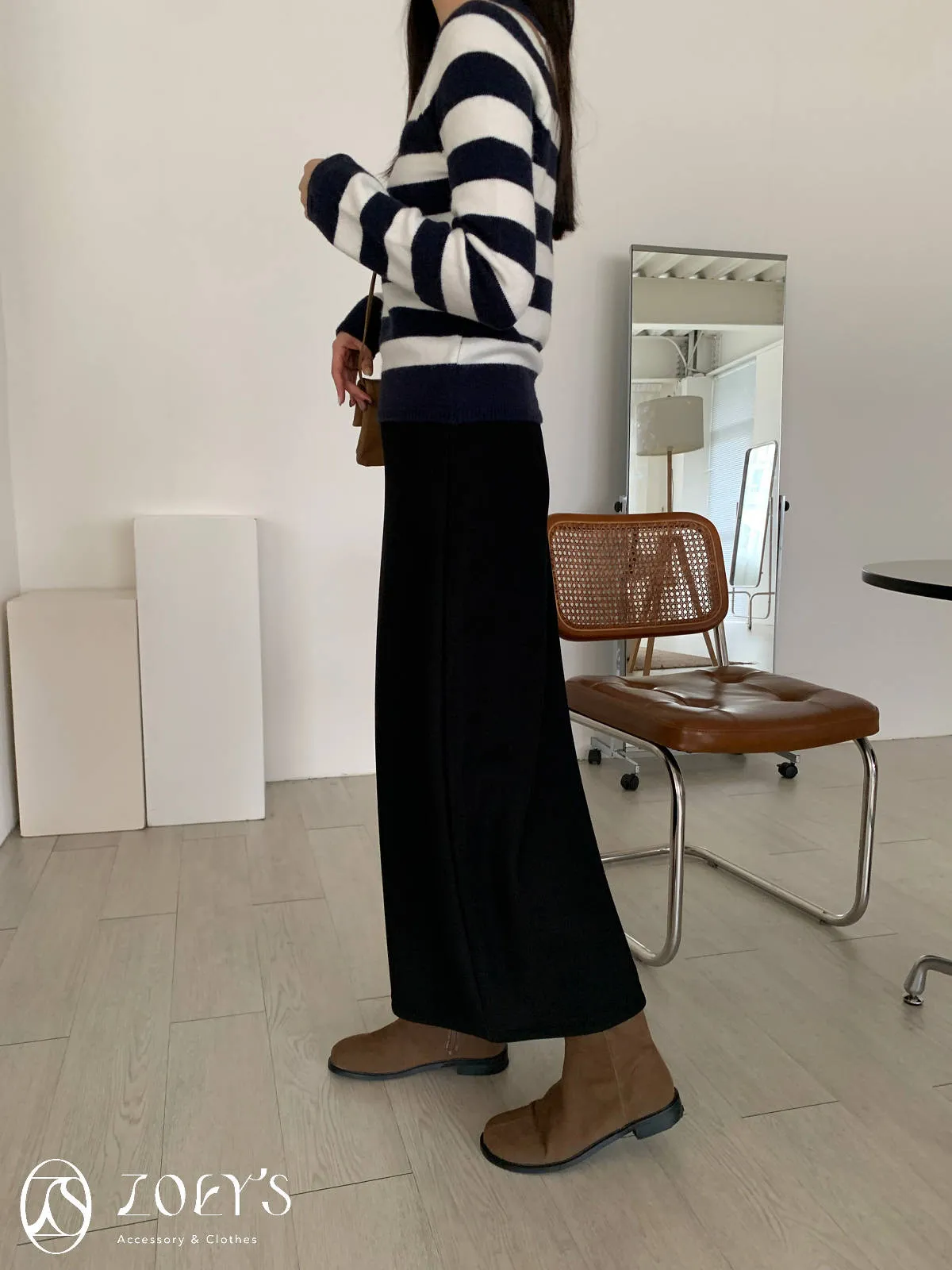 正韓 意外顯瘦腰鬆緊直坑紋開衩裙