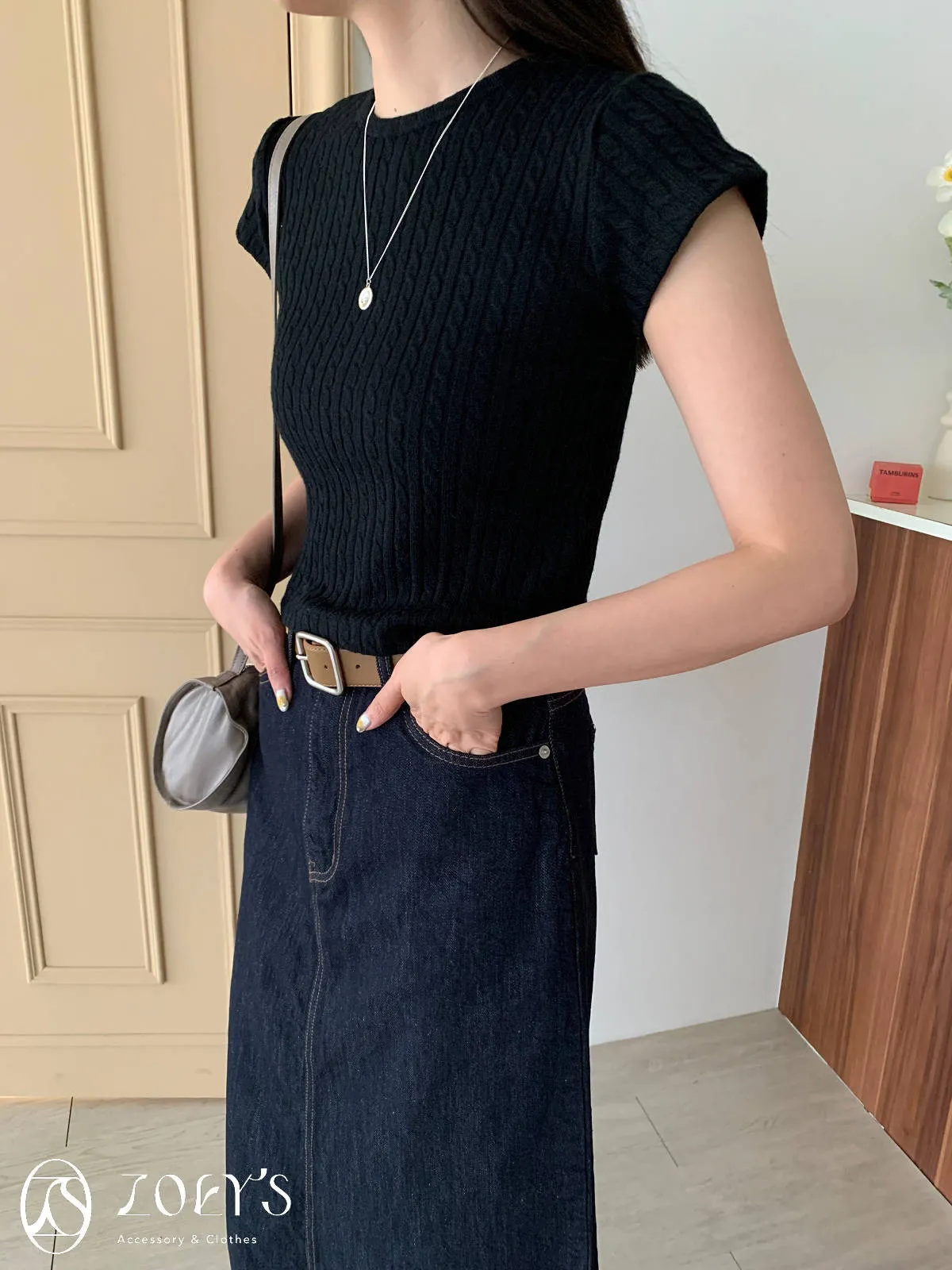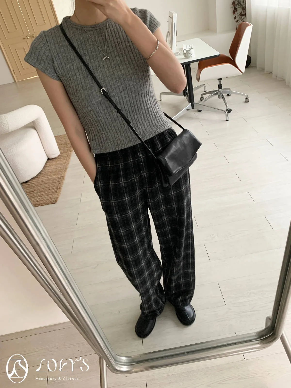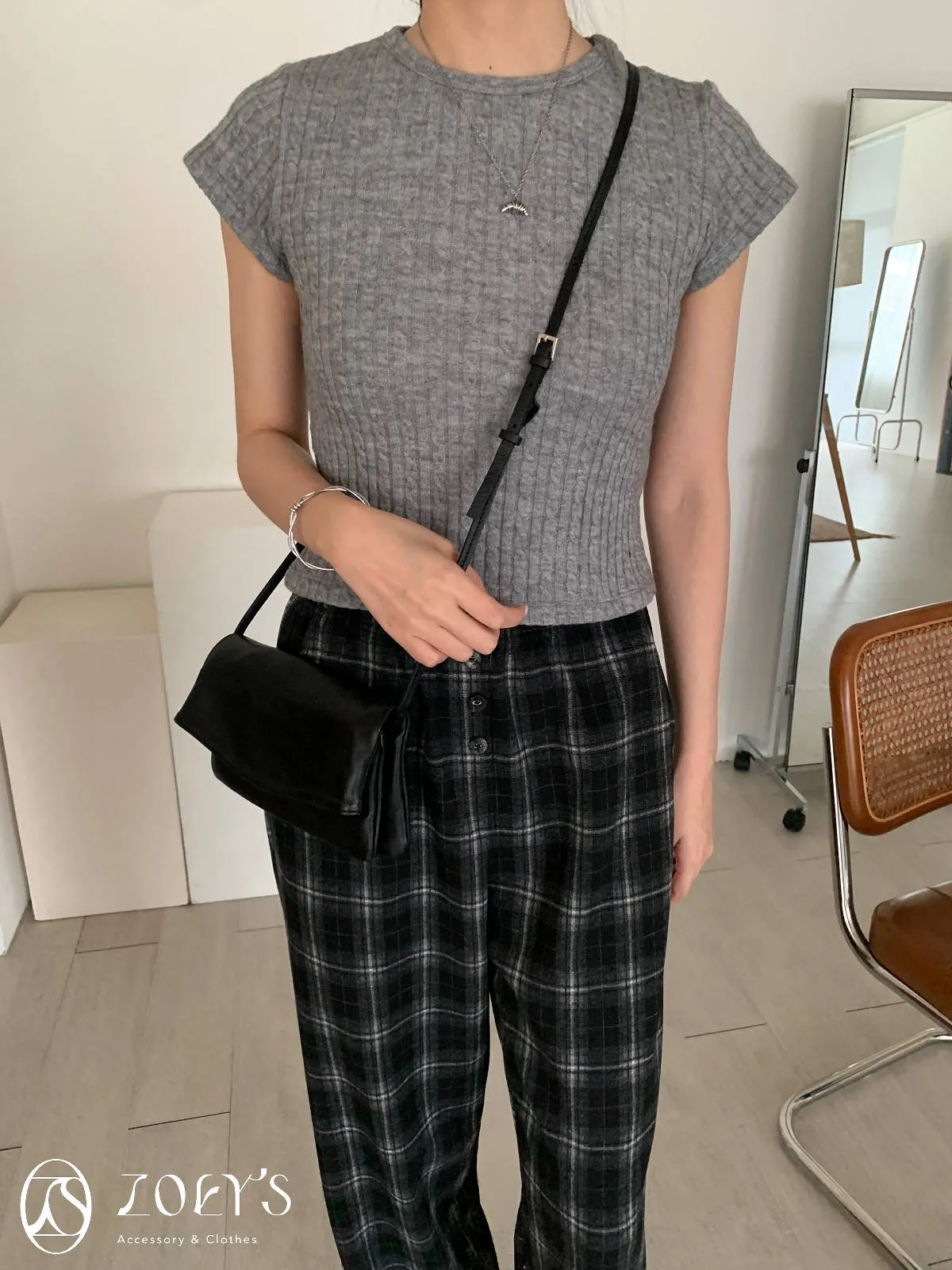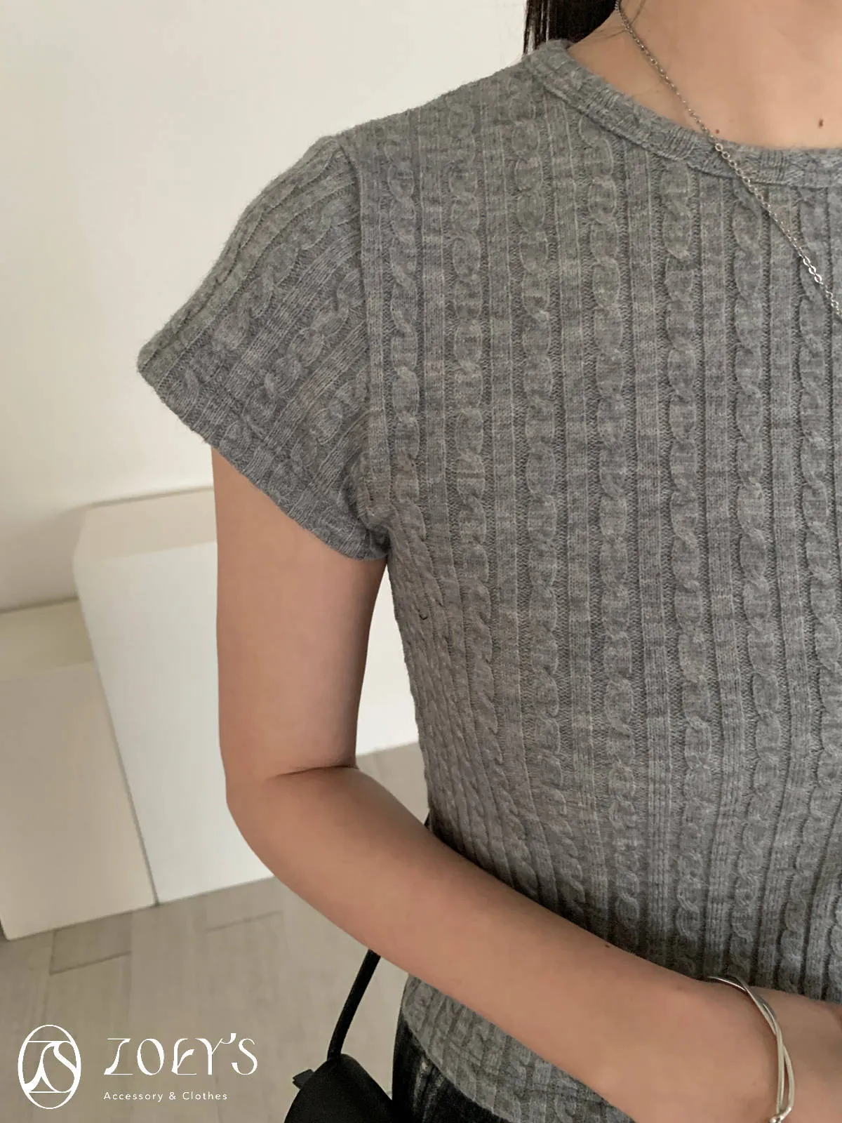 正韓 合肩短袖編織直紋羊毛衫 黑/米/灰