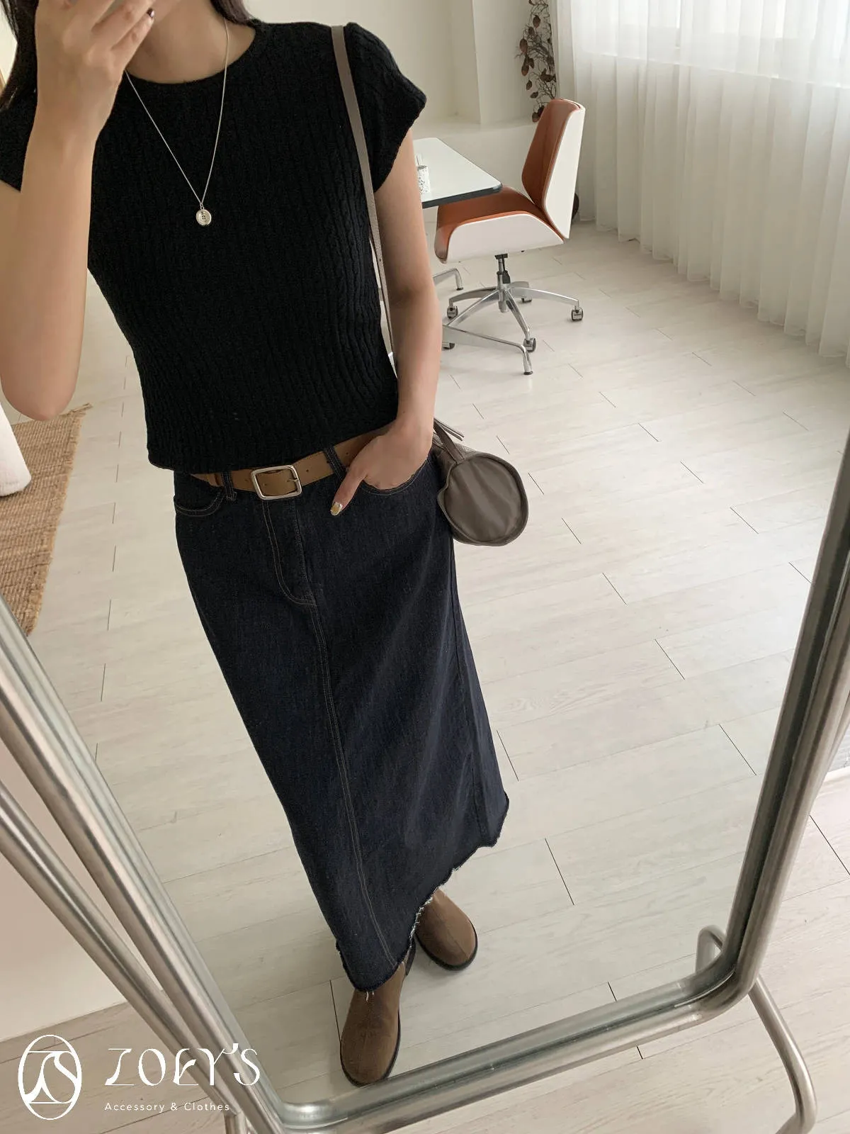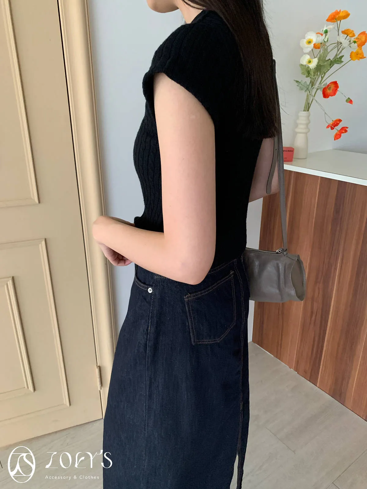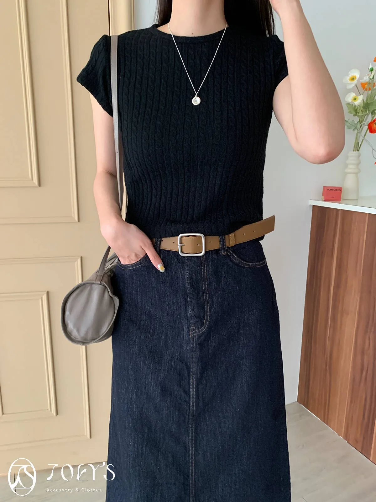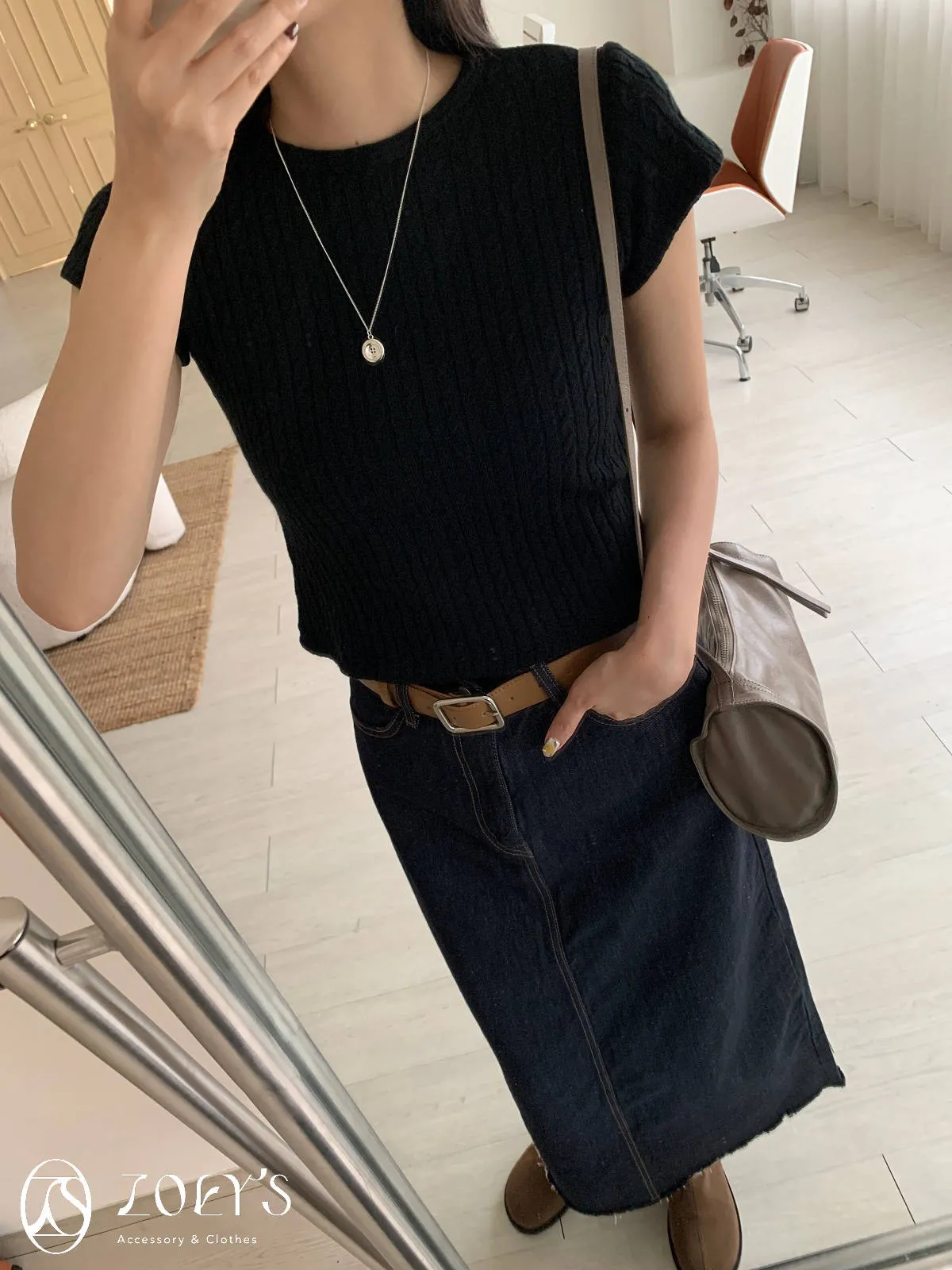 正韓 合肩短袖編織直紋羊毛衫 黑/米/灰