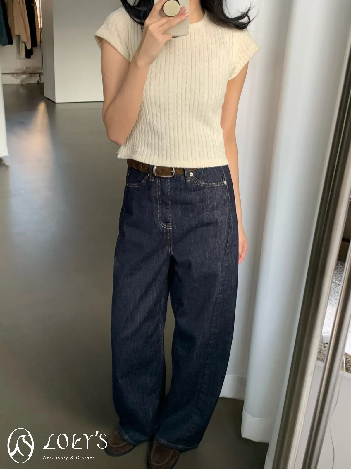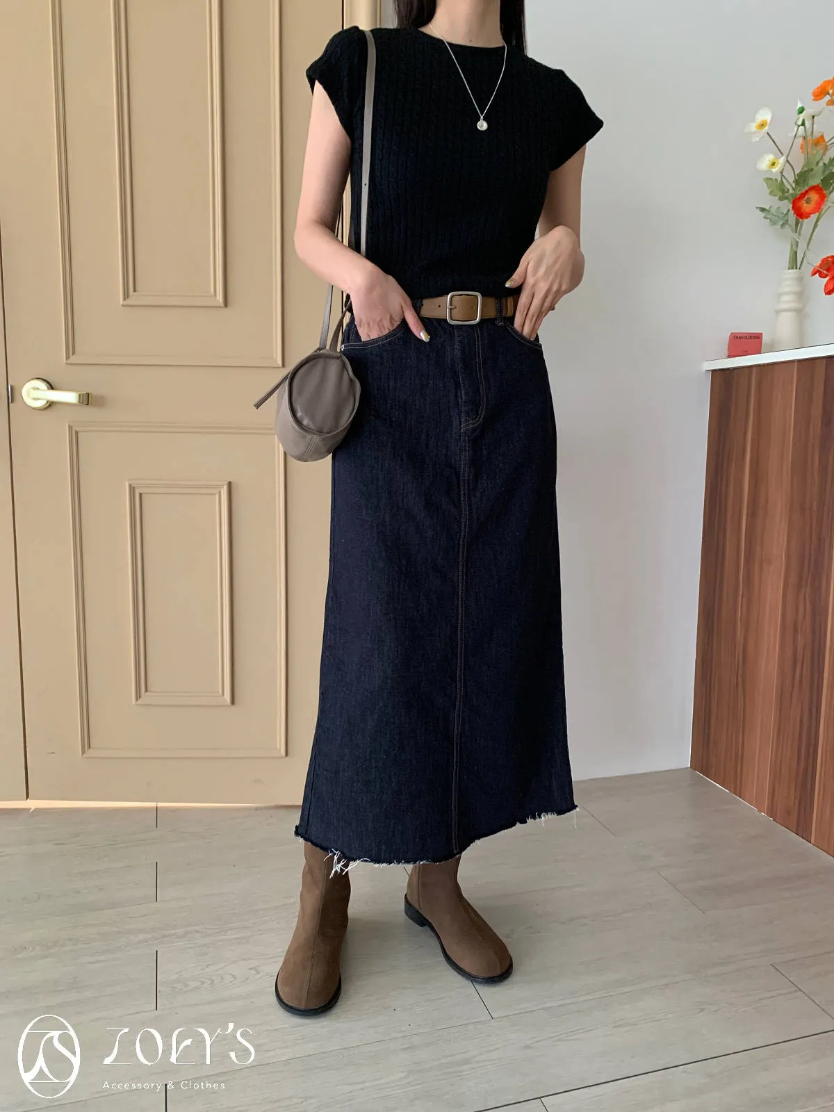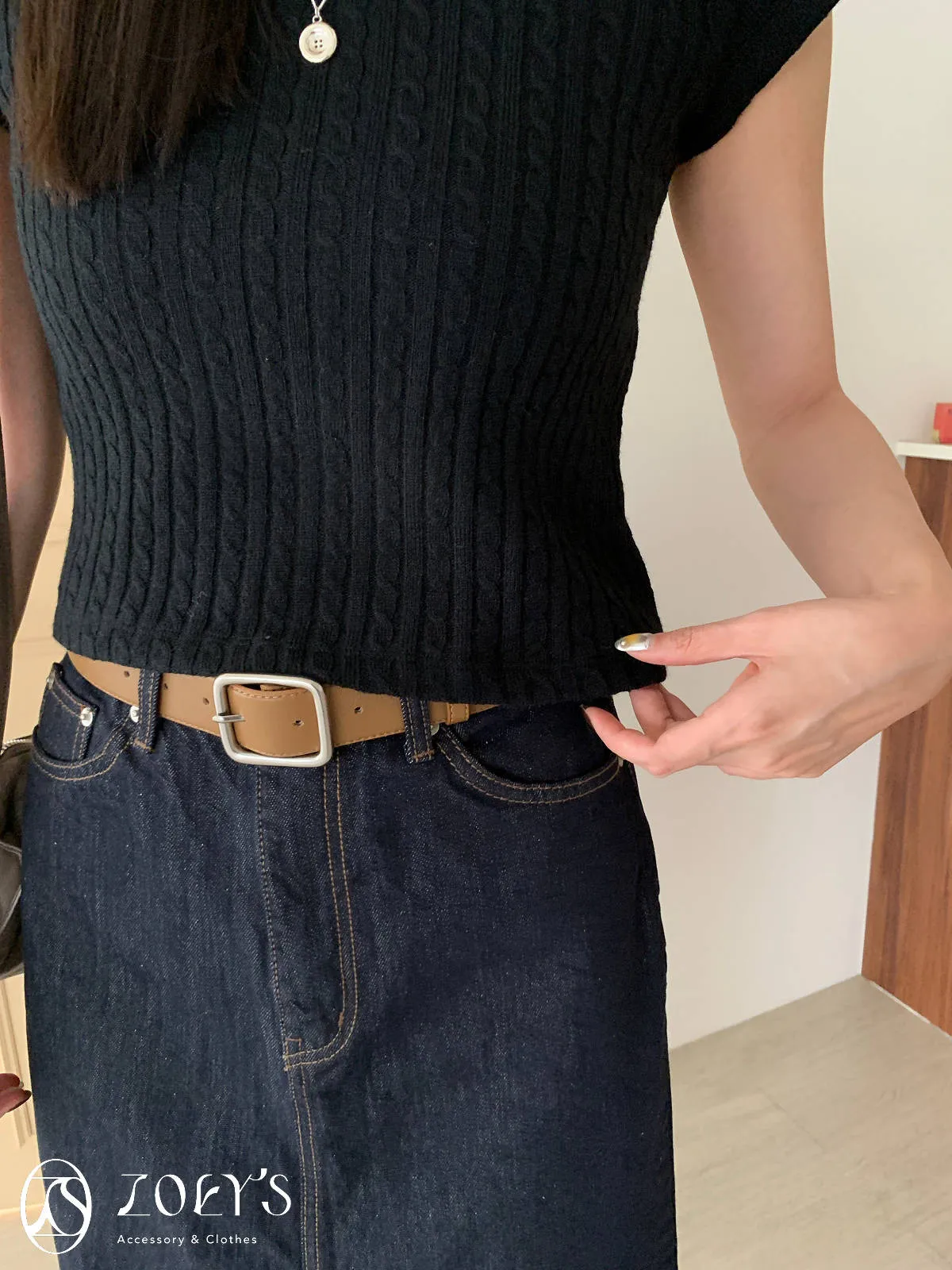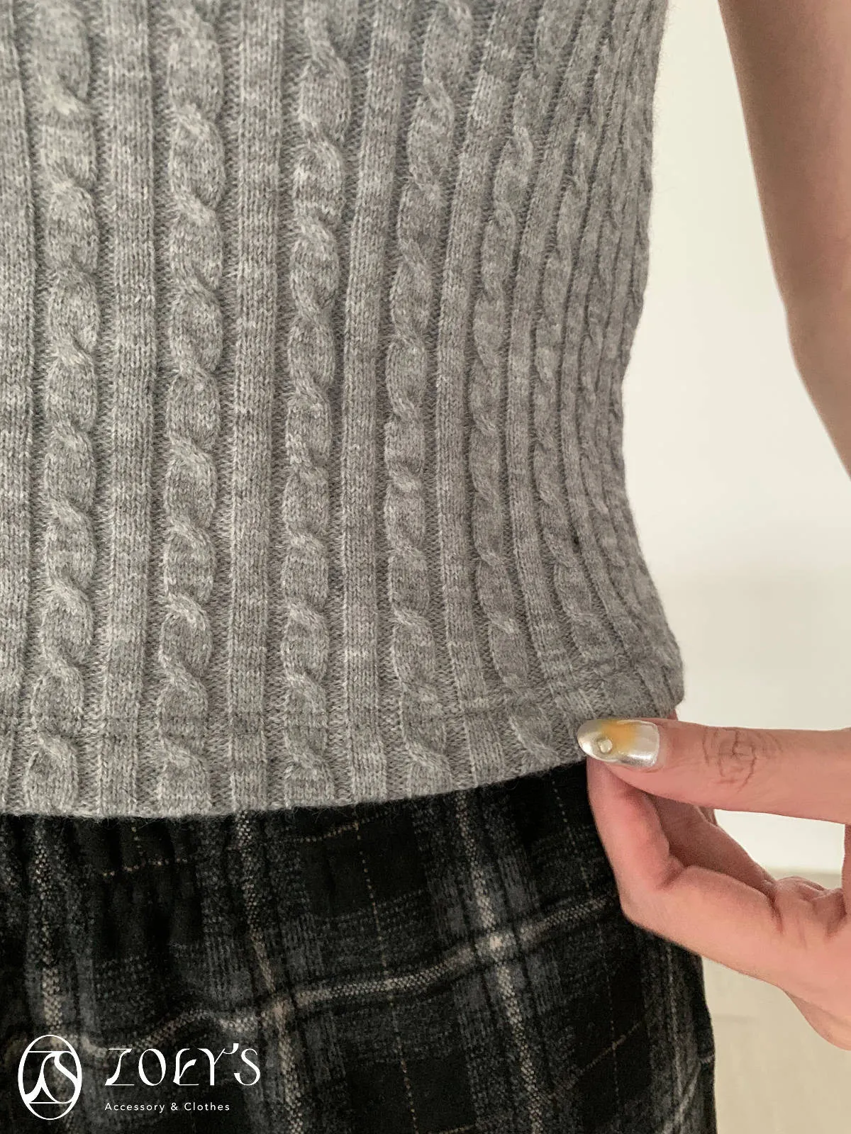正韓 合肩短袖編織直紋羊毛衫 黑/米/灰
