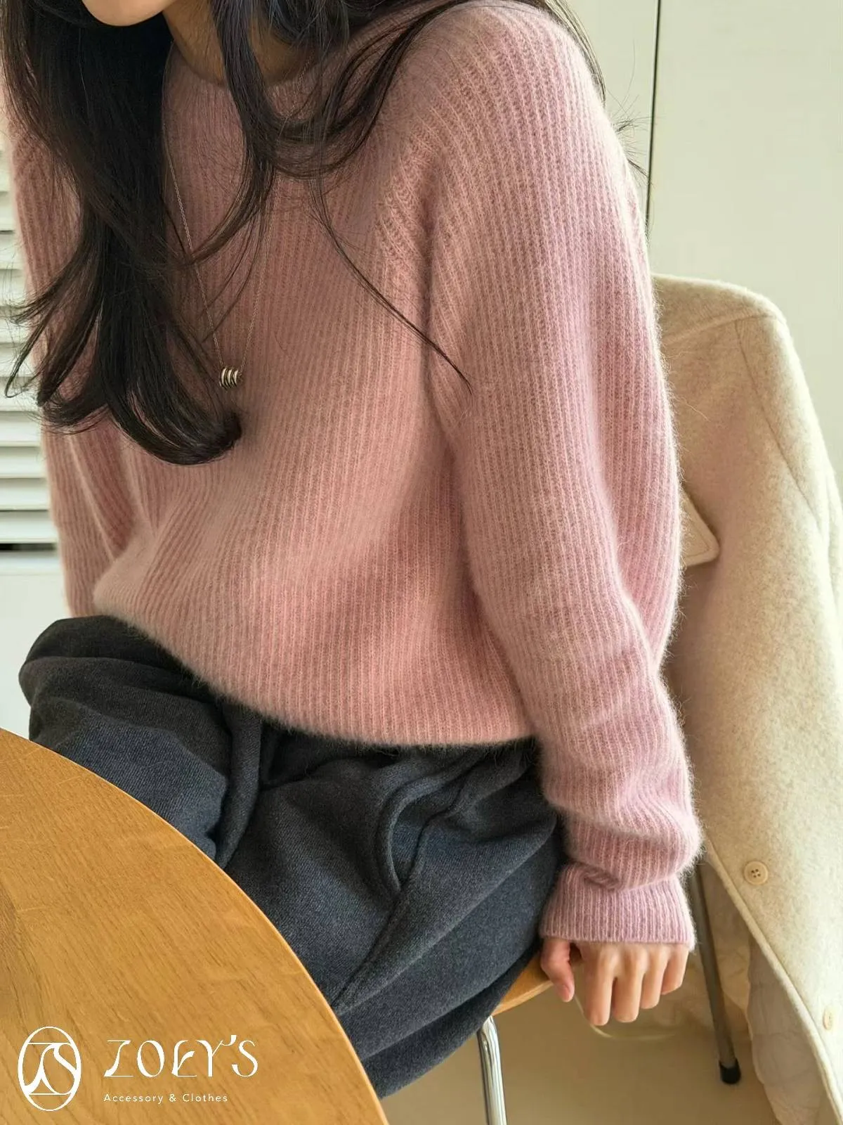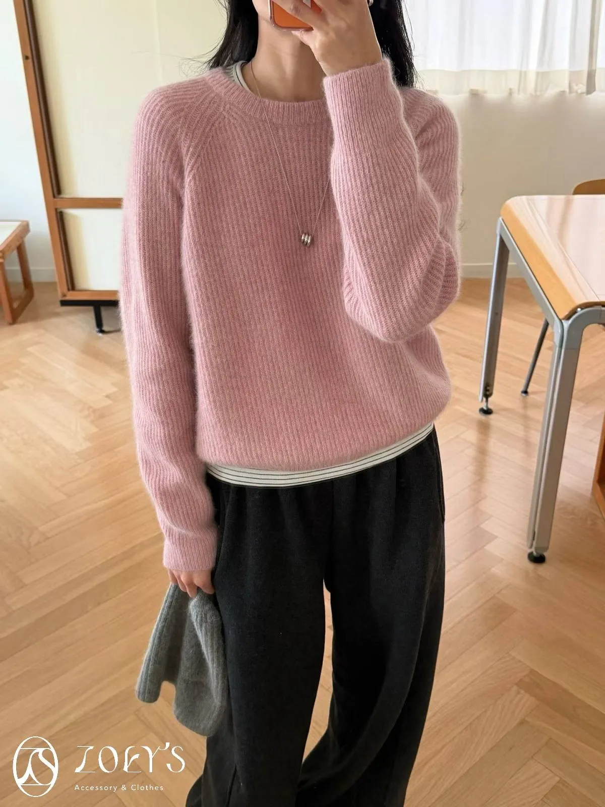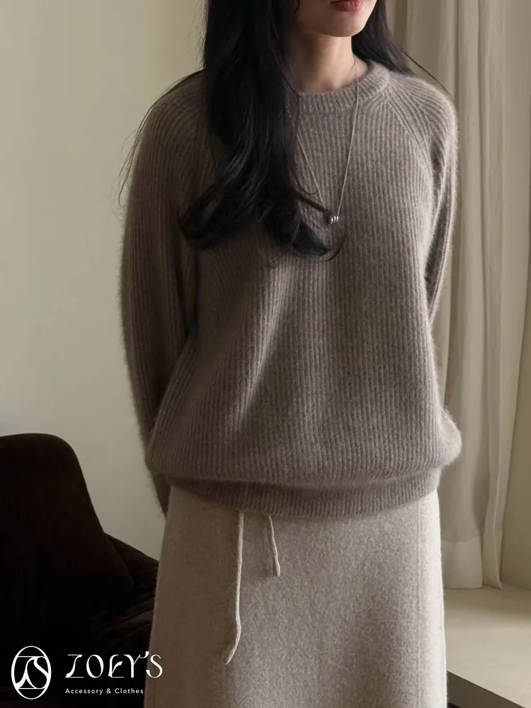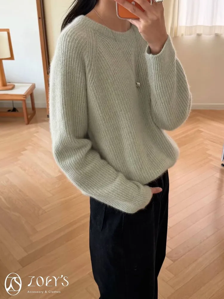 正韓 baby alpaca直織圓領毛衣 粉/綠/摩卡