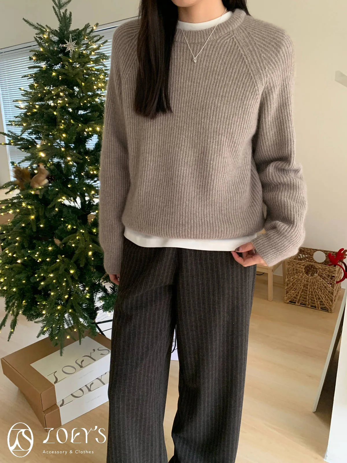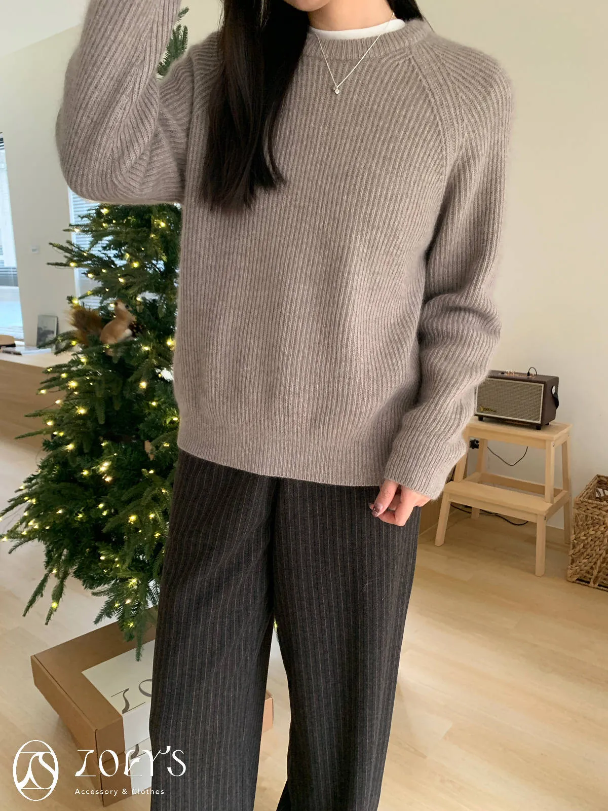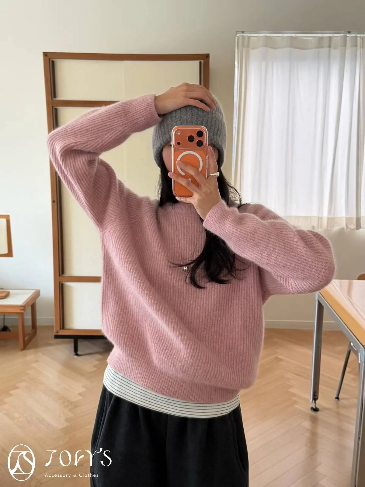 正韓 baby alpaca直織圓領毛衣 粉/綠/摩卡