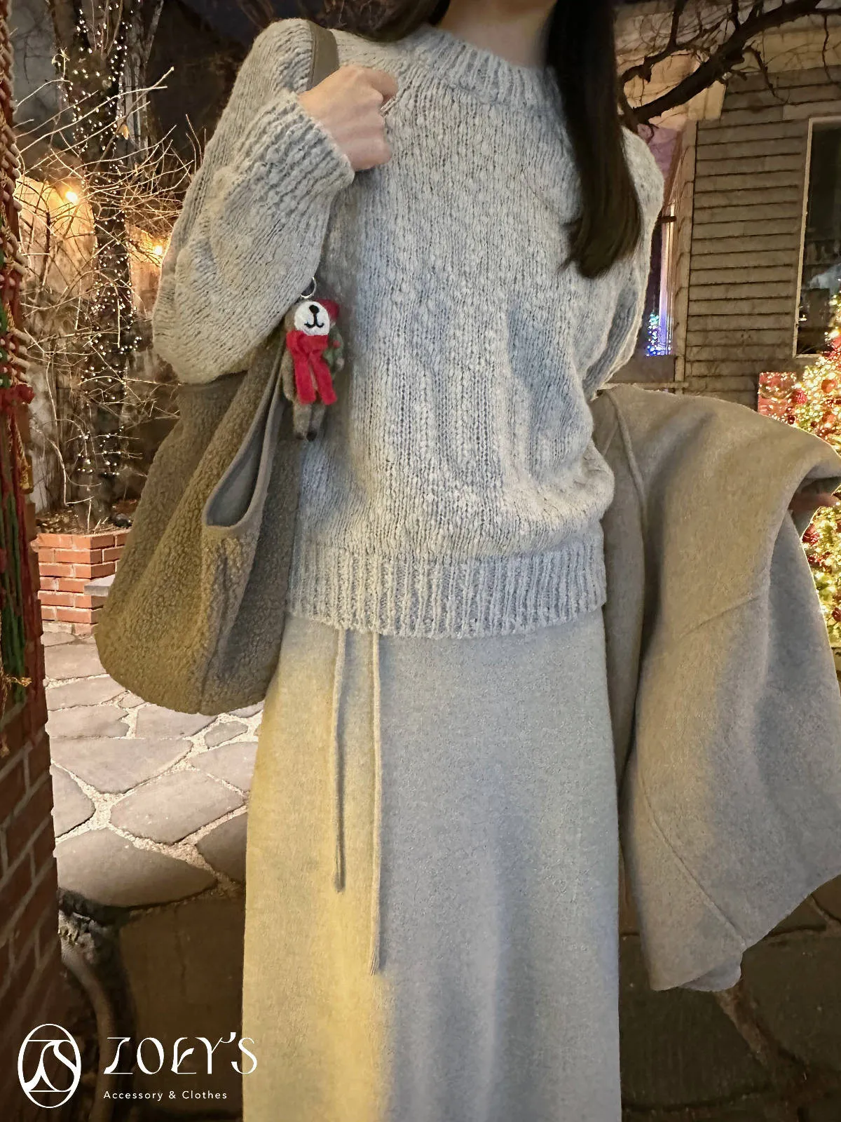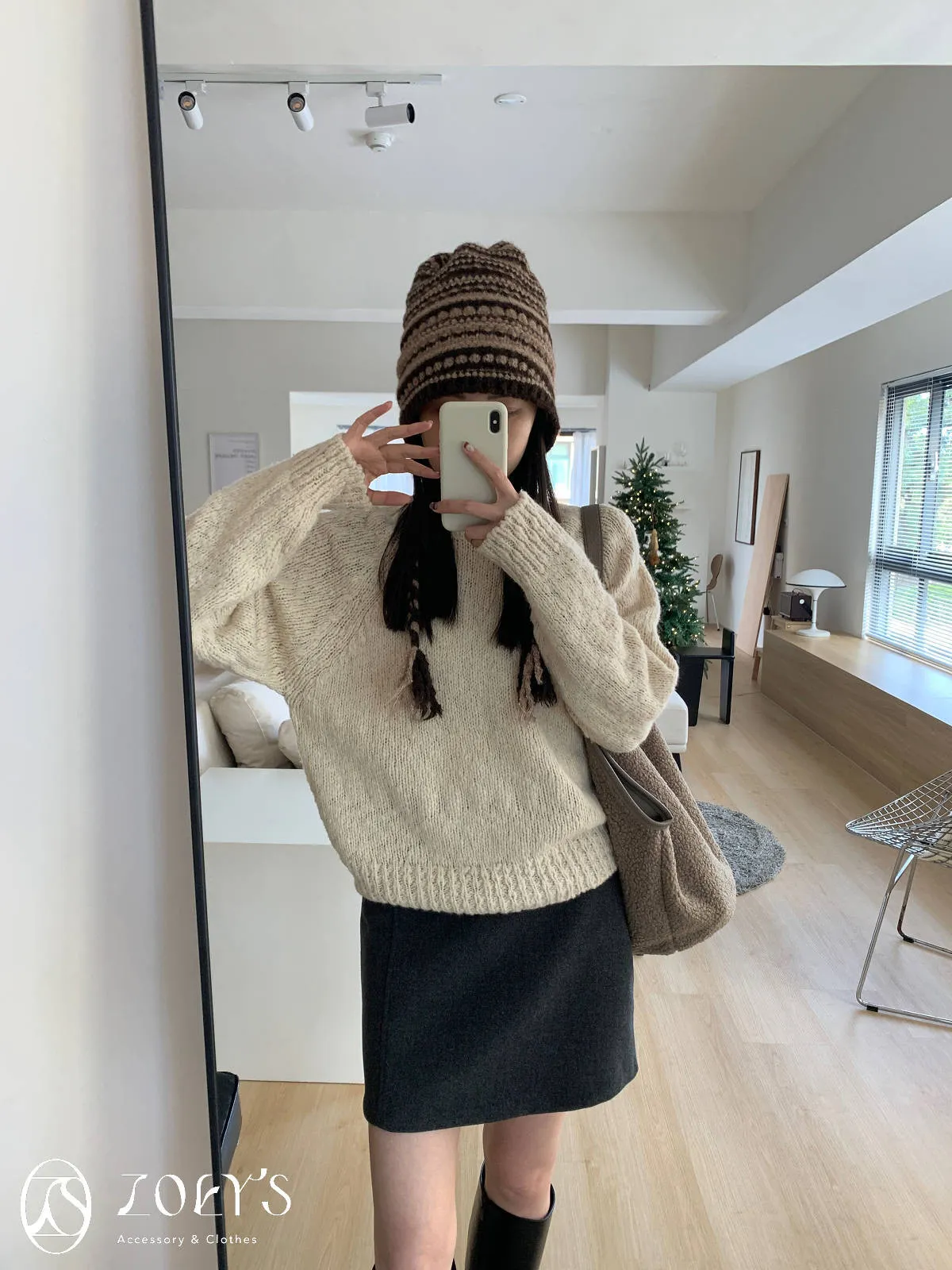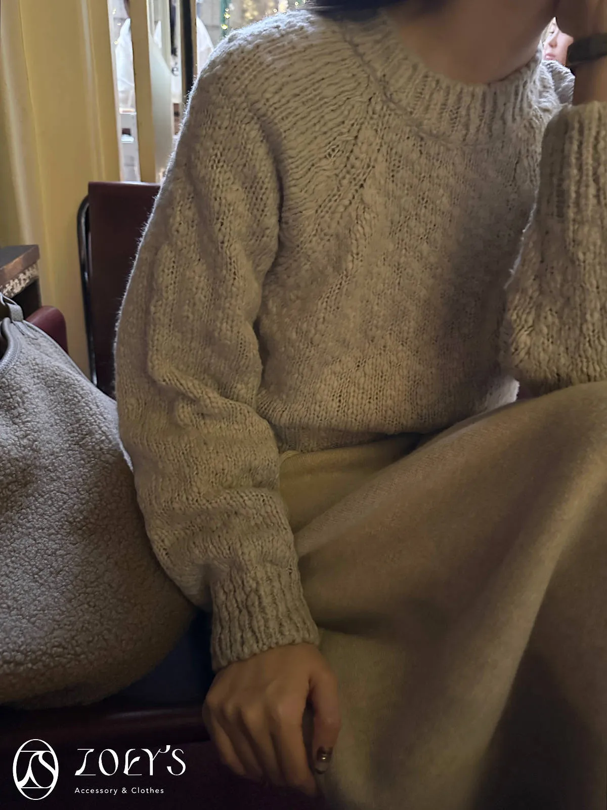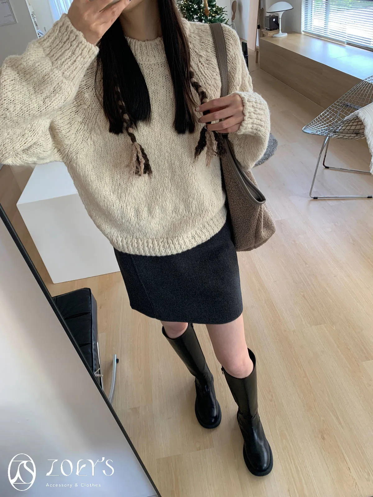 正韓 小銀飾泡泡感羊毛衫 咖/米/灰