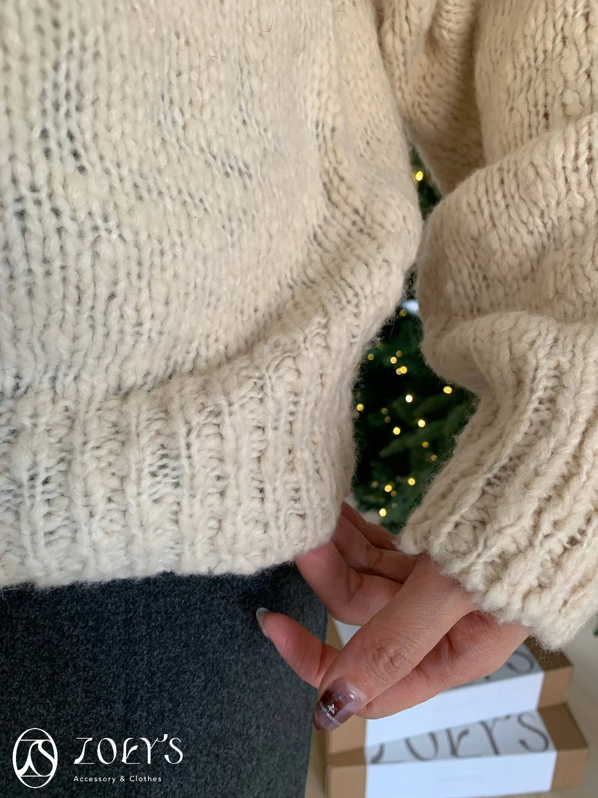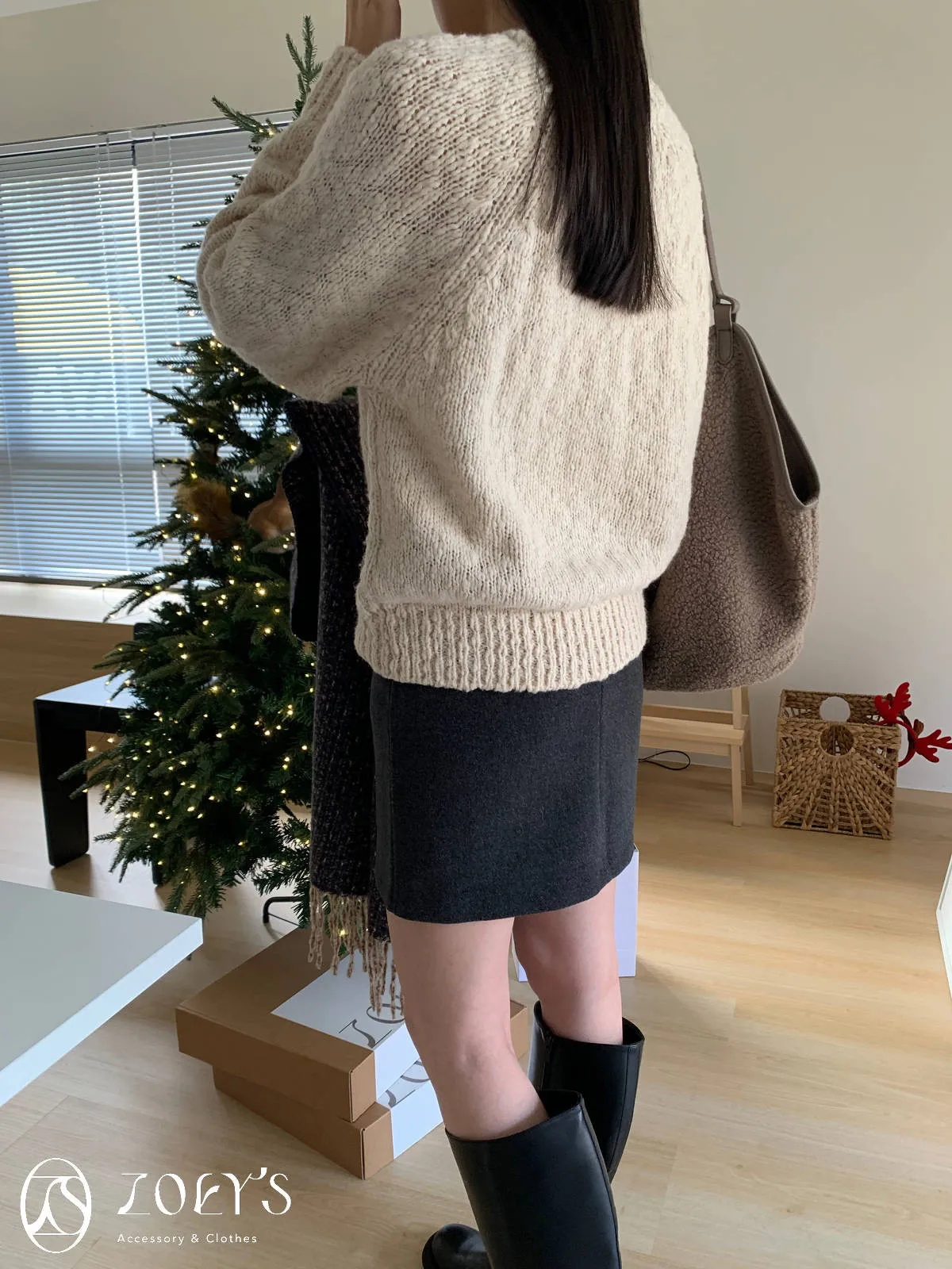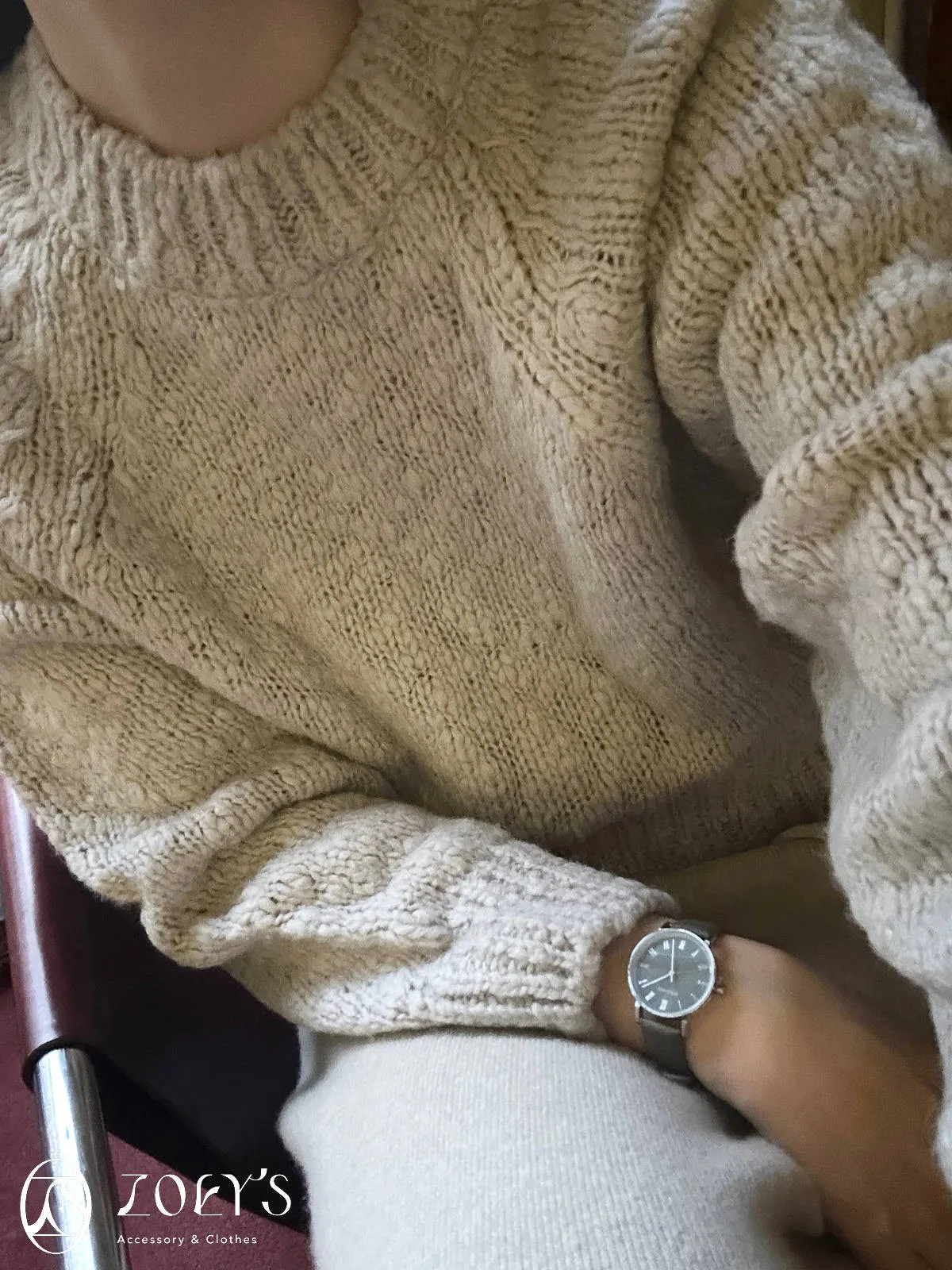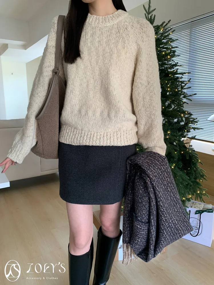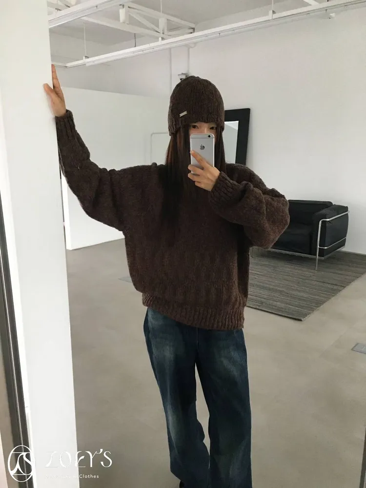 正韓 小銀飾泡泡感羊毛衫 咖/米/灰