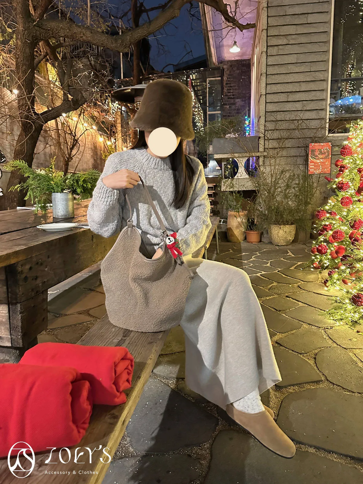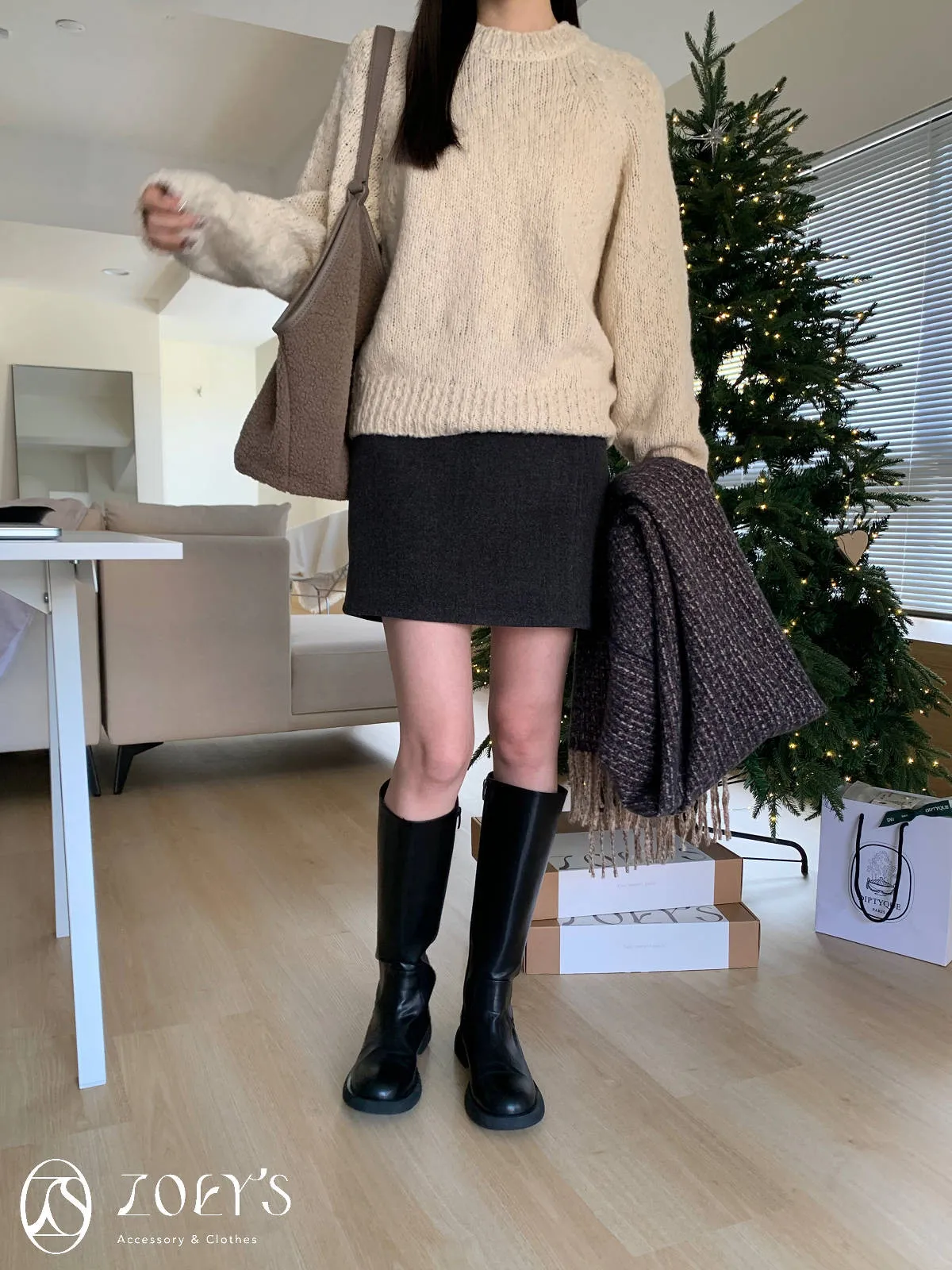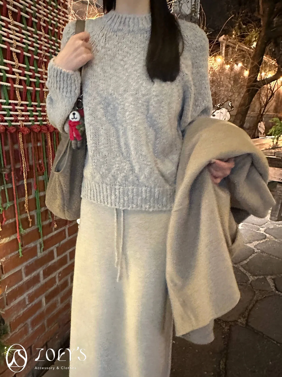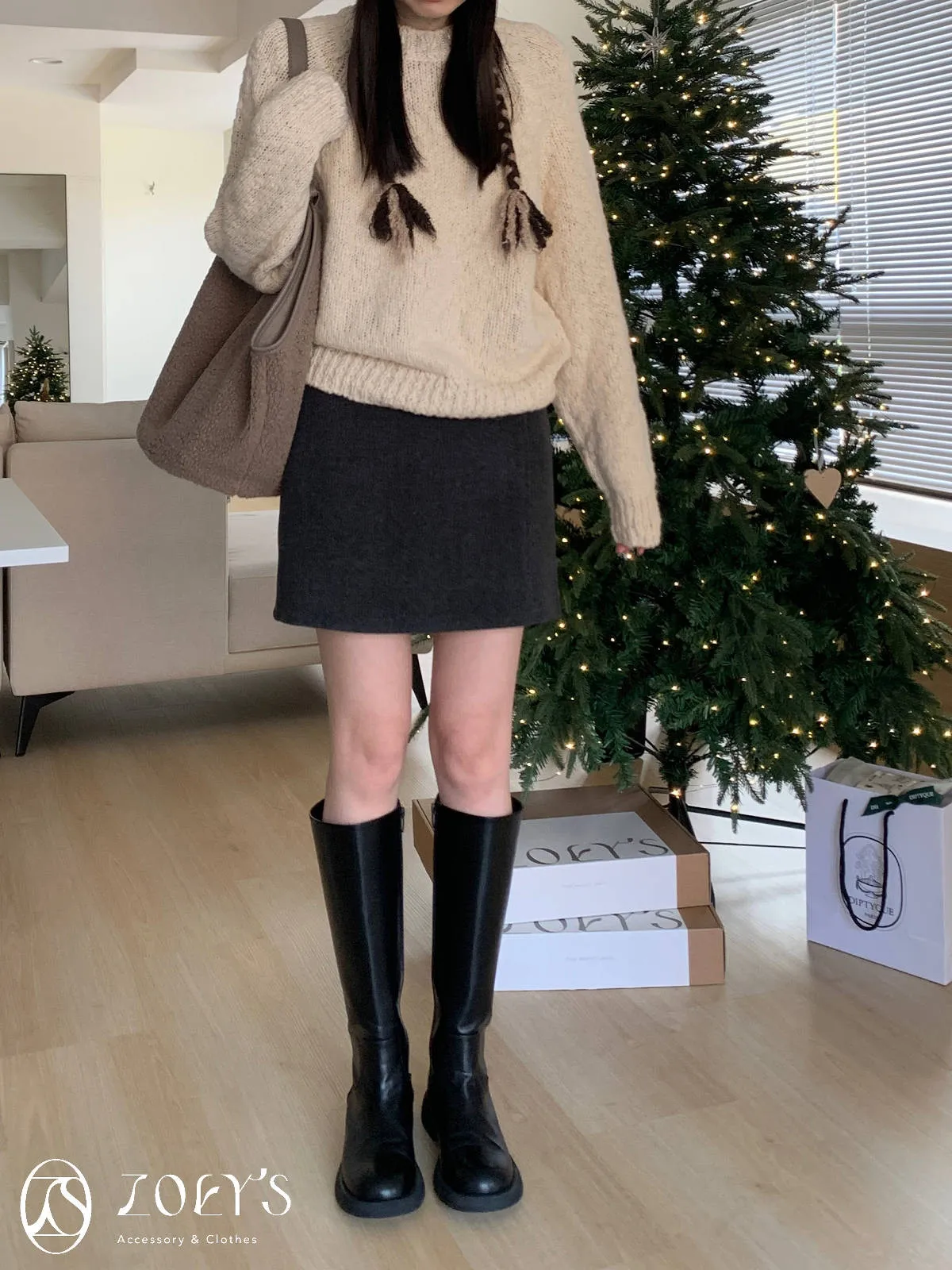 正韓 小銀飾泡泡感羊毛衫 咖/米/灰