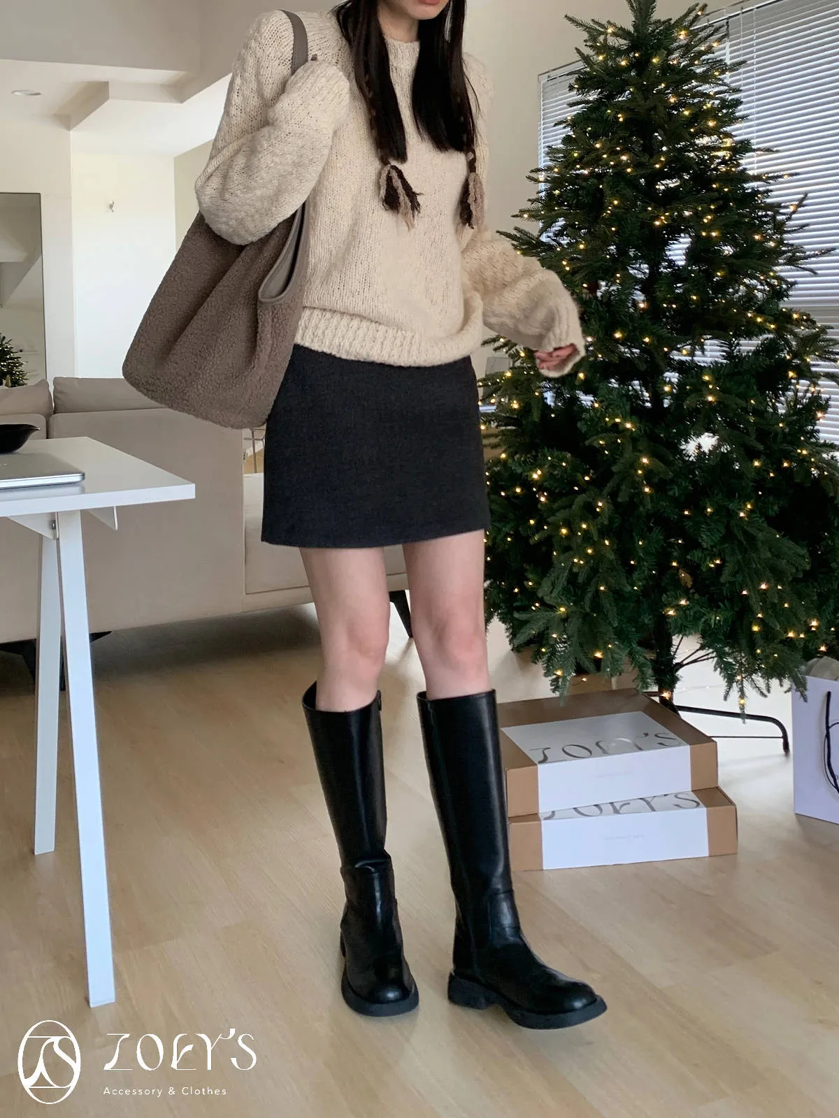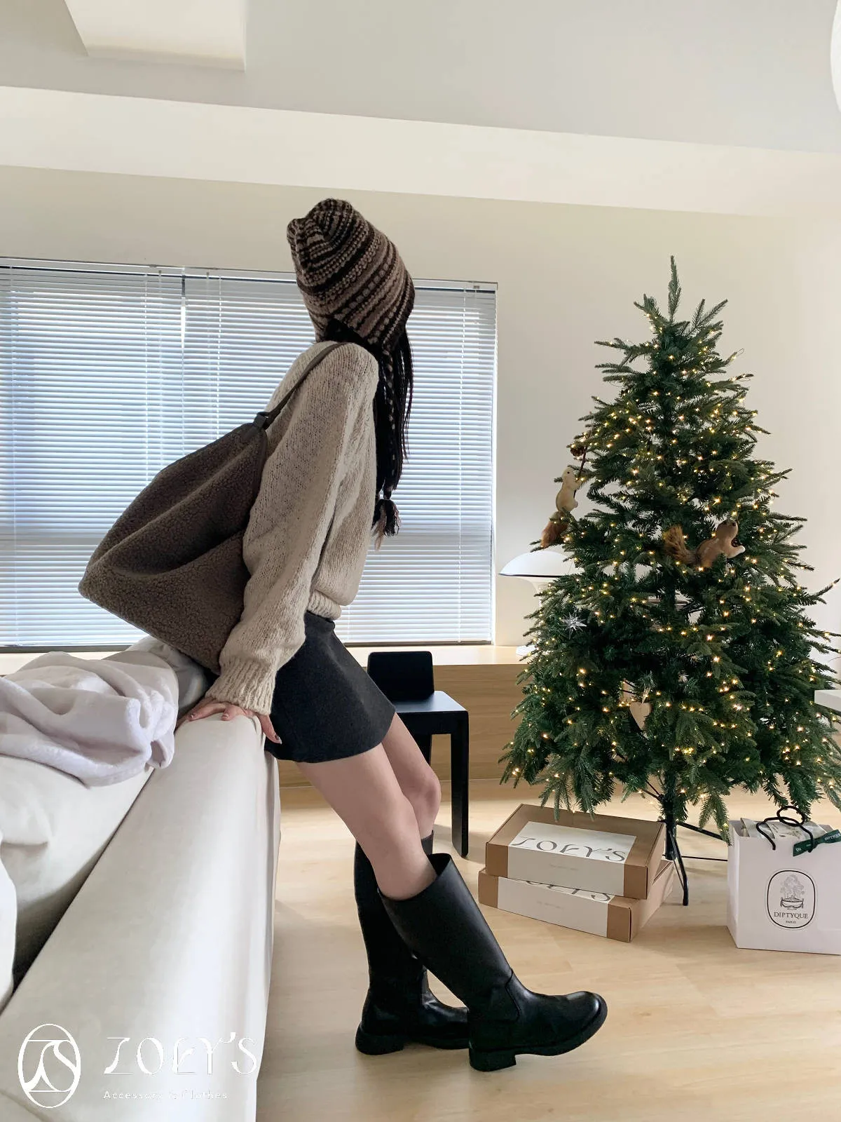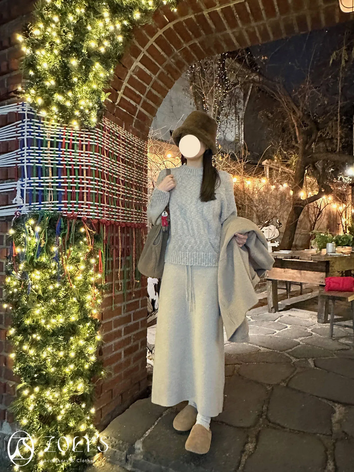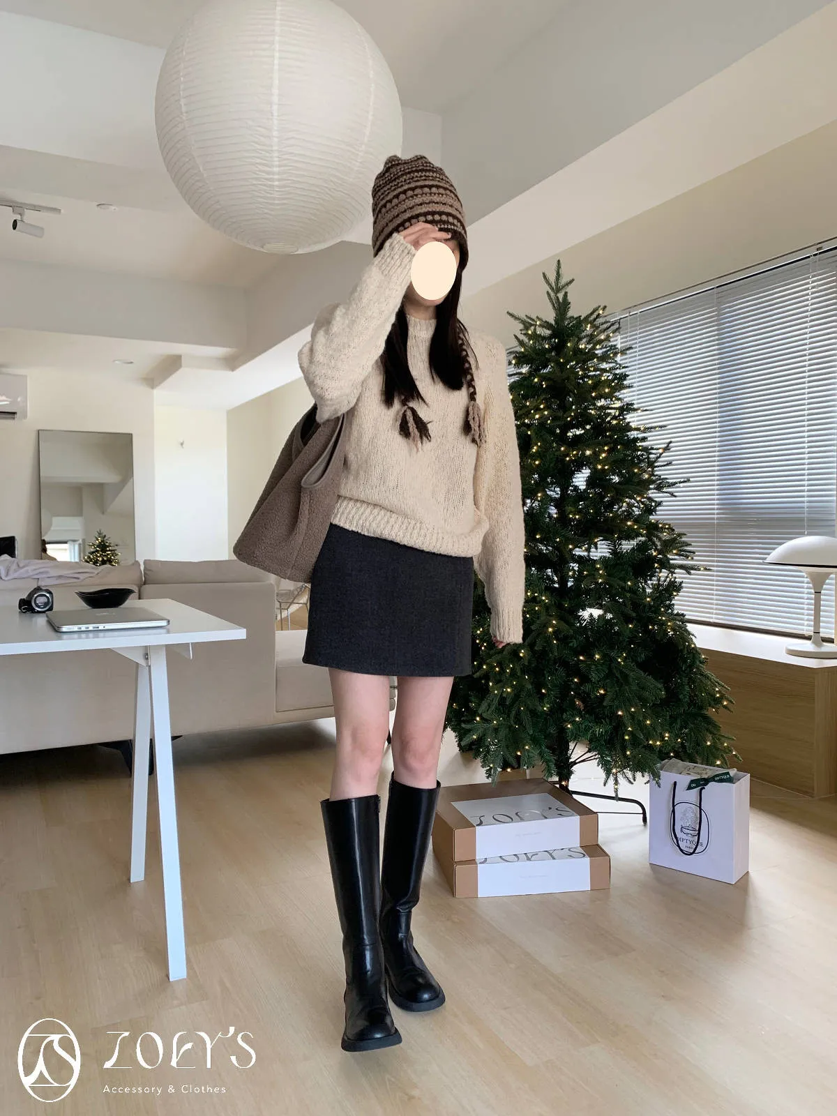 正韓 小銀飾泡泡感羊毛衫 咖/米/灰