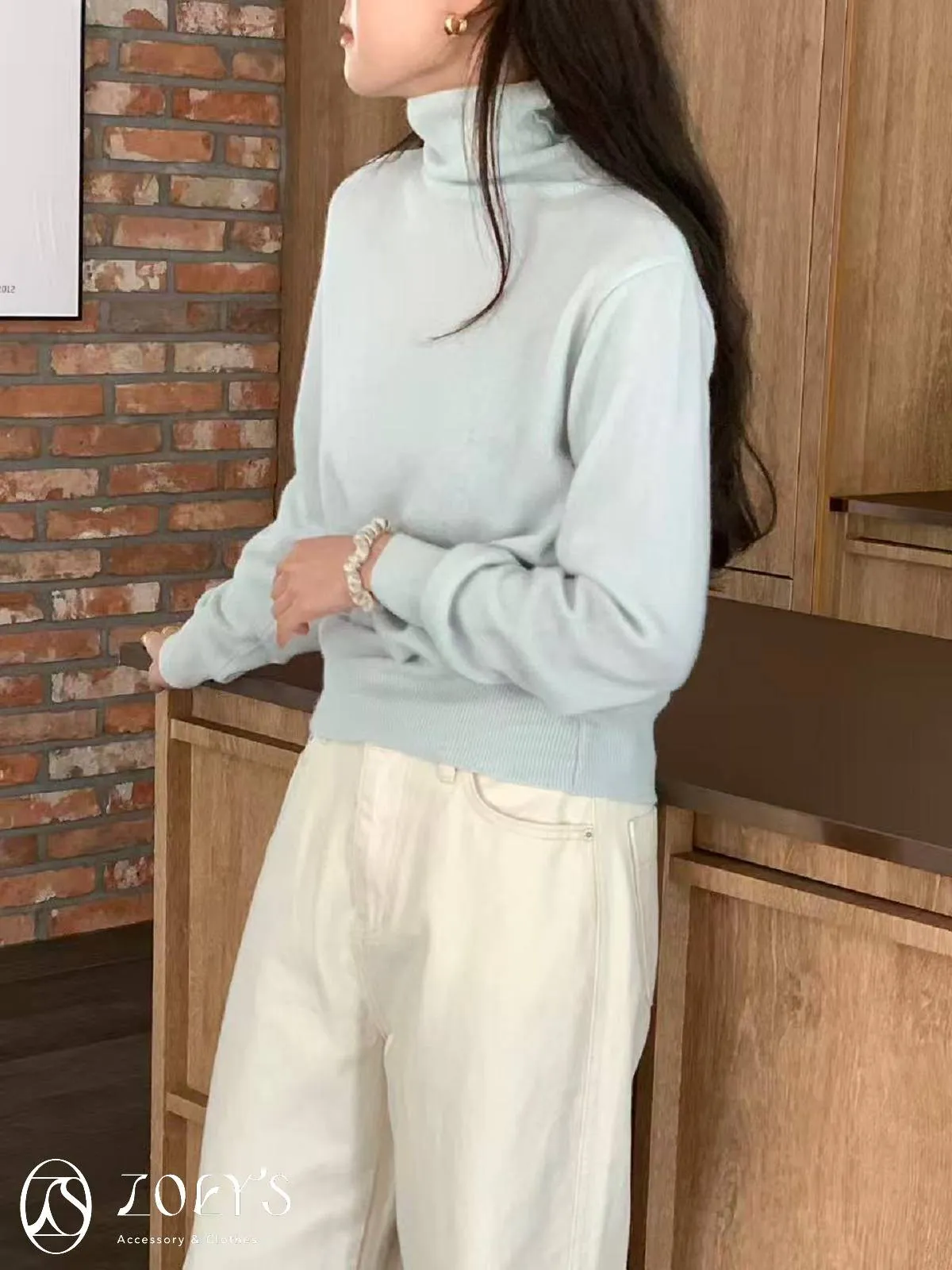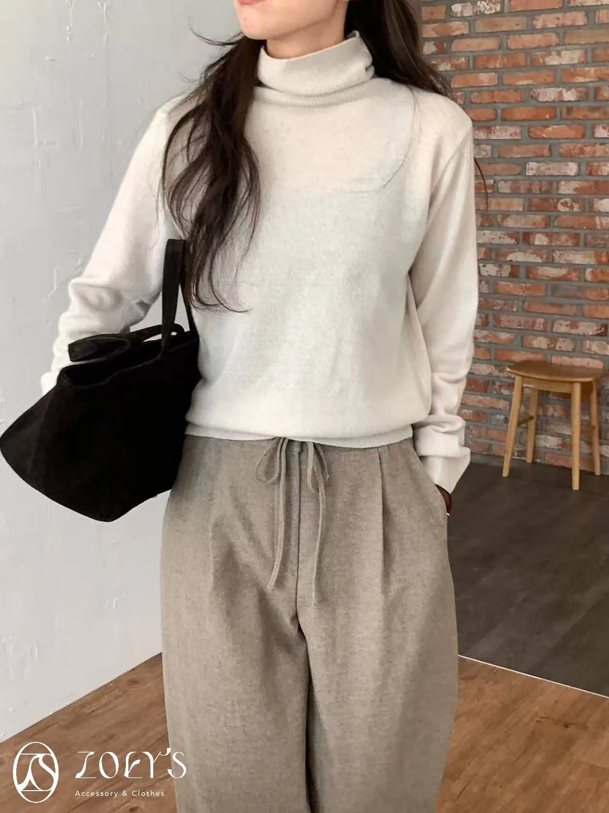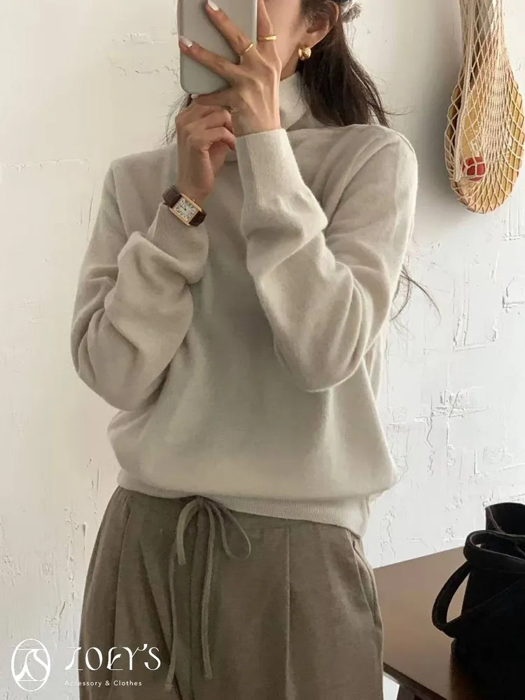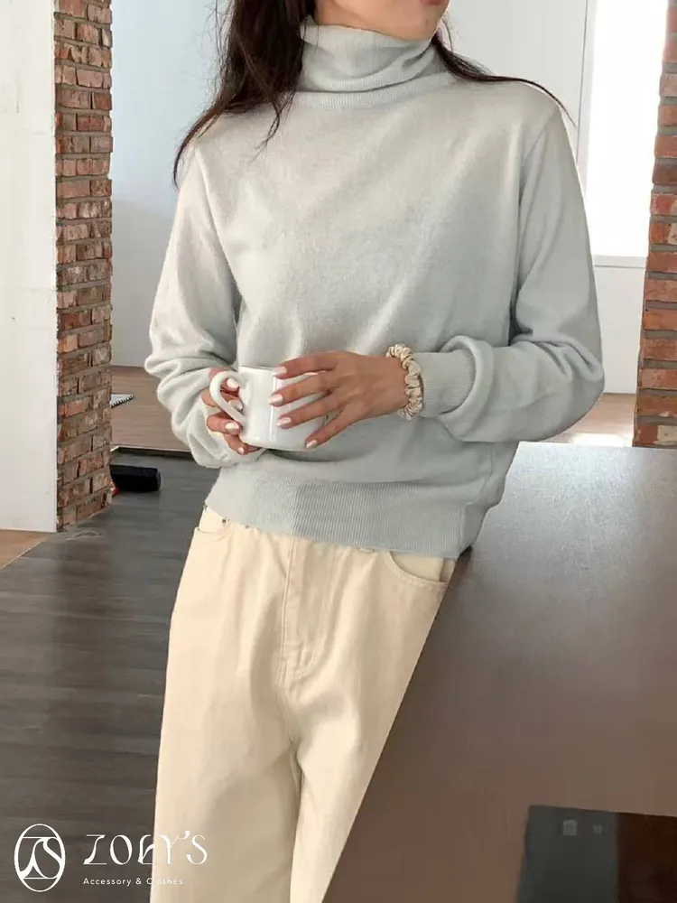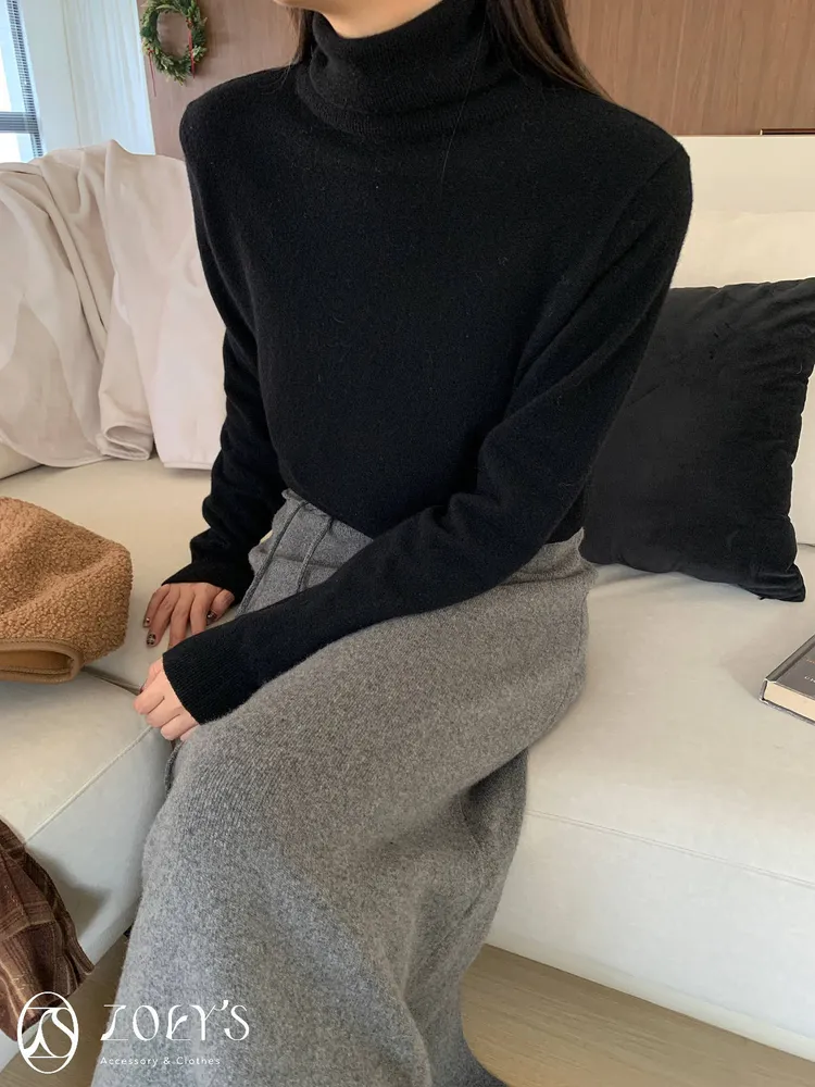 正韓 極簡高領100%美麗諾羊毛衫 黑/灰/燕麥/淺綠