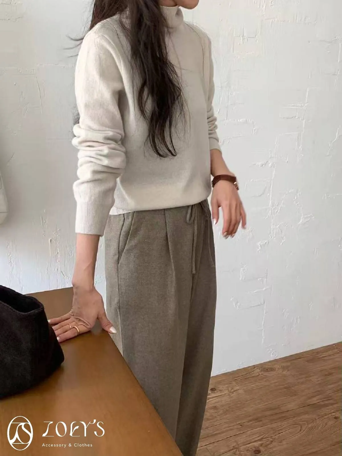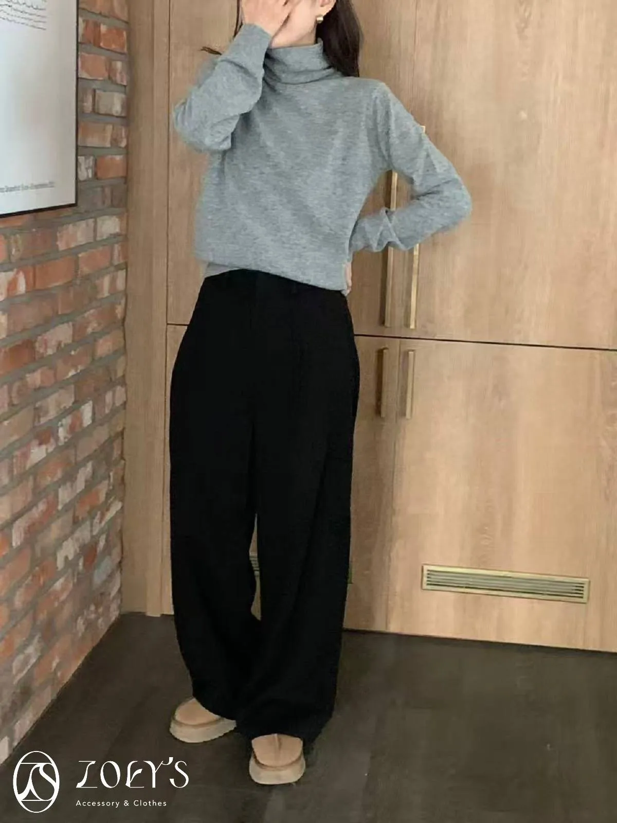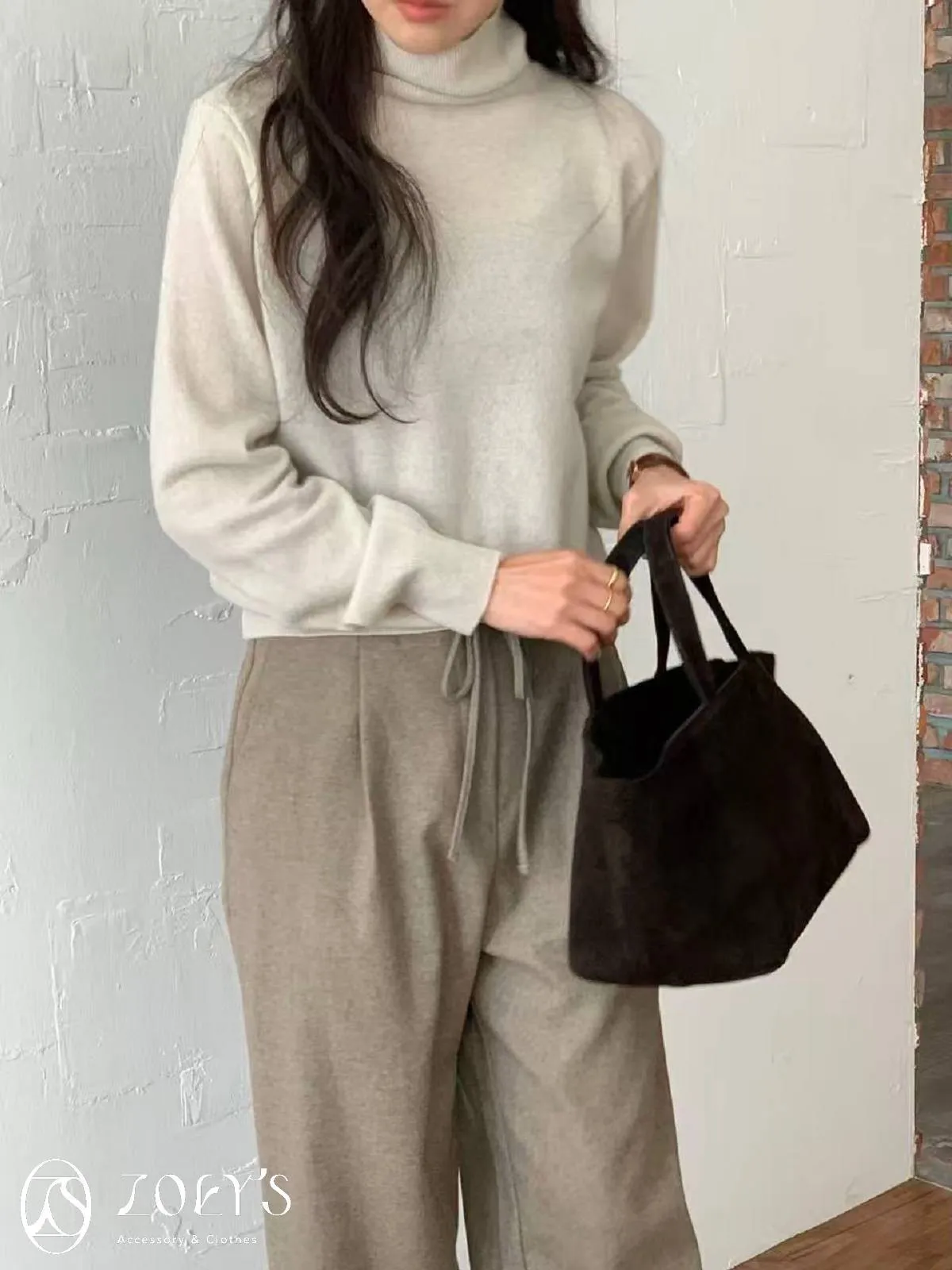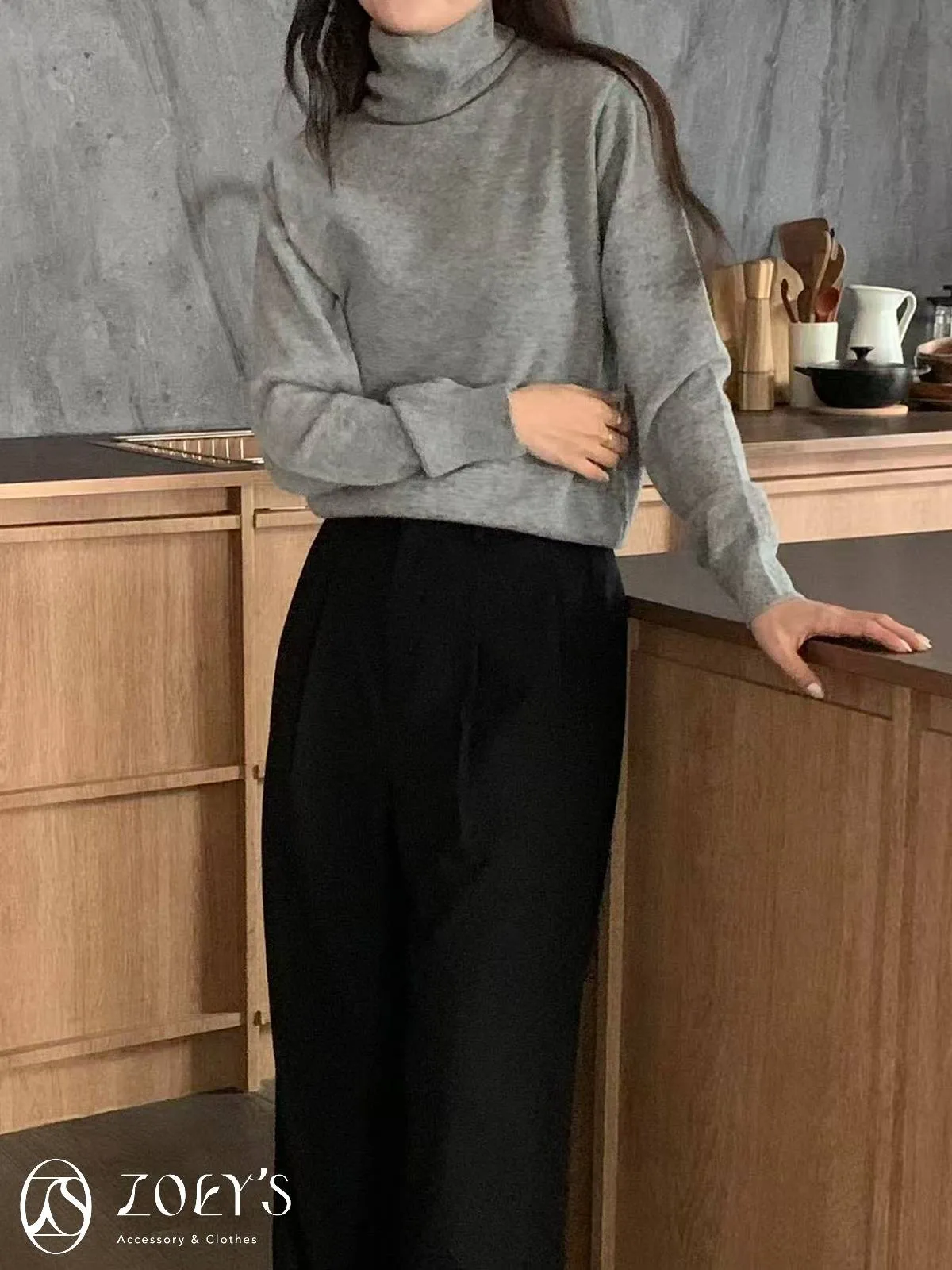 正韓 極簡高領100%美麗諾羊毛衫 黑/灰/燕麥/淺綠