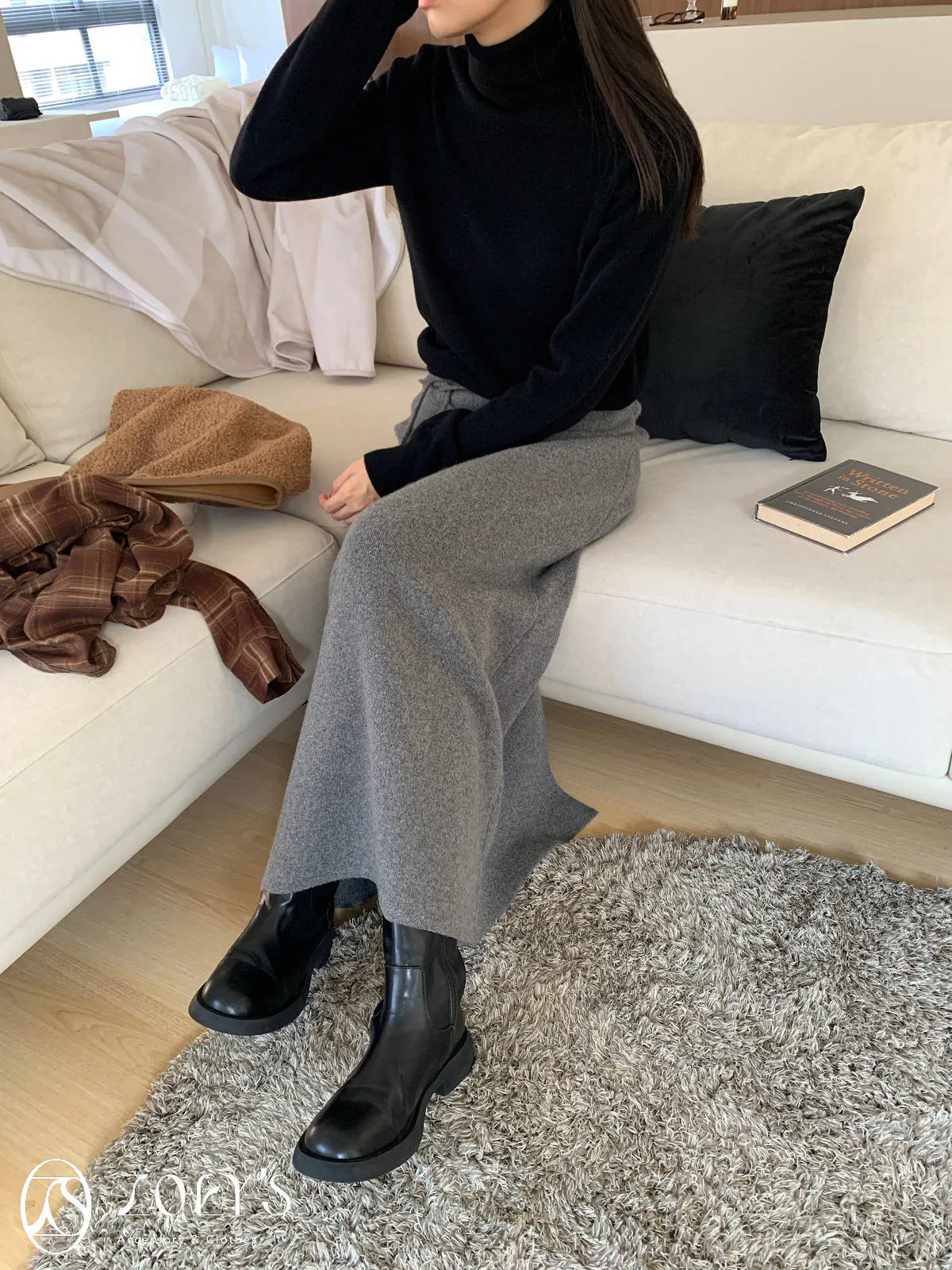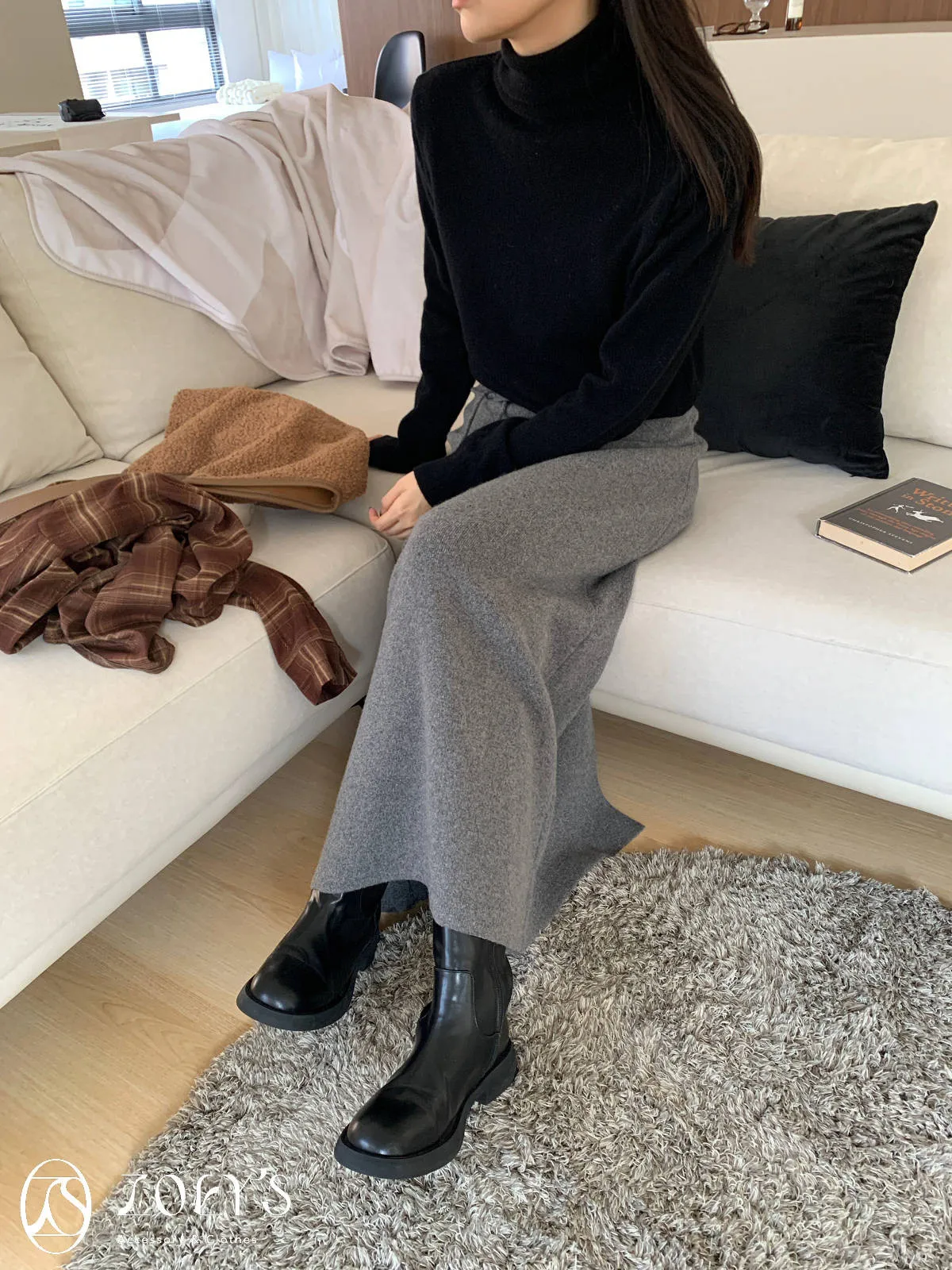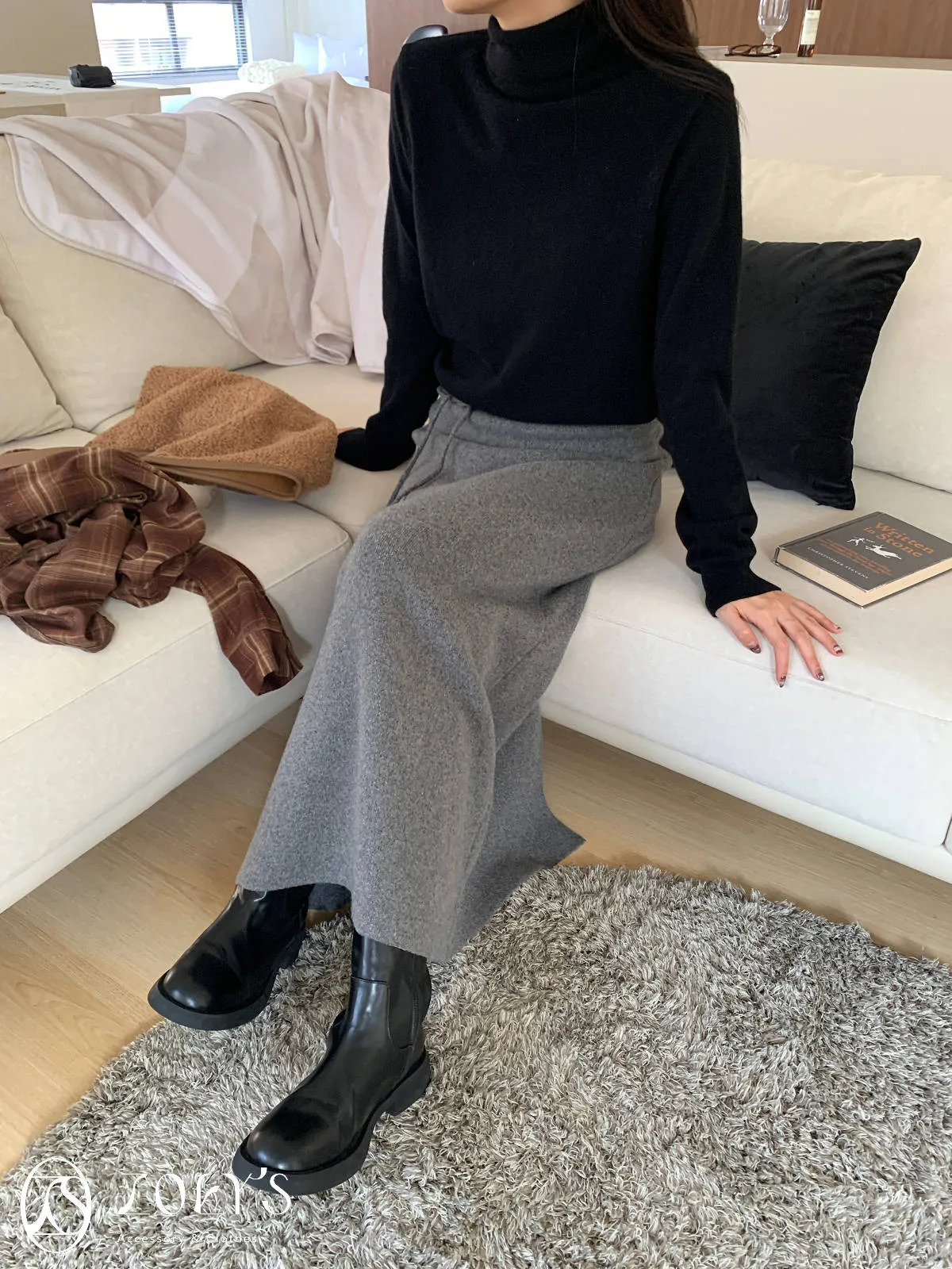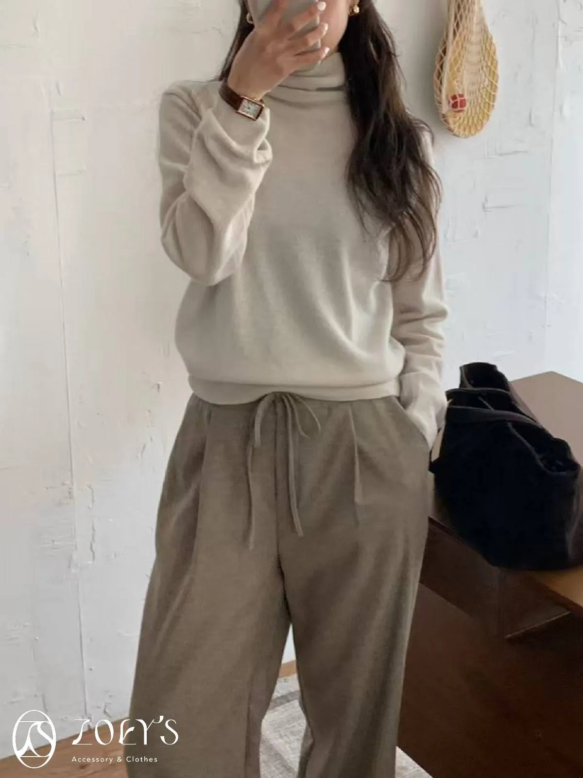 正韓 極簡高領100%美麗諾羊毛衫 黑/灰/燕麥/淺綠