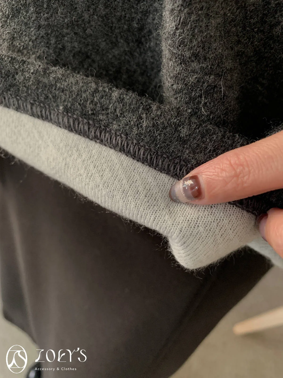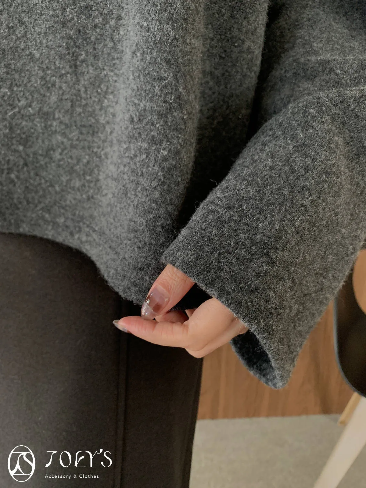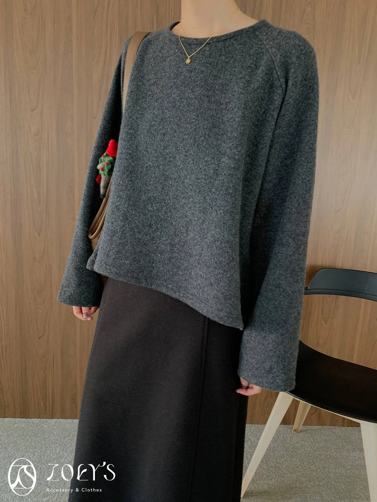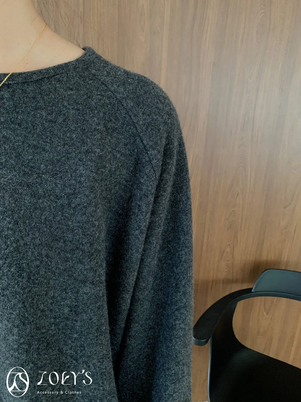 正韓 前短後長簡約圓領羊毛衫 深灰/淺灰/米白