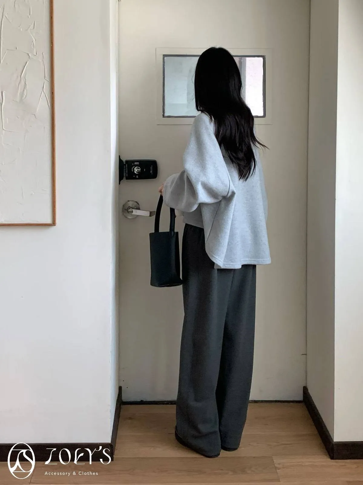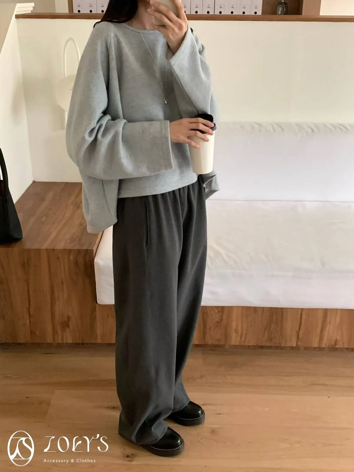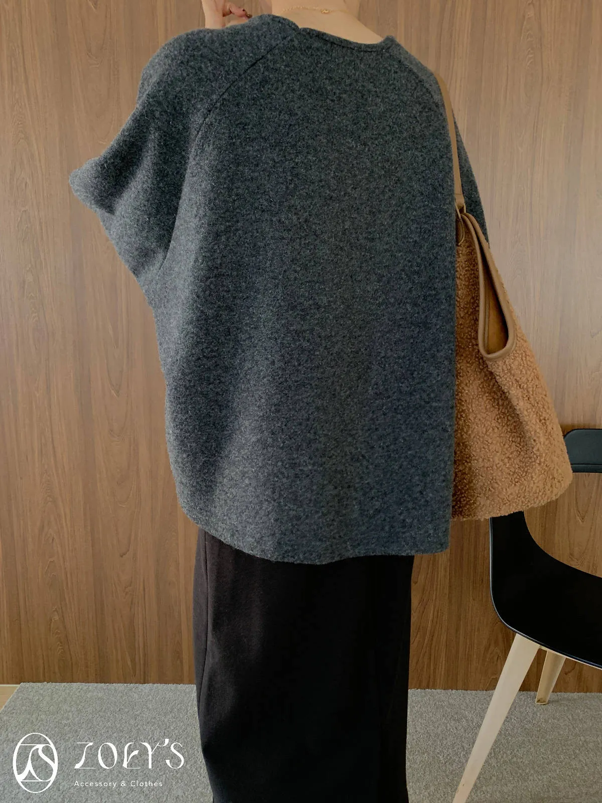 正韓 前短後長簡約圓領羊毛衫 深灰/淺灰/米白