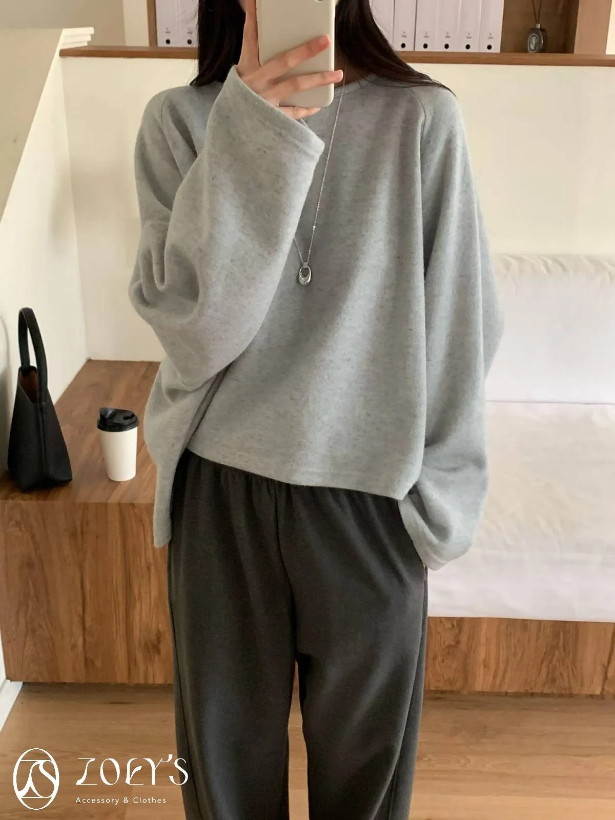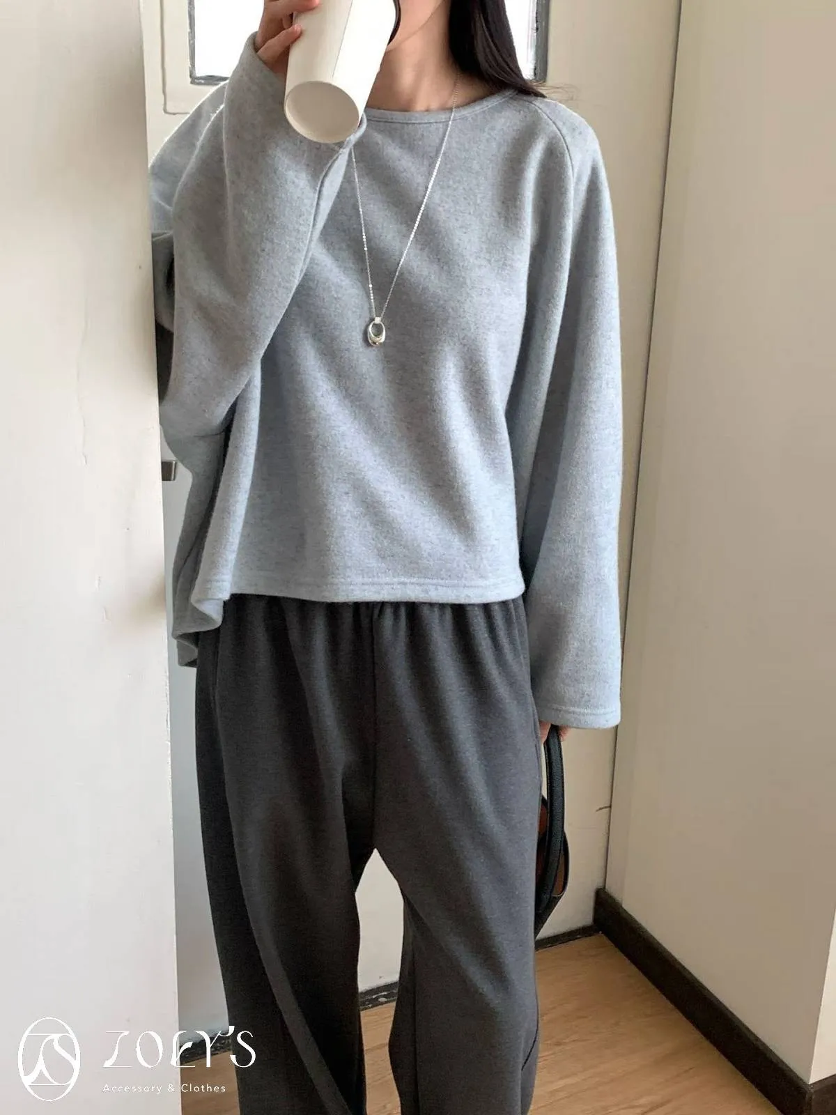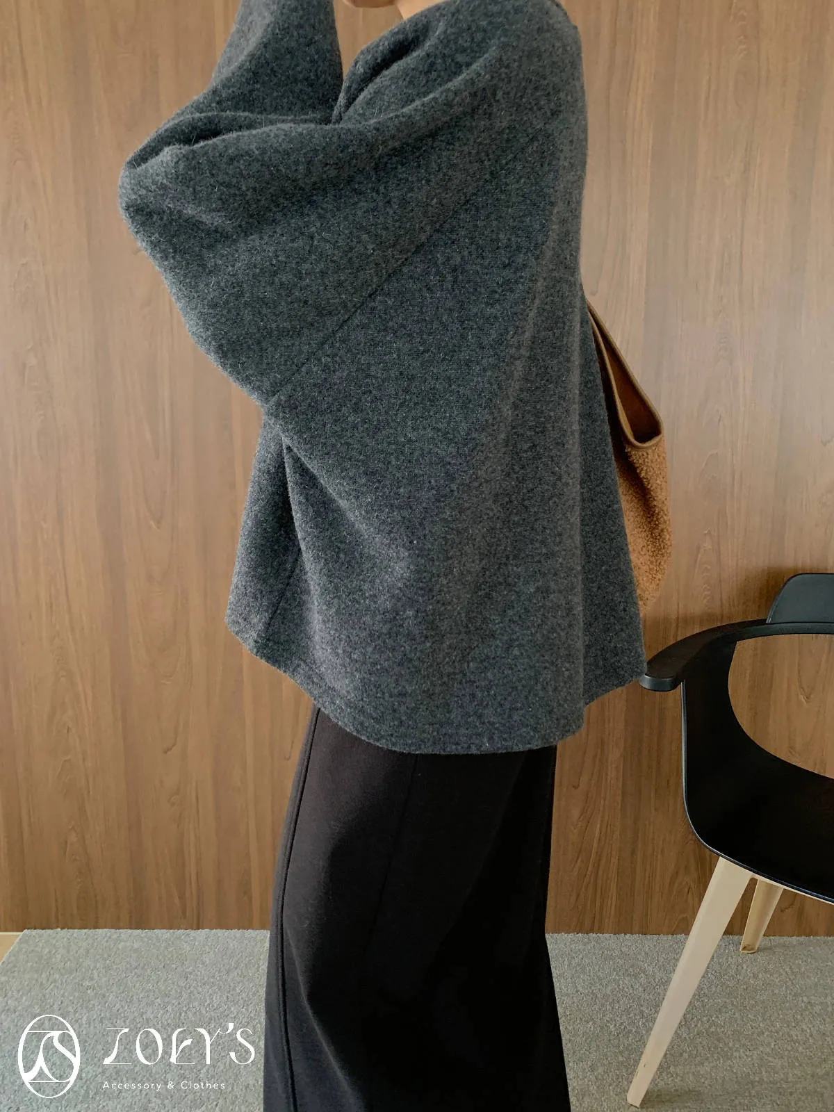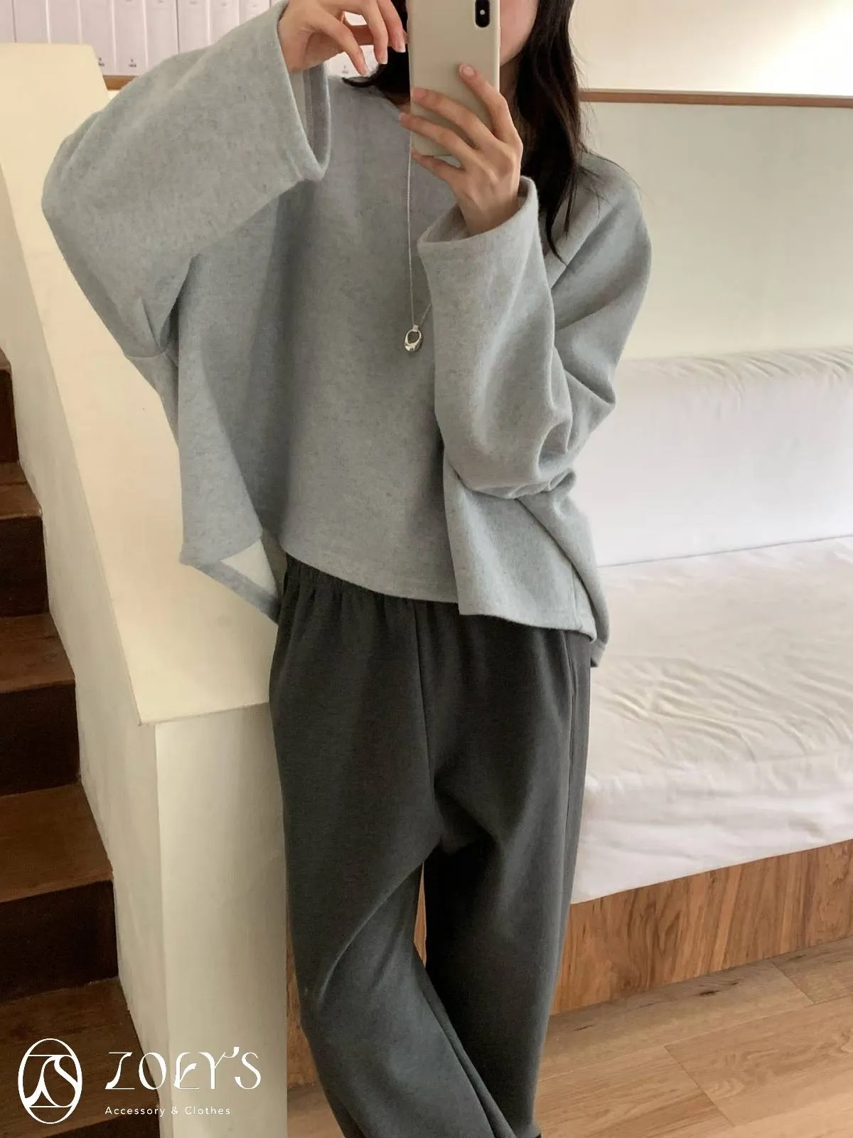 正韓 前短後長簡約圓領羊毛衫 深灰/淺灰/米白