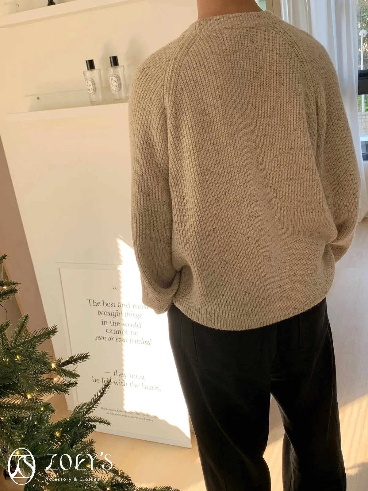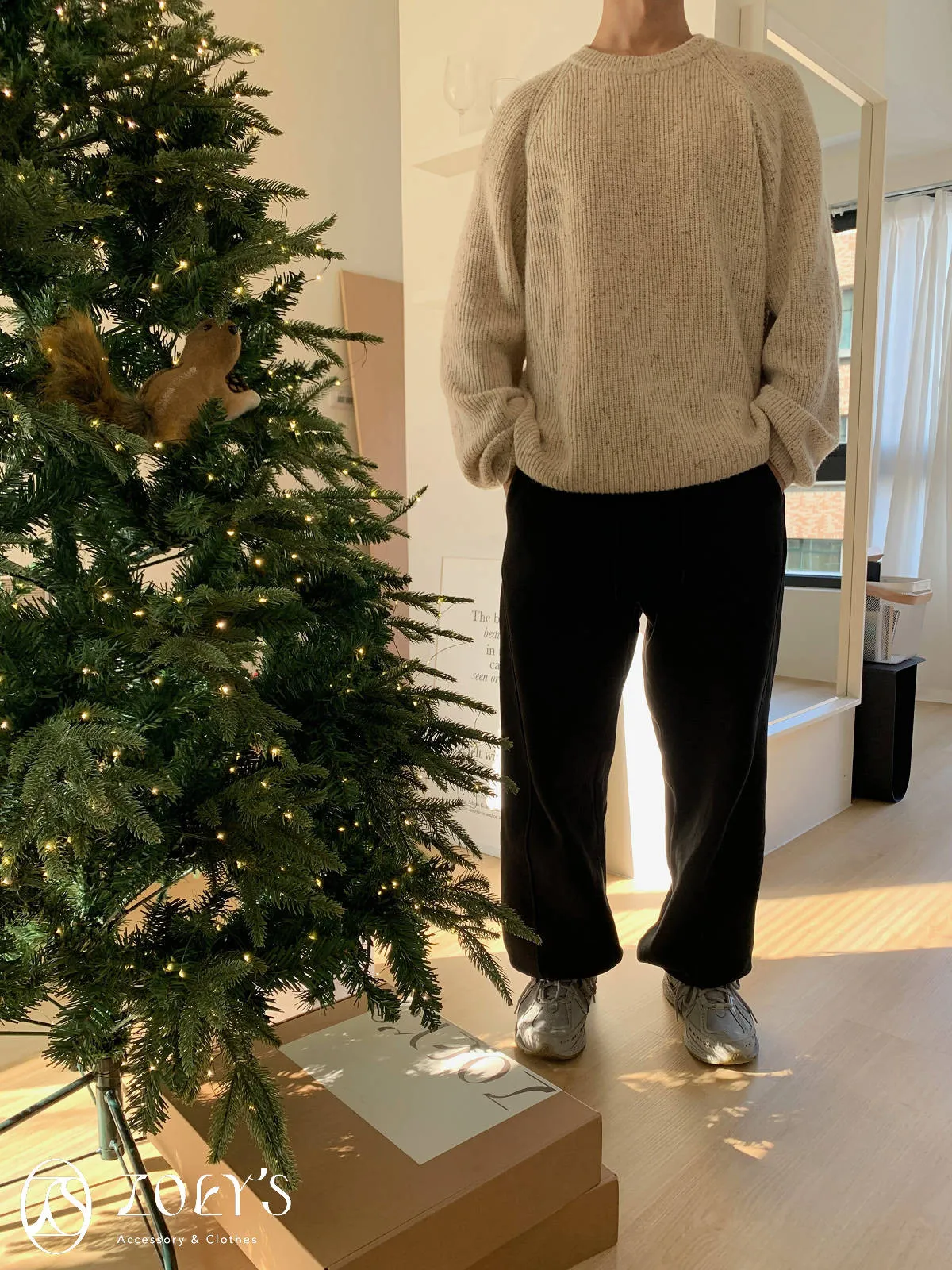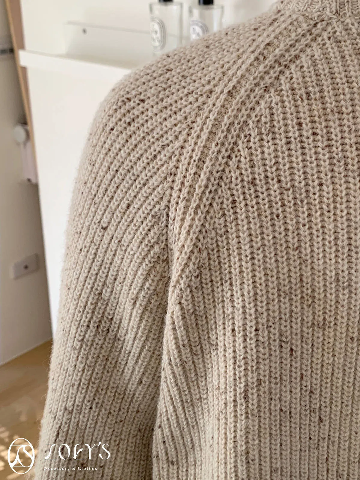 正韓 斜肩袖小雜點情侶毛衣 墨黑/燕麥
