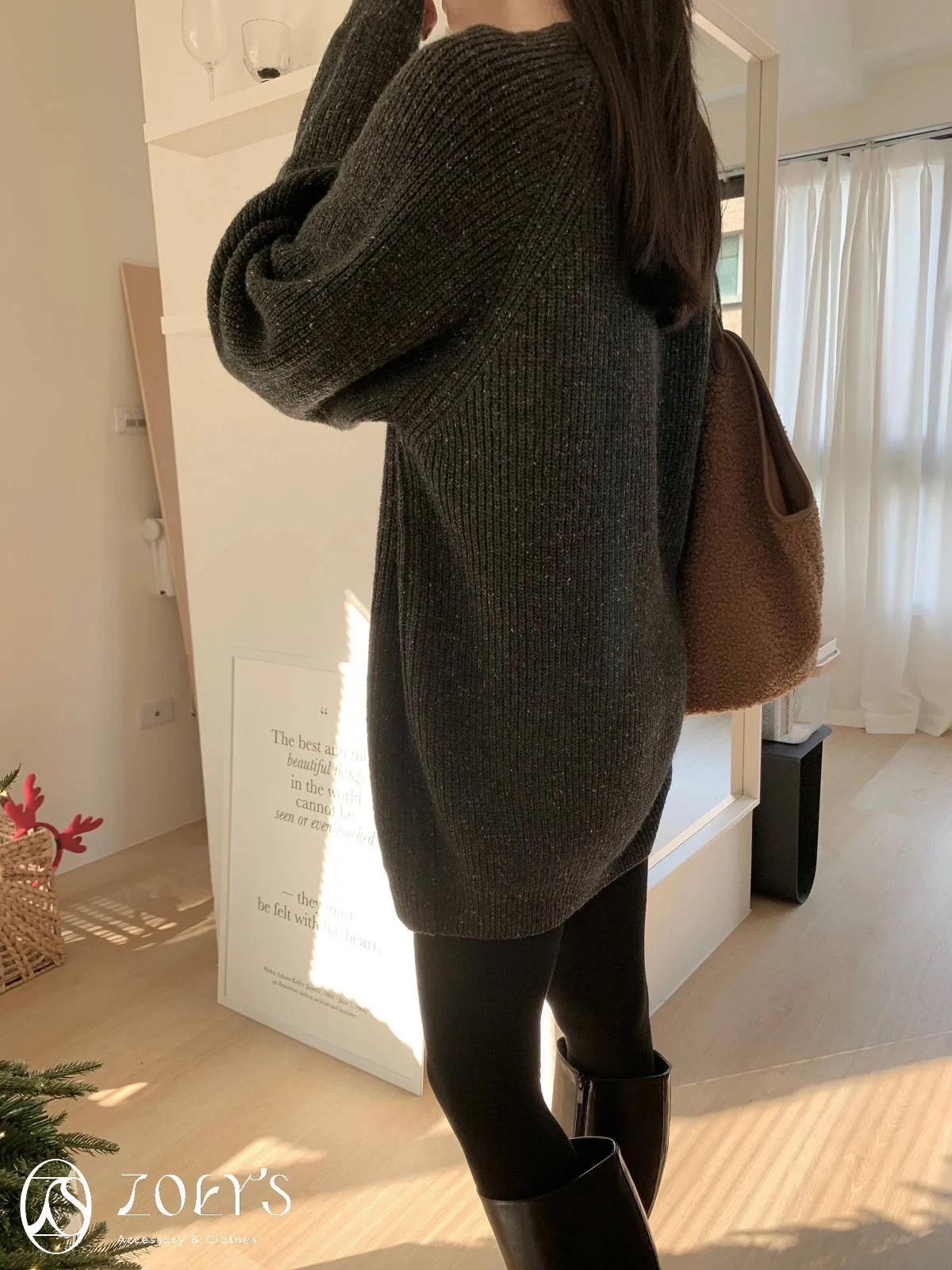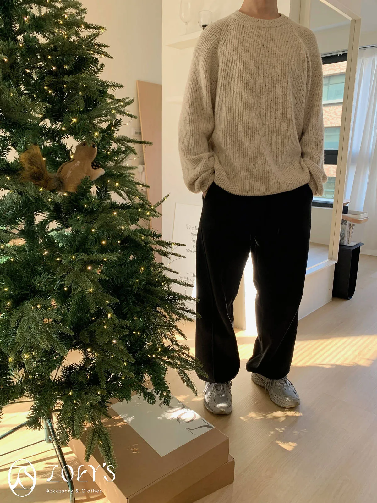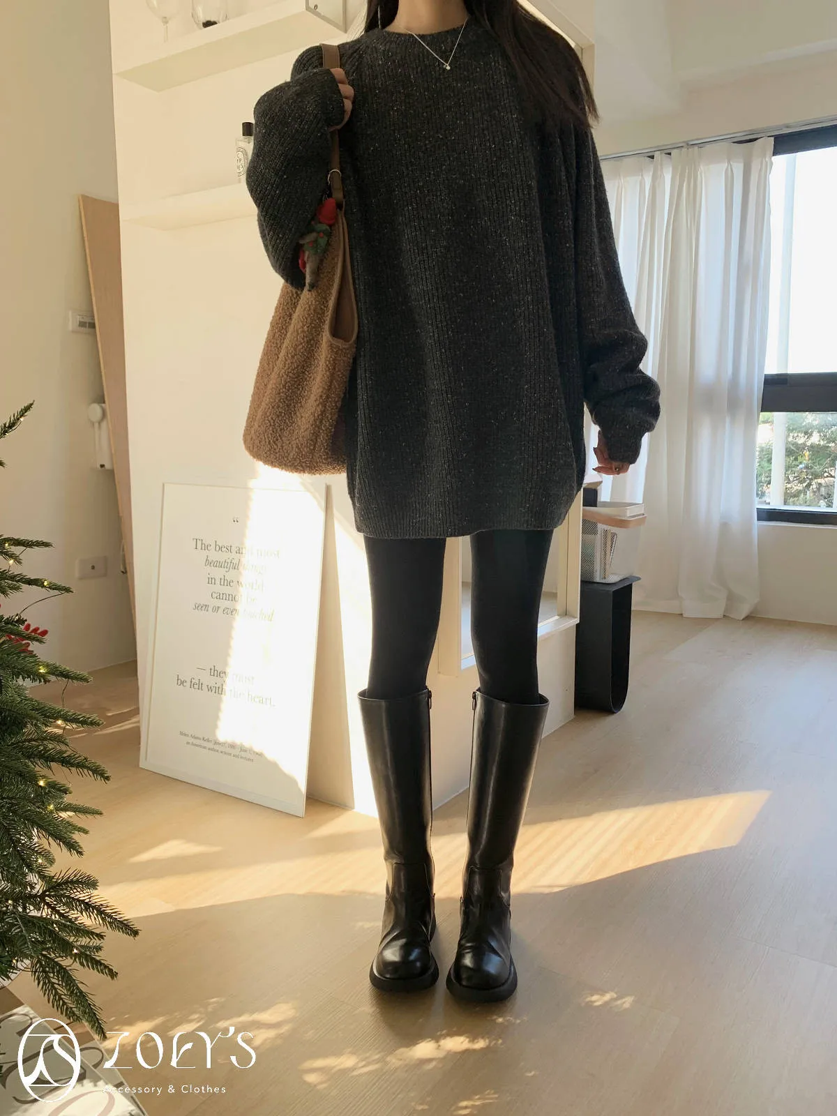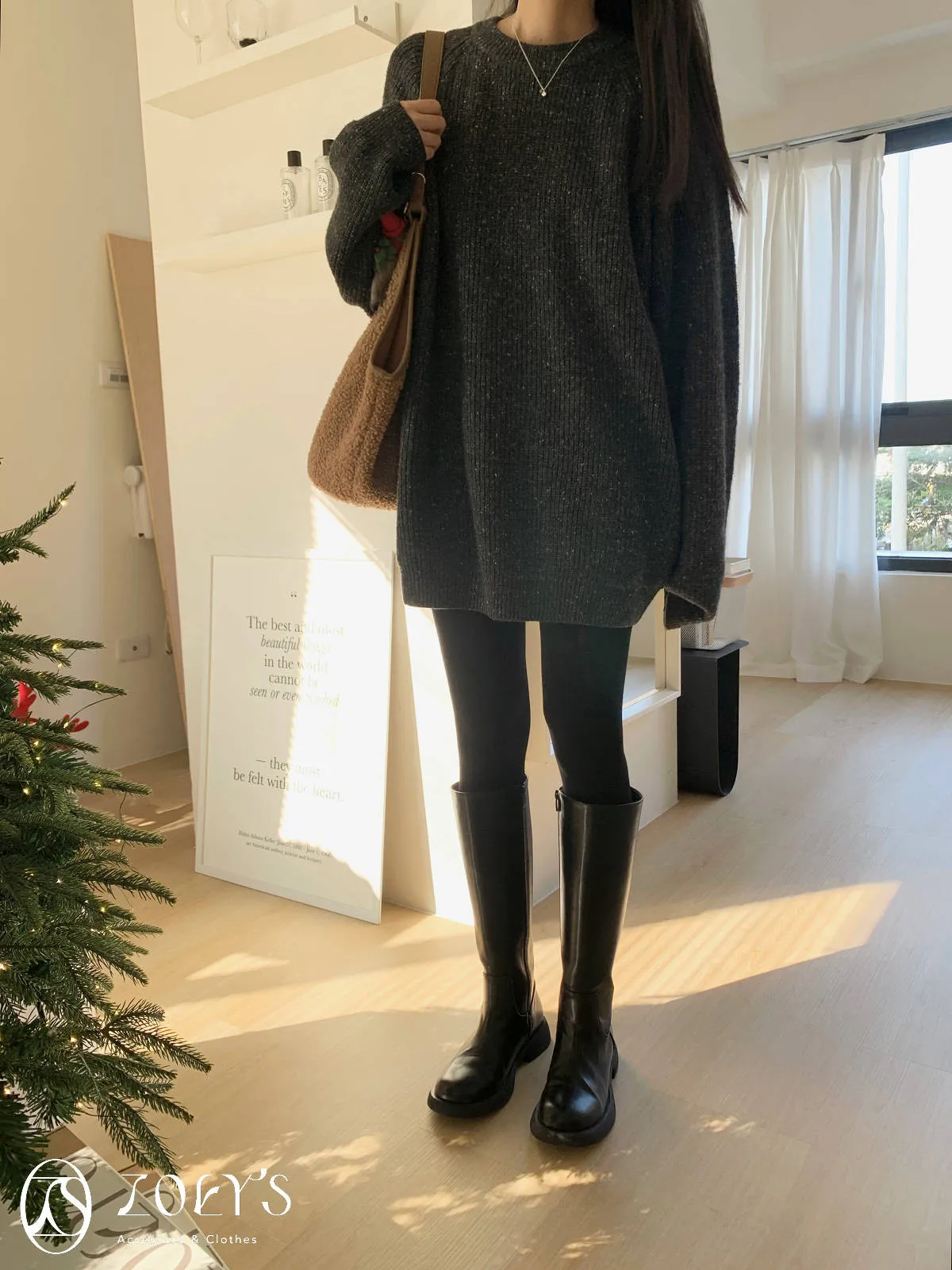 正韓 斜肩袖小雜點情侶毛衣 墨黑/燕麥