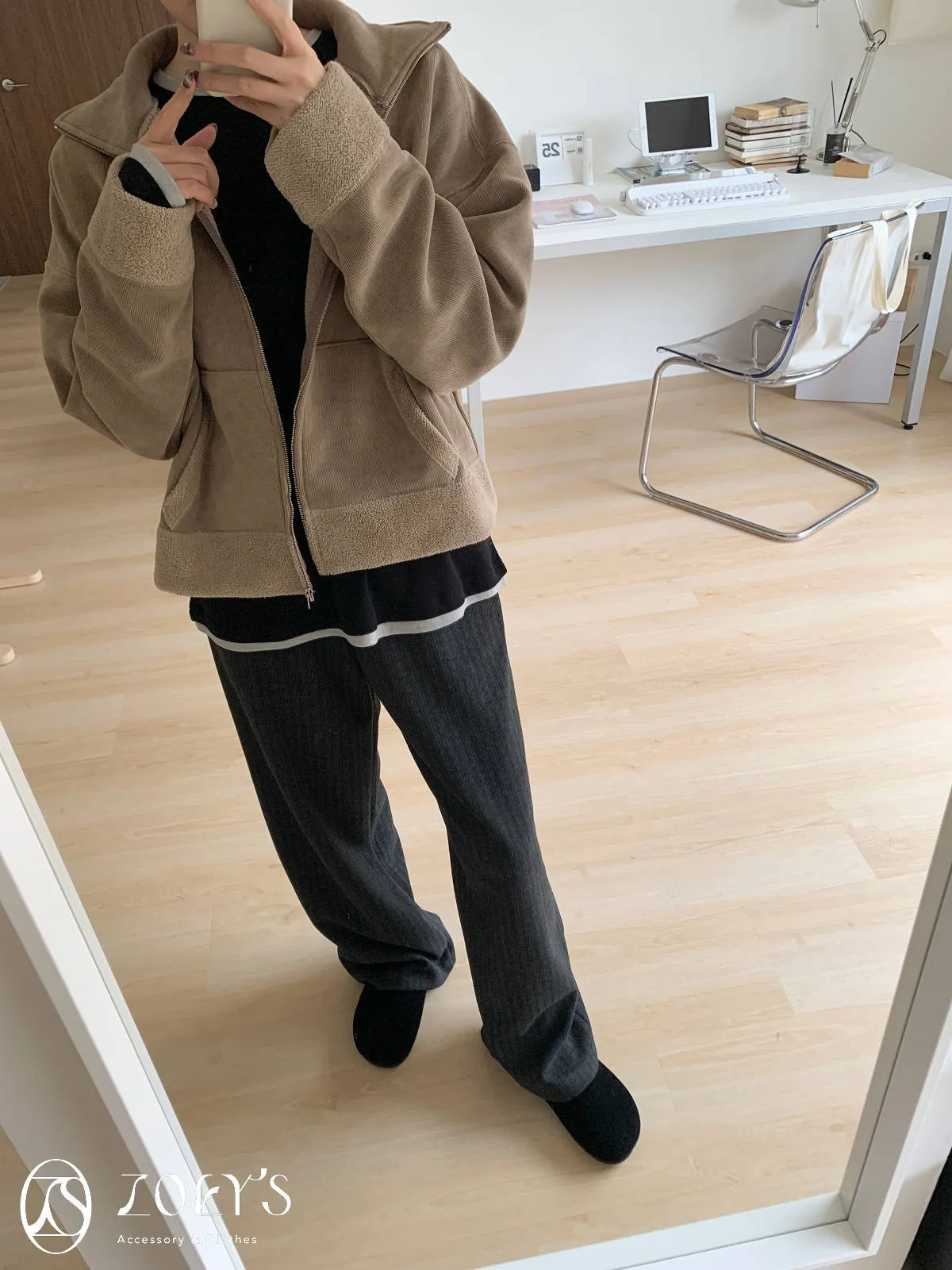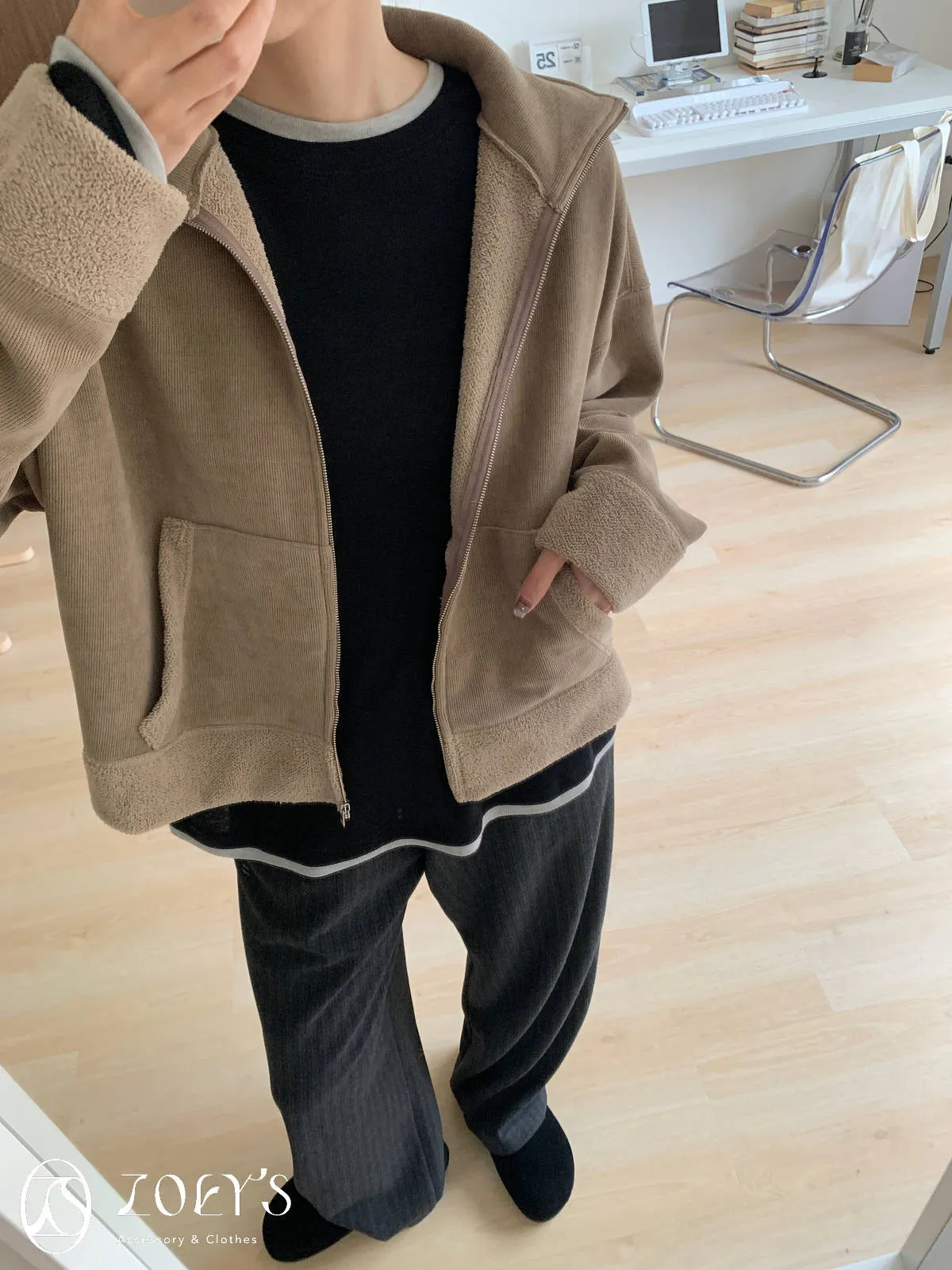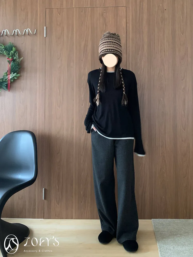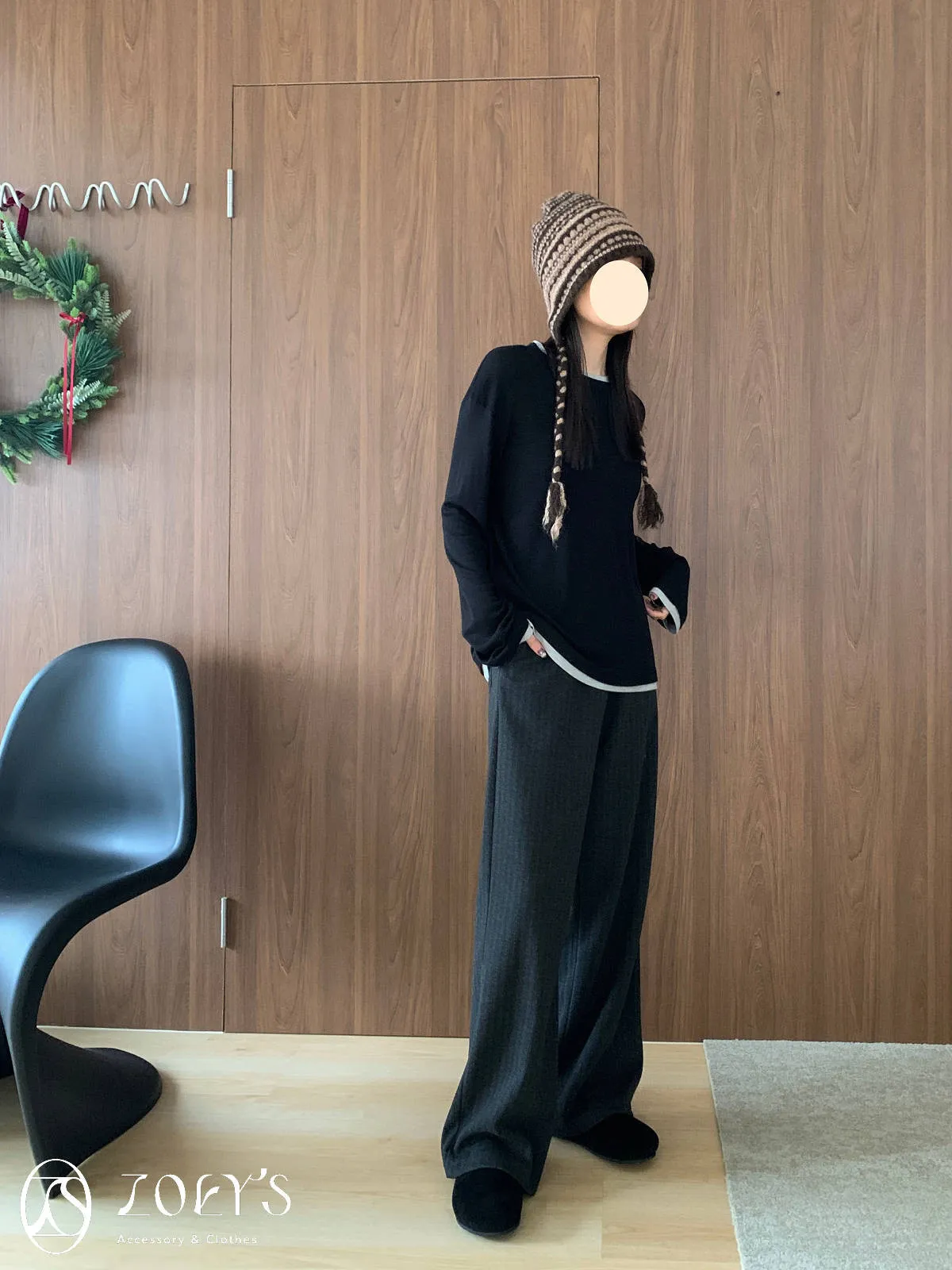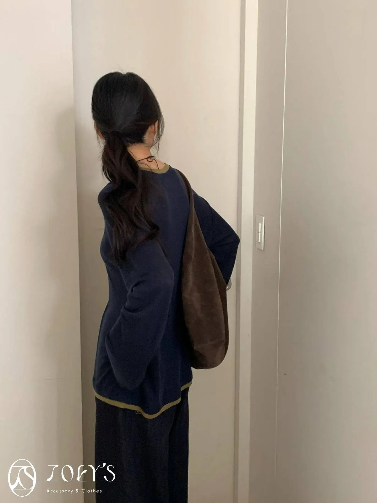 正韓 配色假兩件天絲羊毛薄上衣 深藍/灰/黑