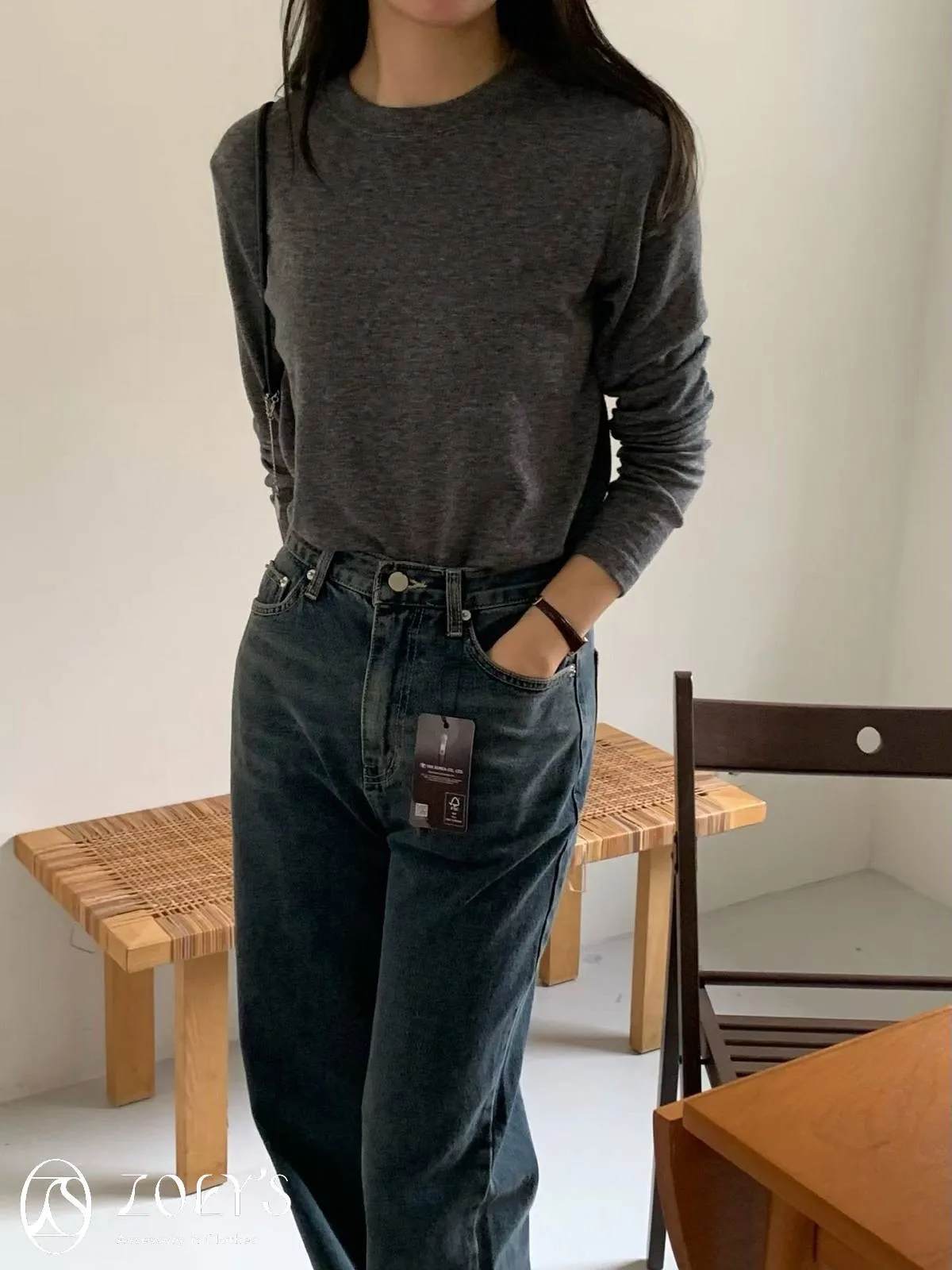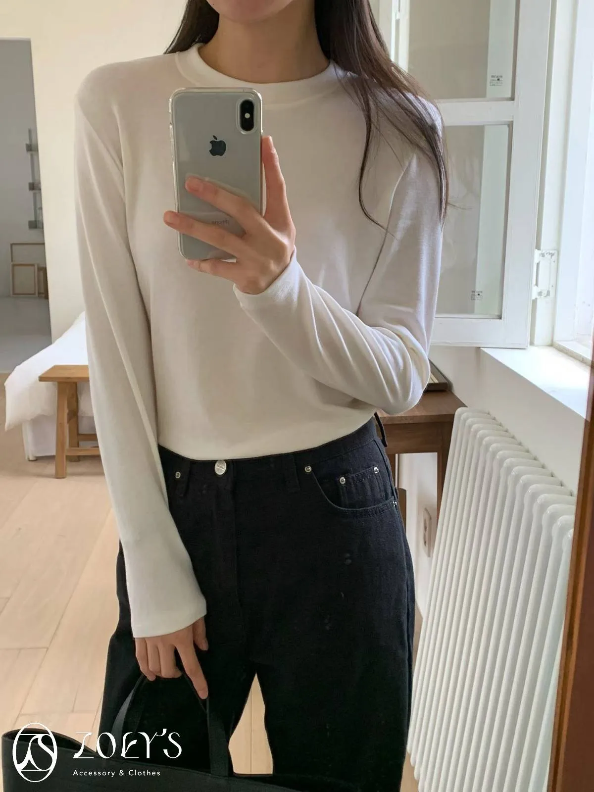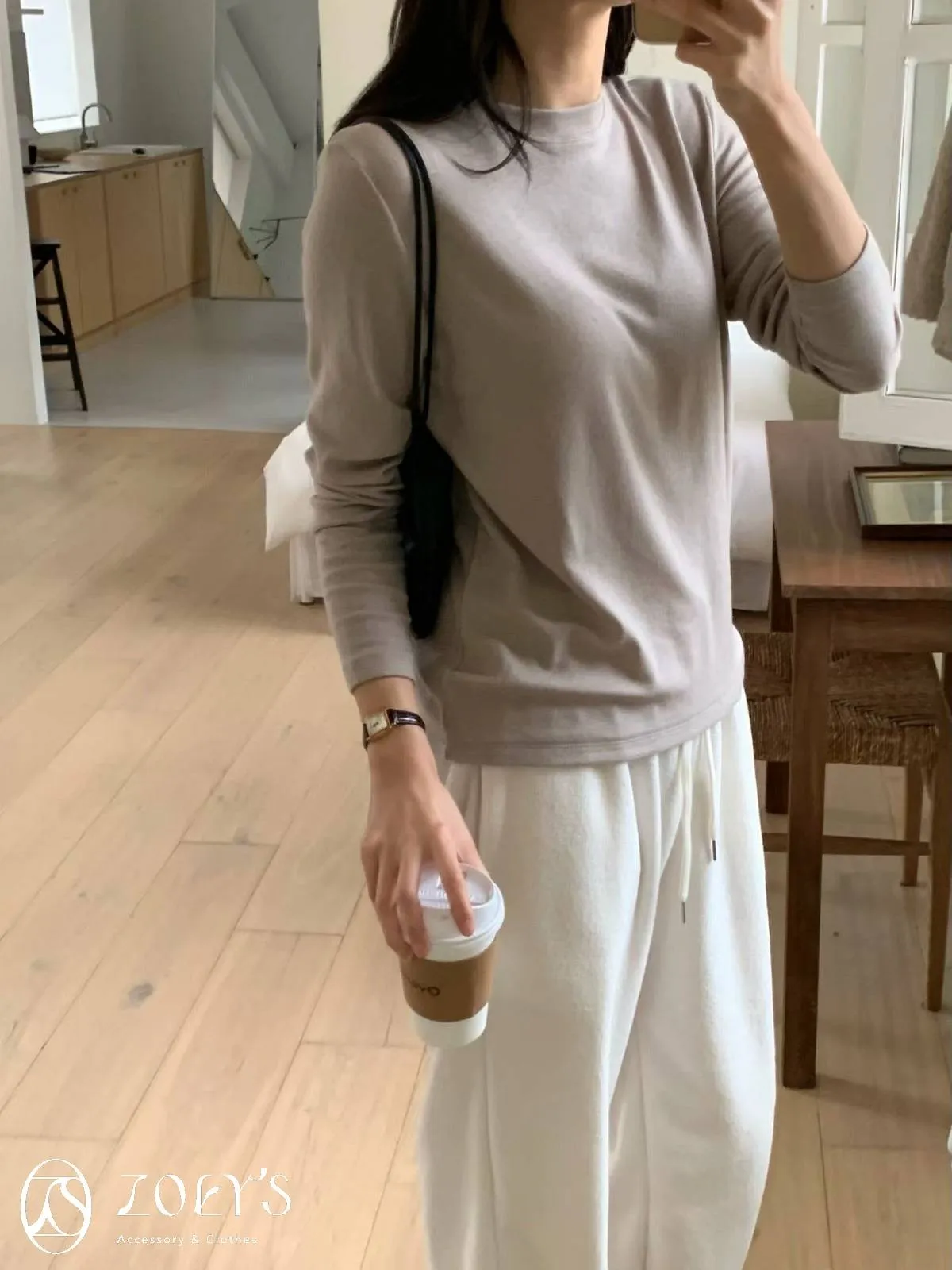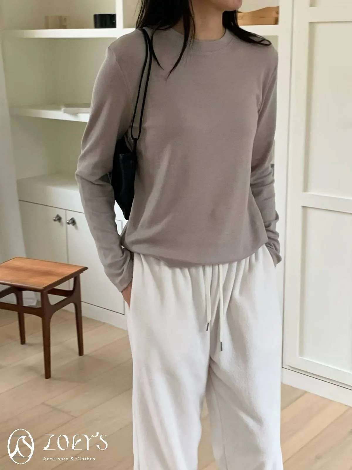 正韓 天絲羊毛圓領上衣 黑/白/灰/咖/可可/深藍