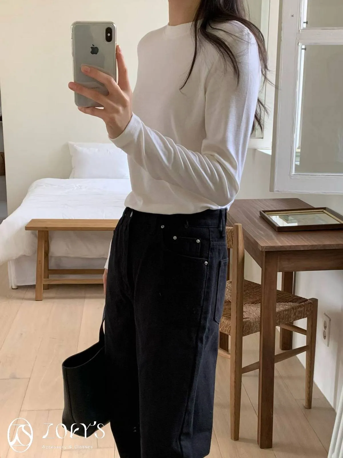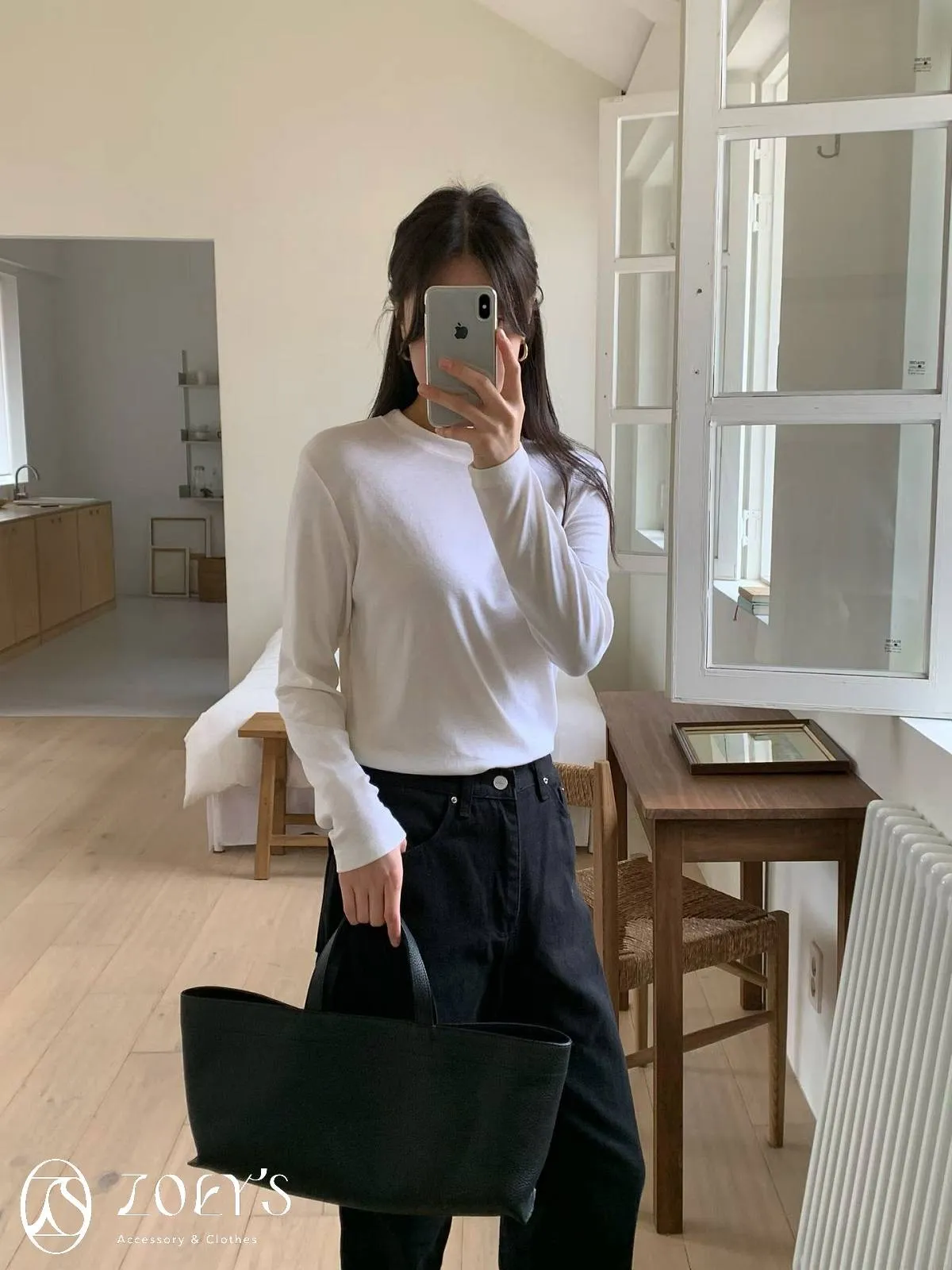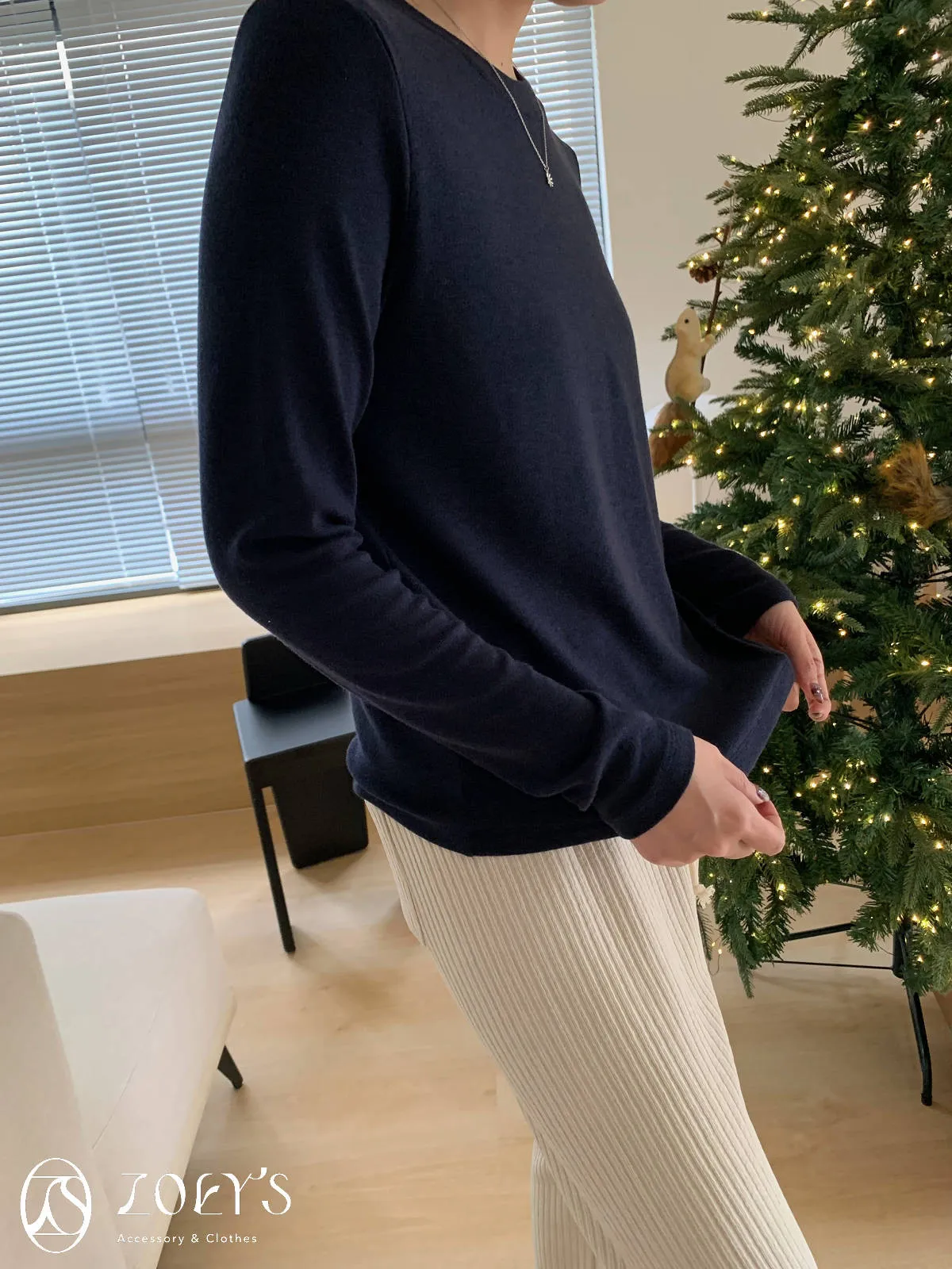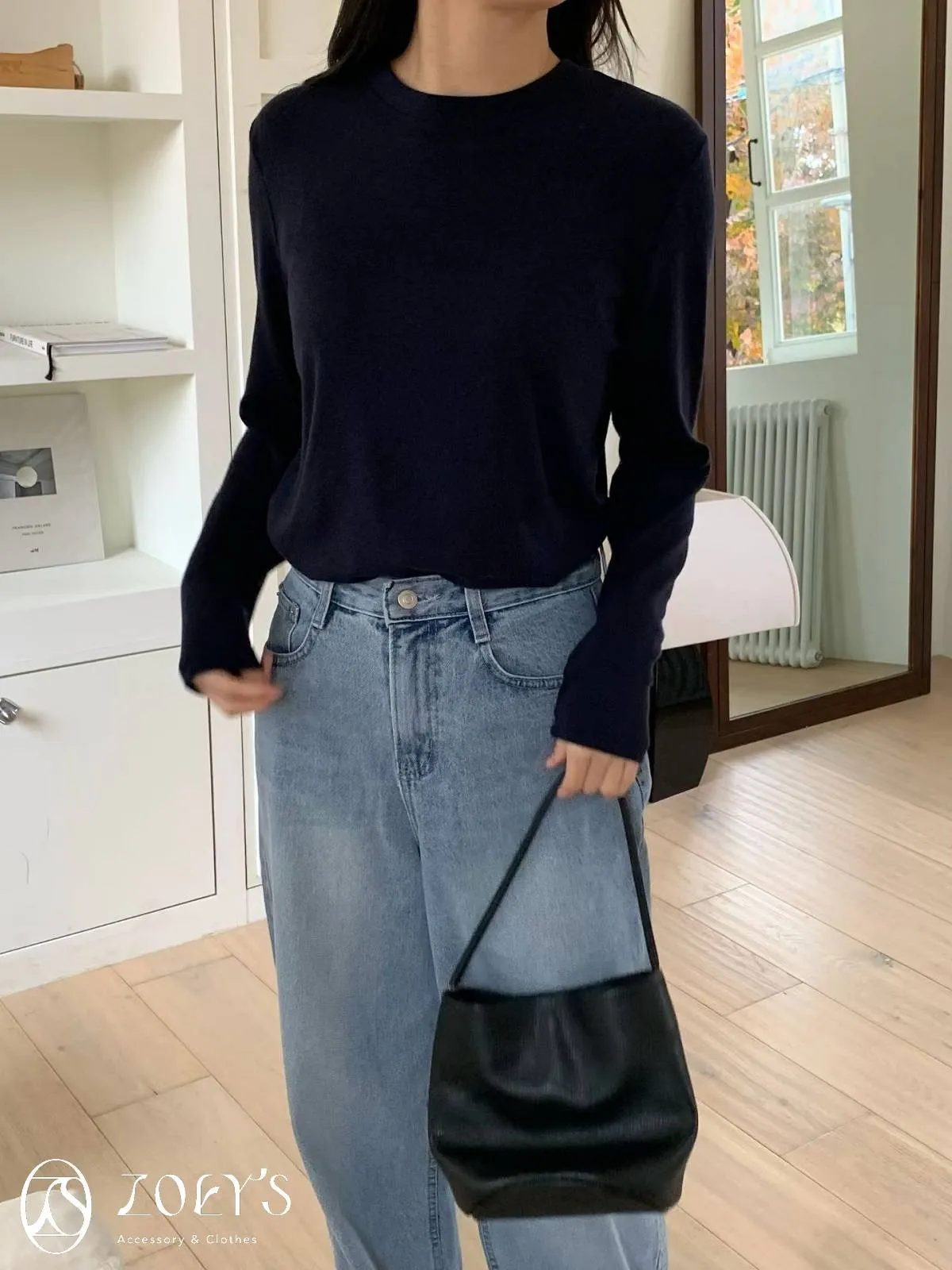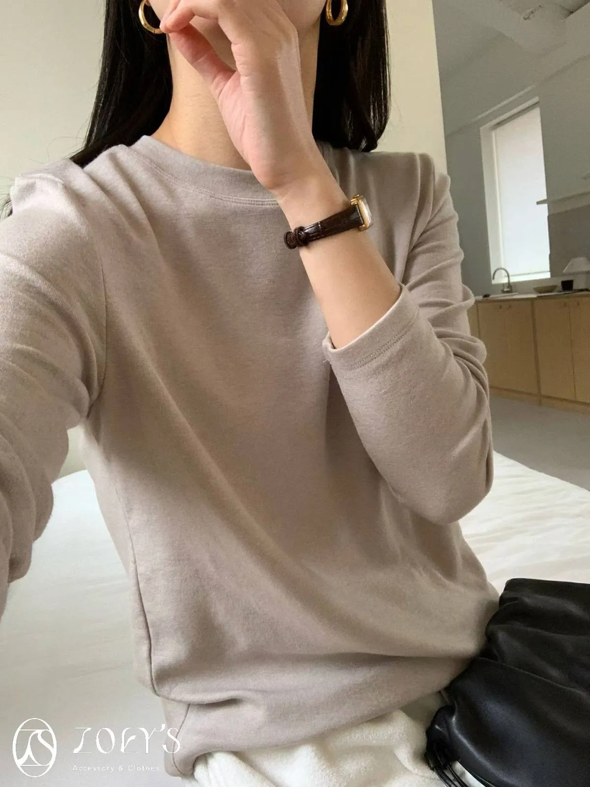 正韓 天絲羊毛圓領上衣 黑/白/灰/咖/可可/深藍