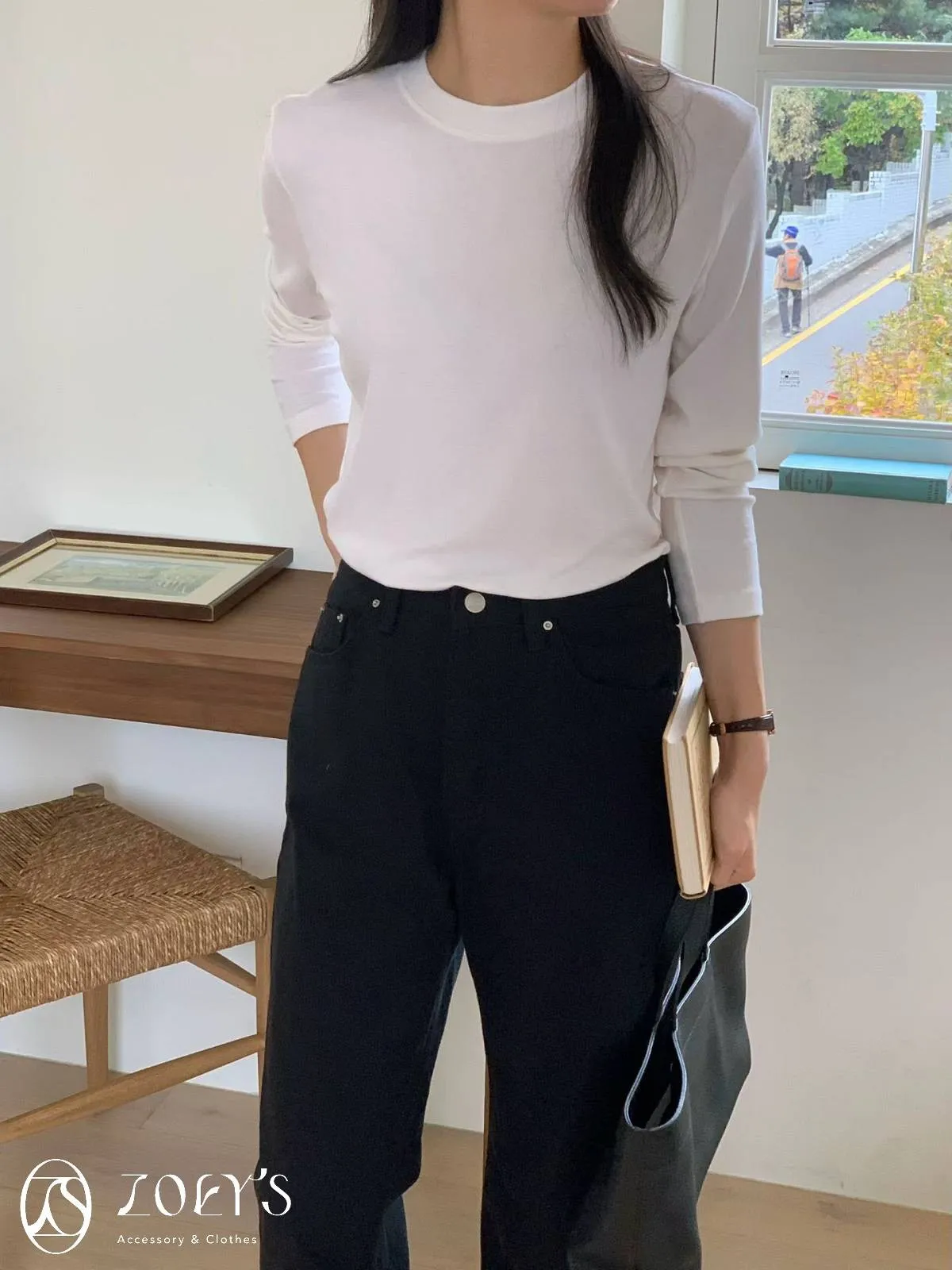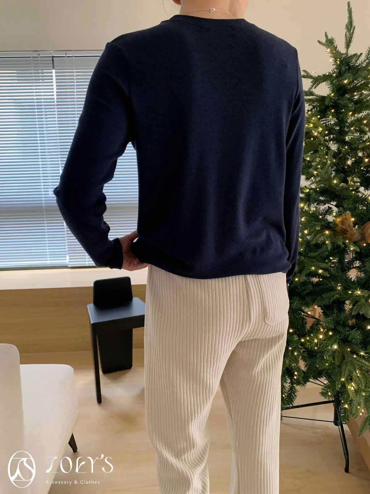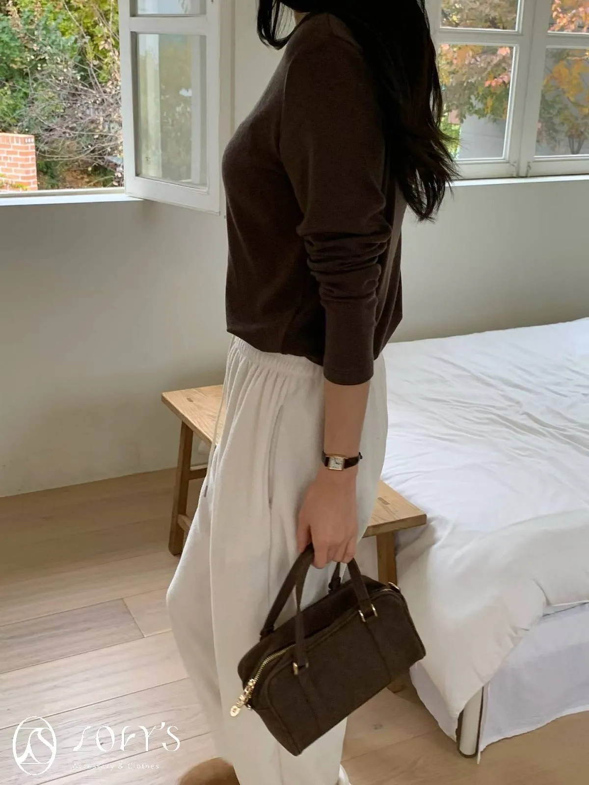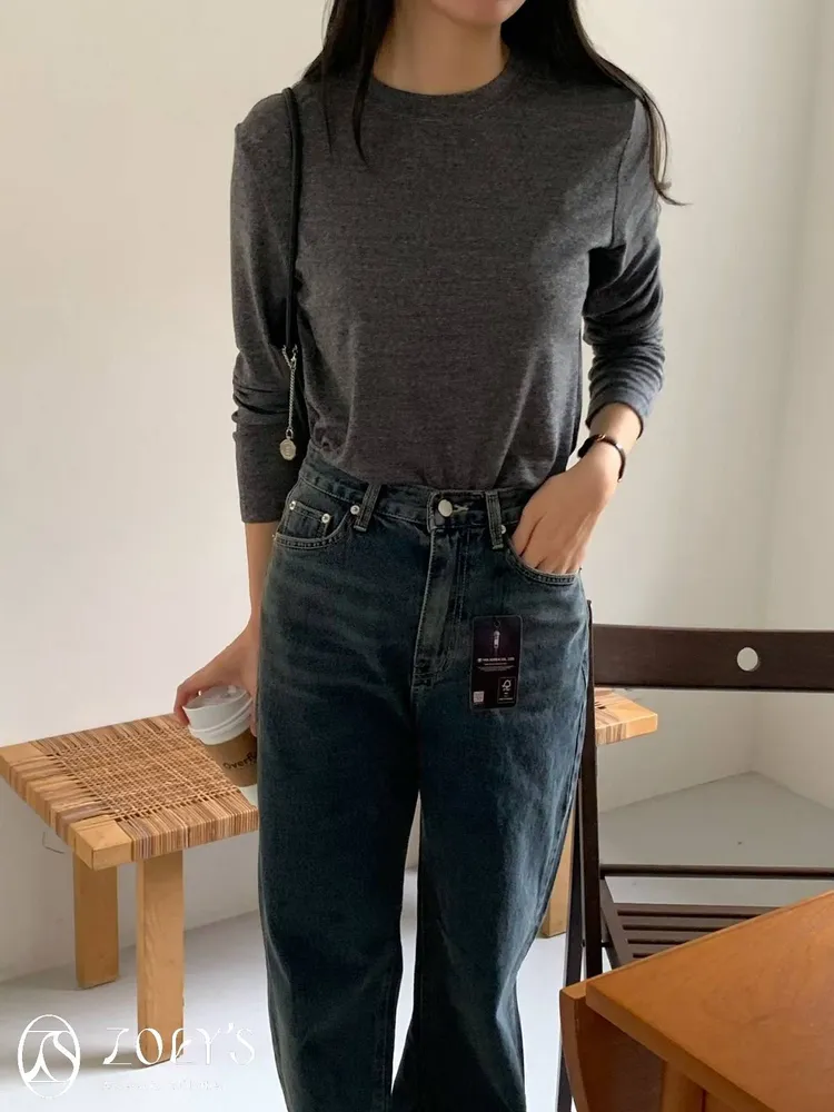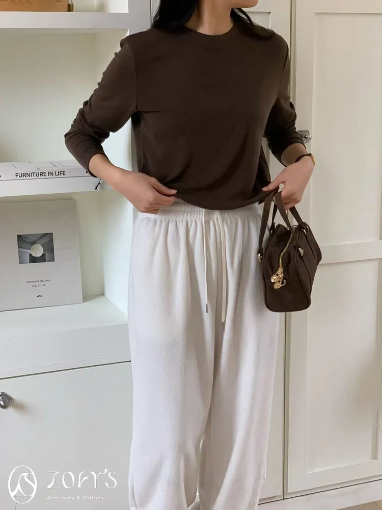 正韓 天絲羊毛圓領上衣 黑/白/灰/咖/可可/深藍