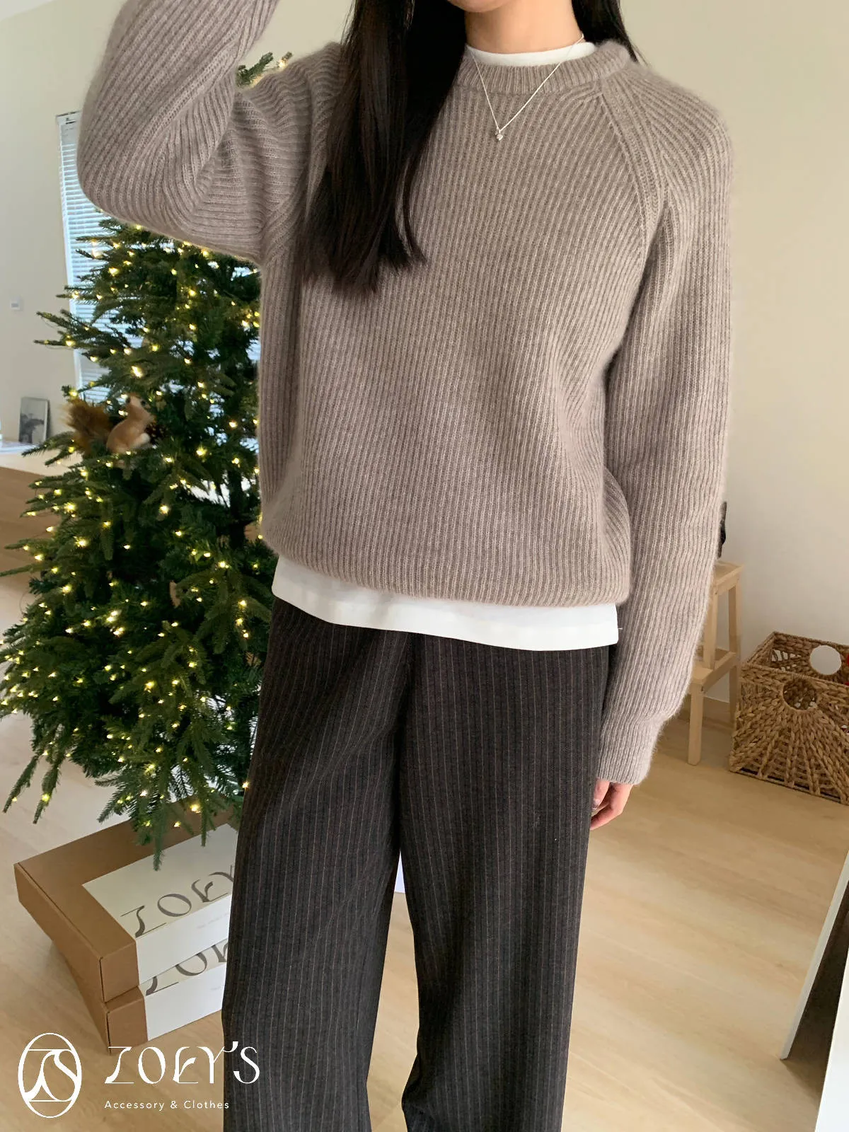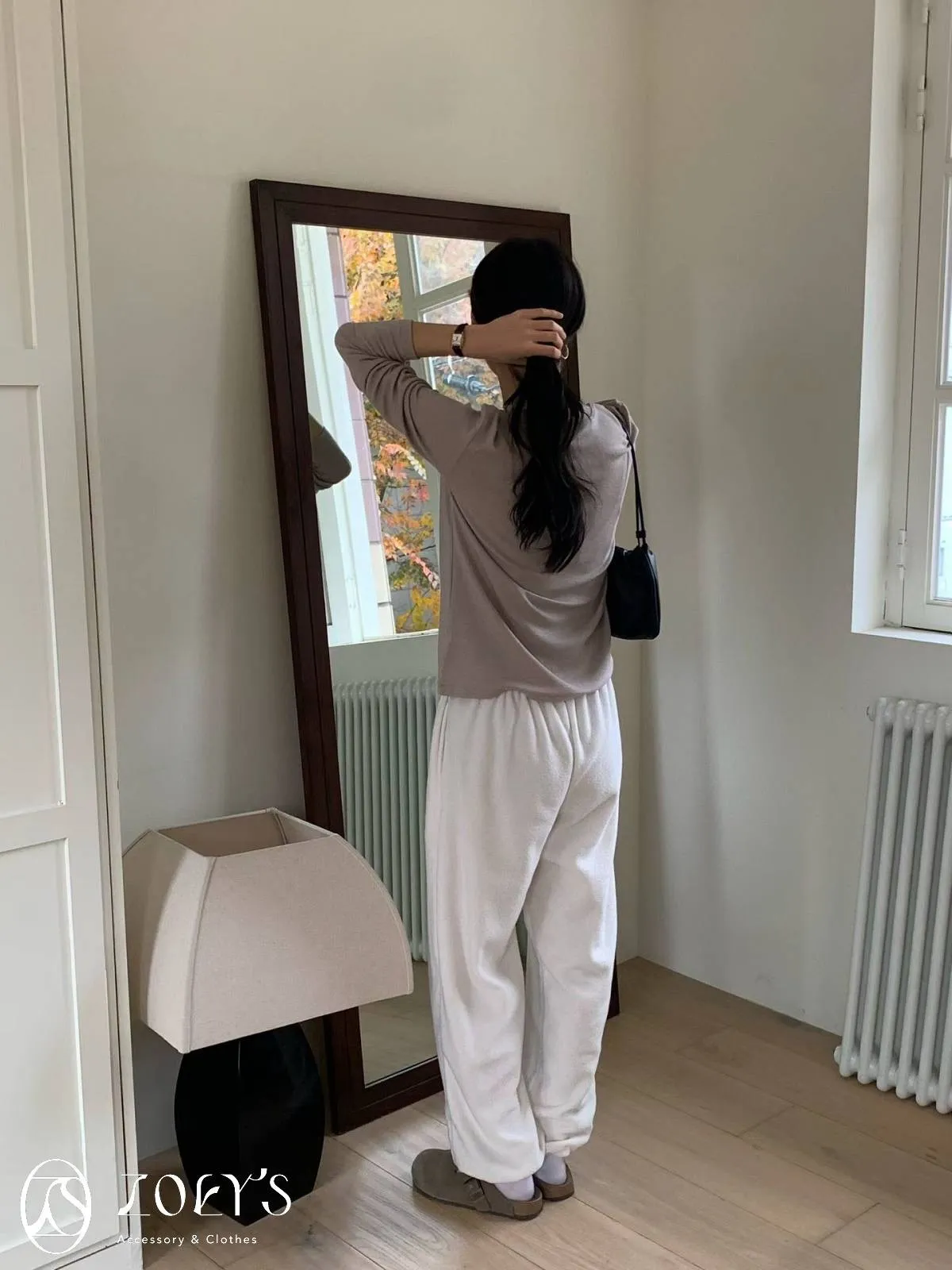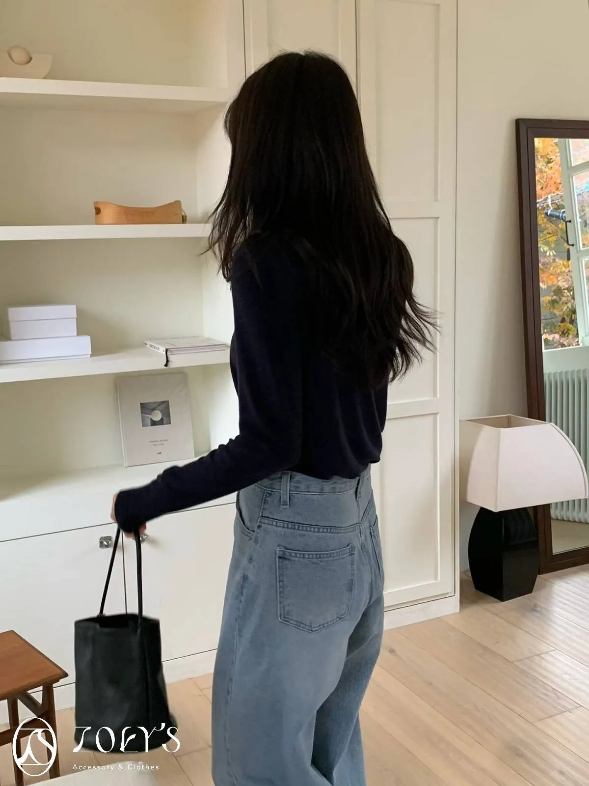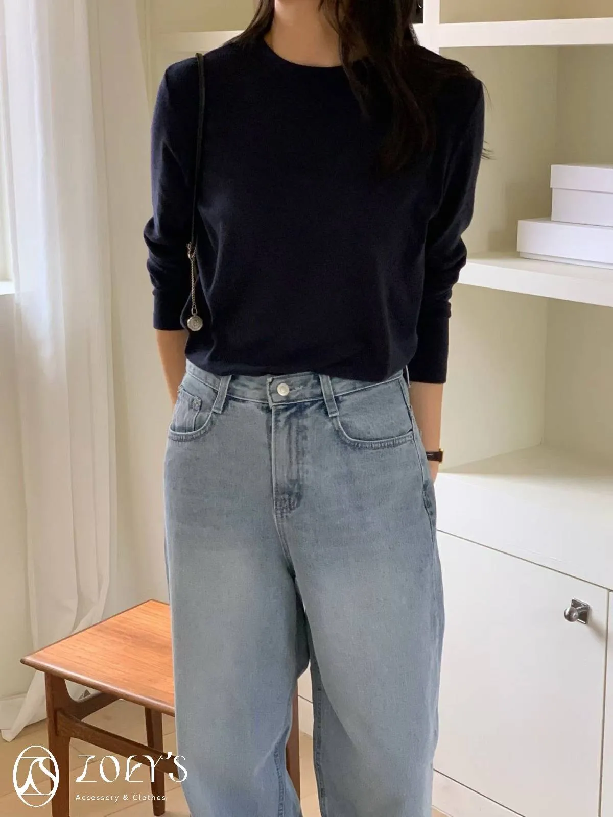 正韓 天絲羊毛圓領上衣 黑/白/灰/咖/可可/深藍