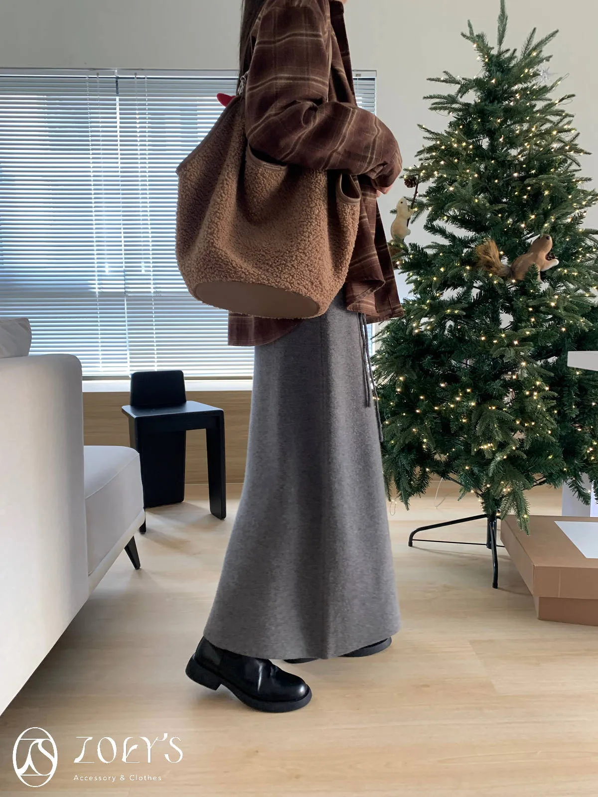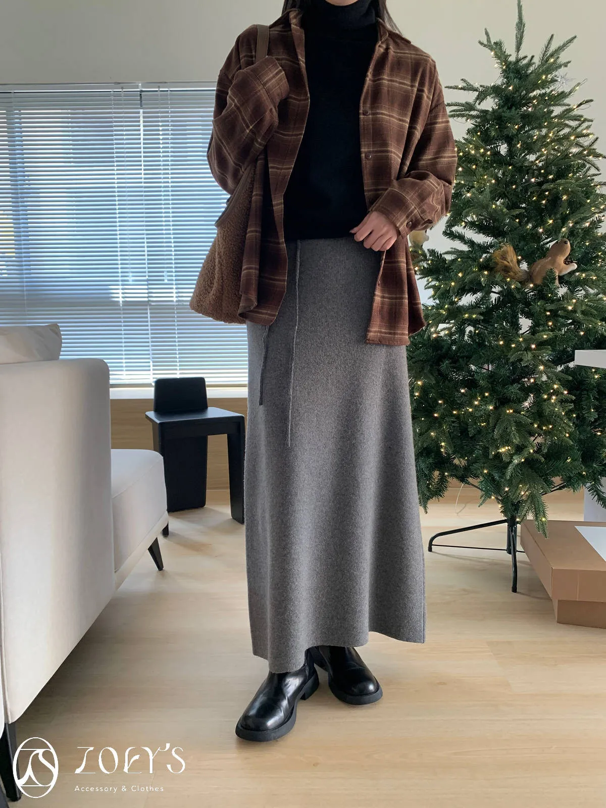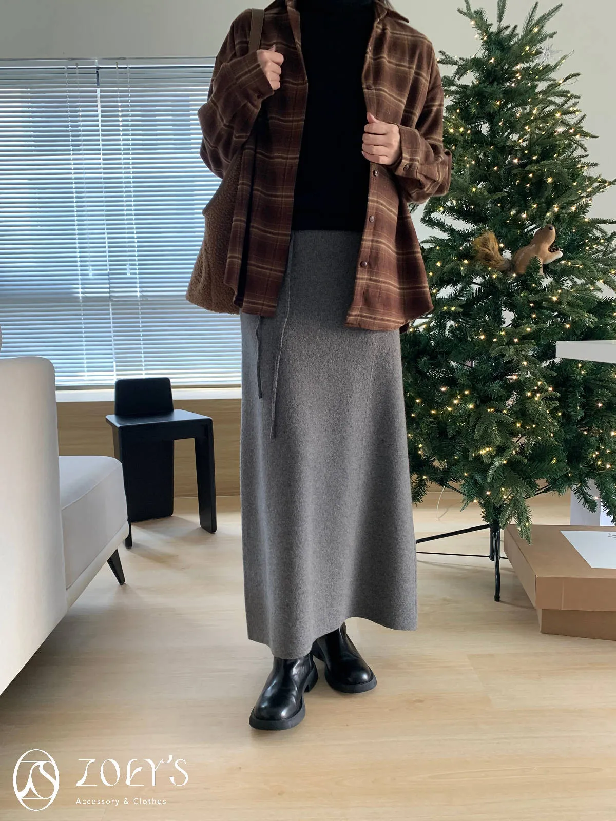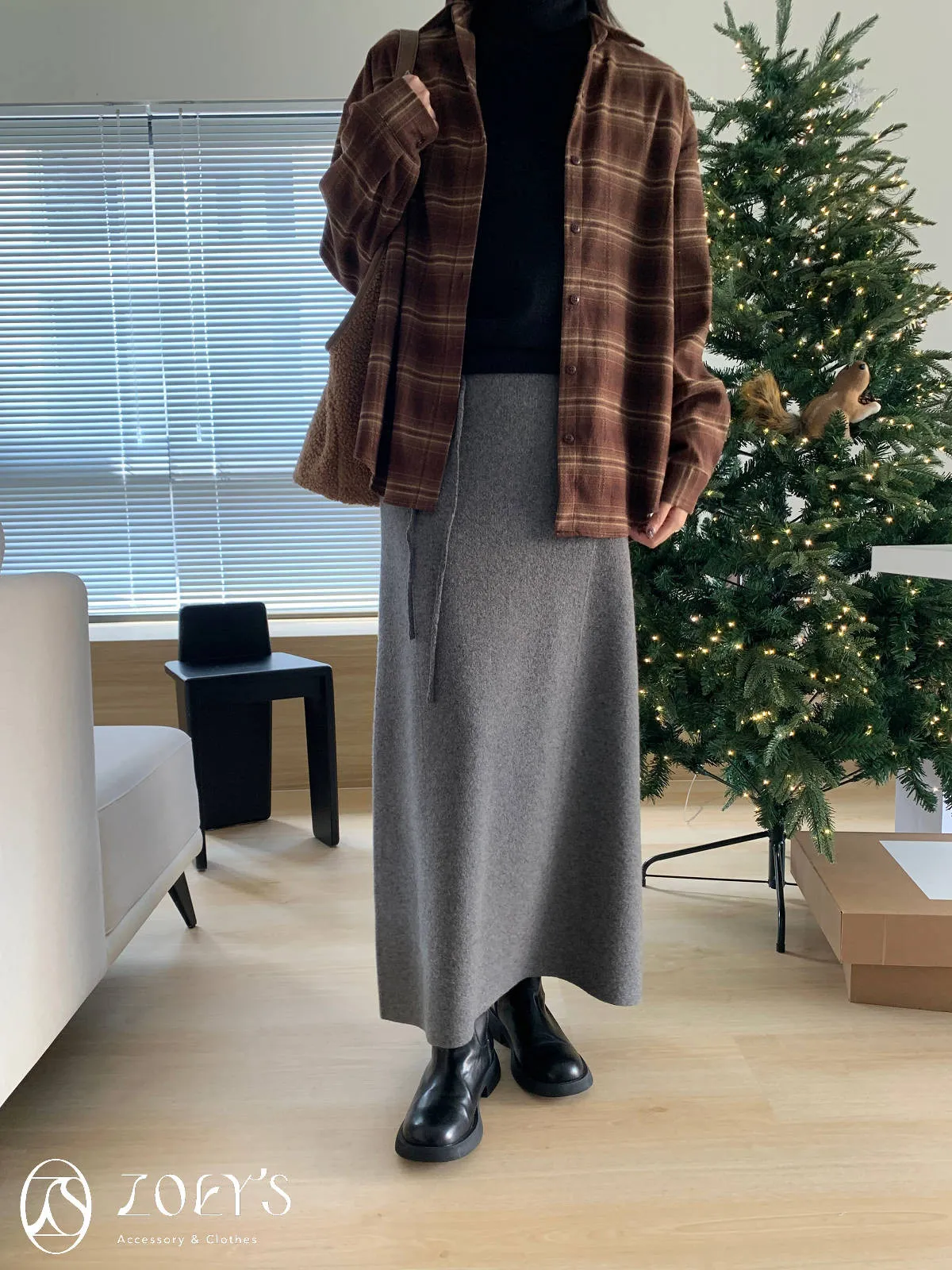 正韓 薄毛呢感格紋襯衫 深藍/咖