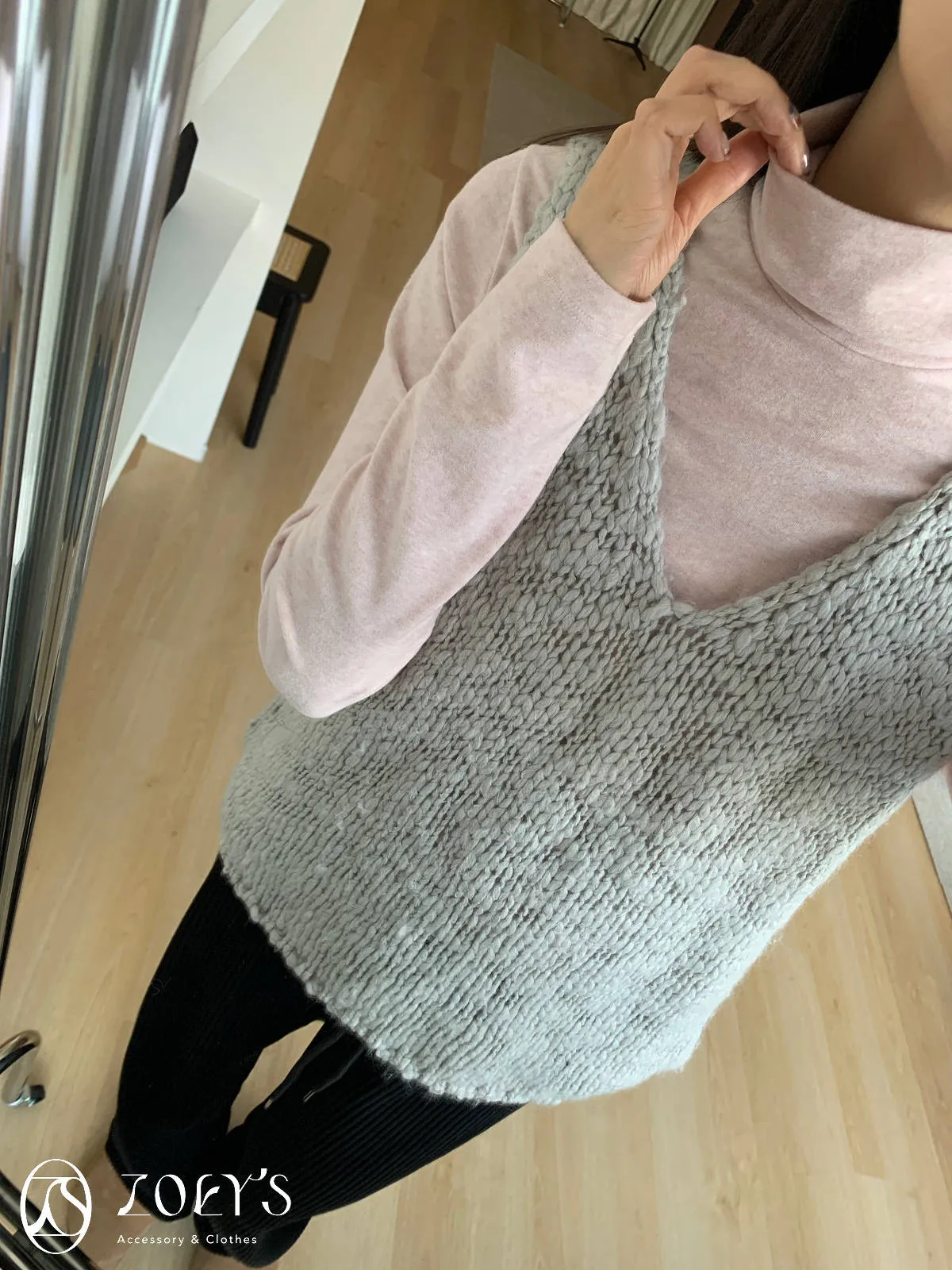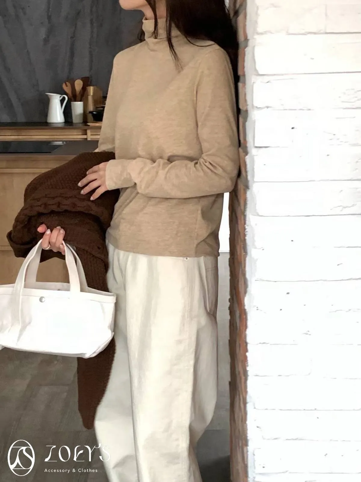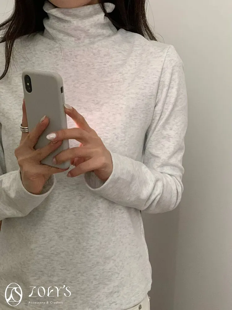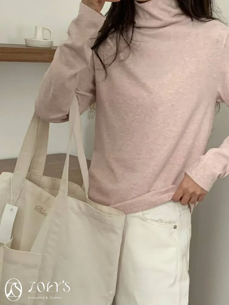 正韓 柔彈高領人造絲薄上衣 粉/灰/卡其/灰白