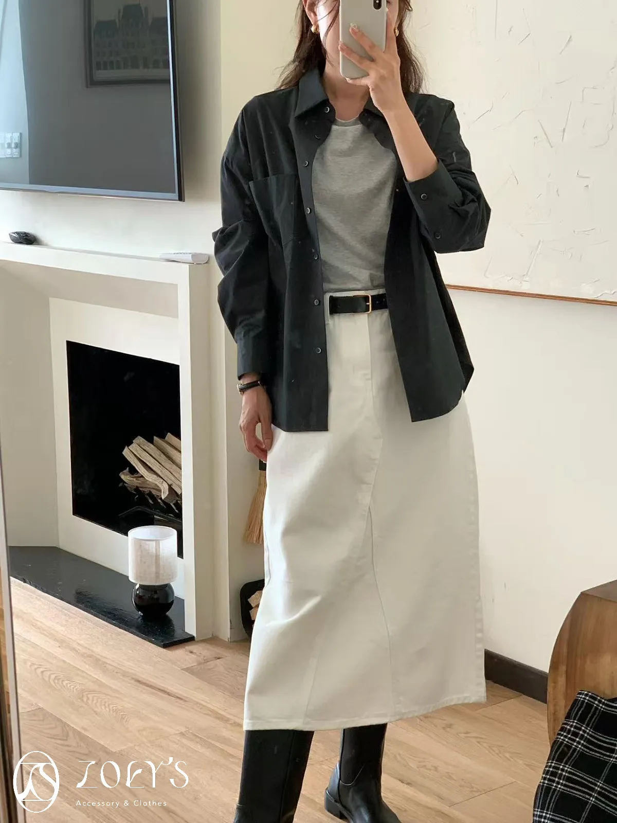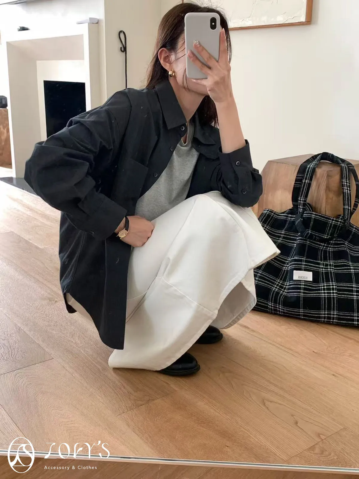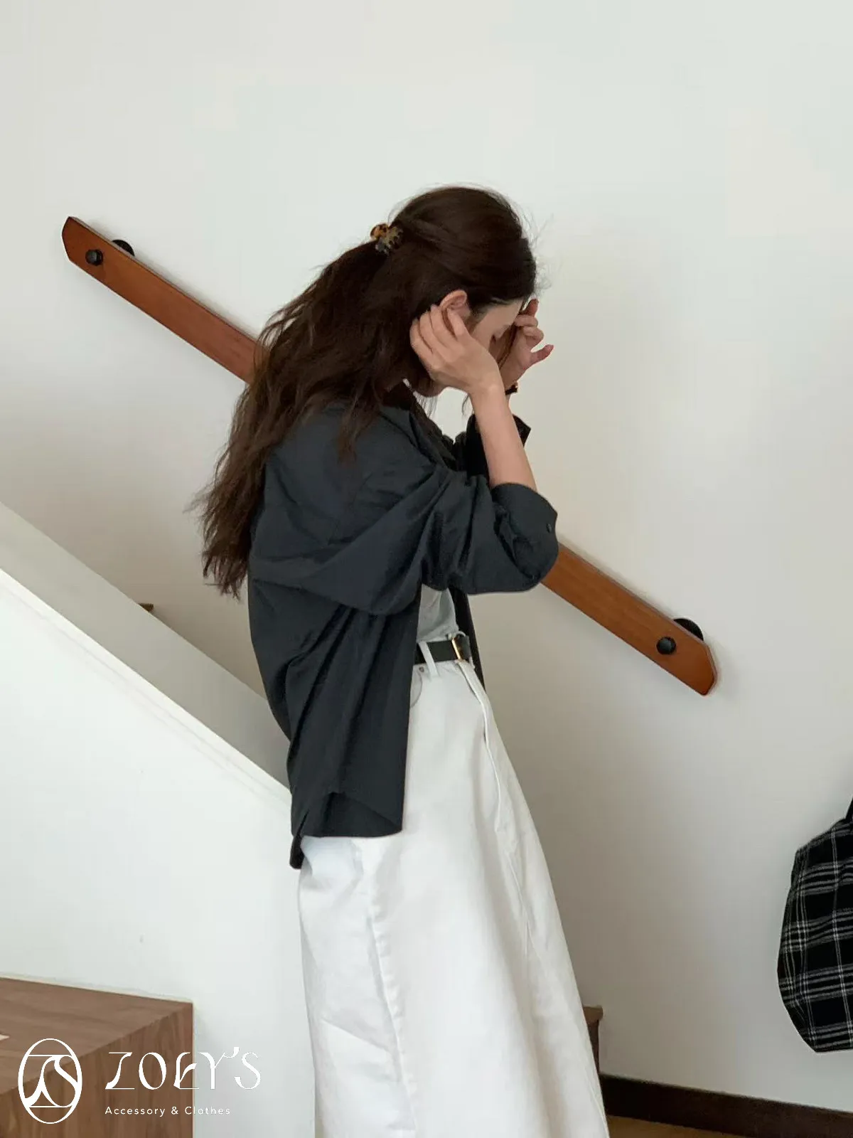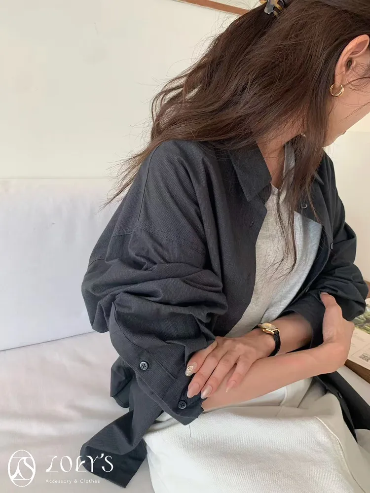 正韓 低調灰黑細直紋襯衫 SALE現貨