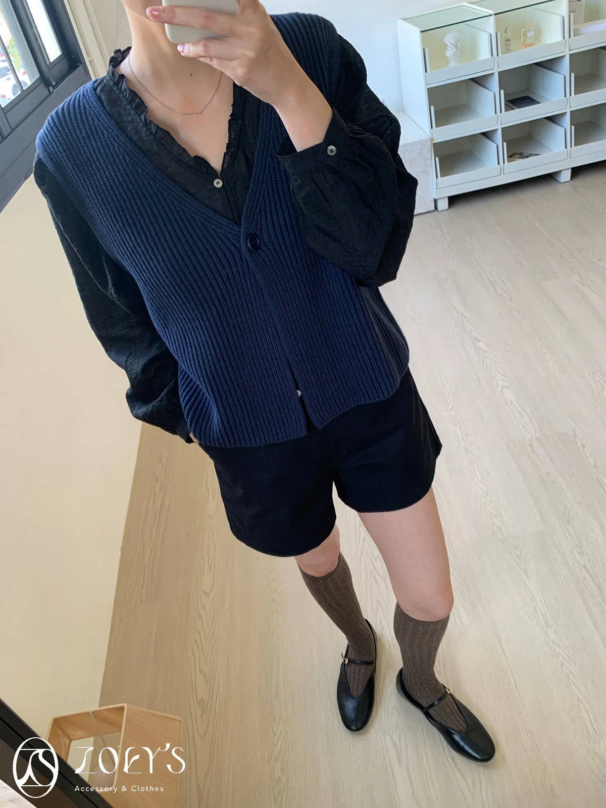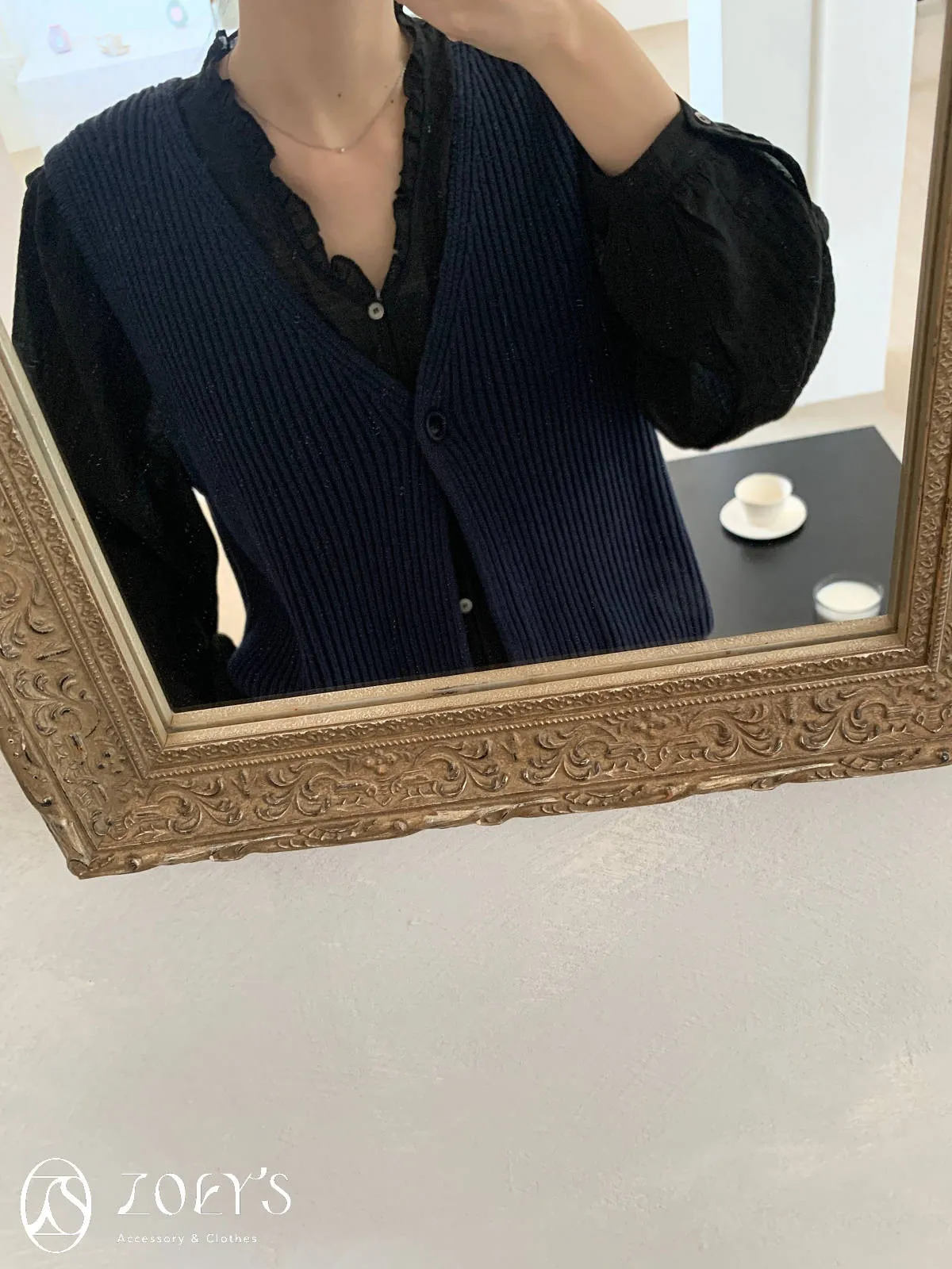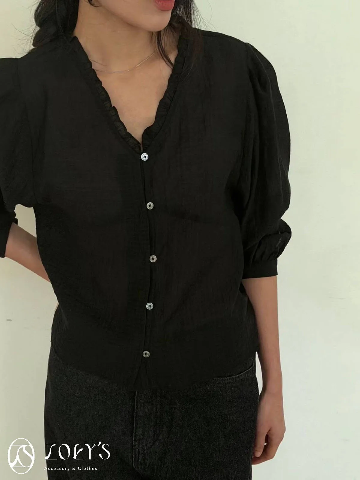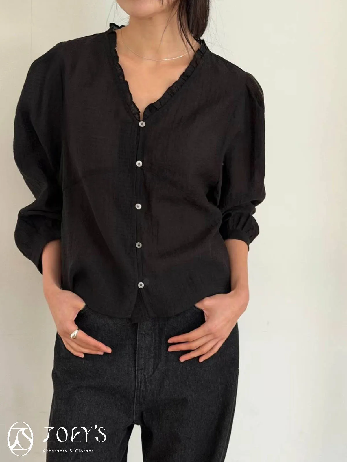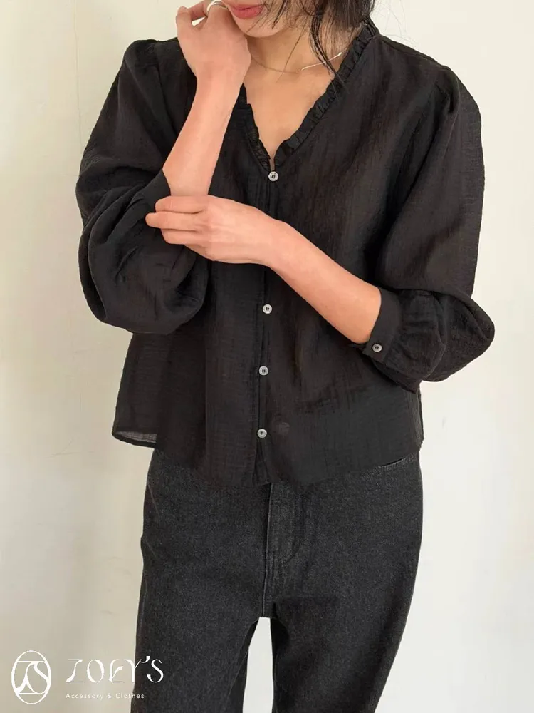 微日系V領抓褶花邊,黑白兩色穿起來風格截然不同