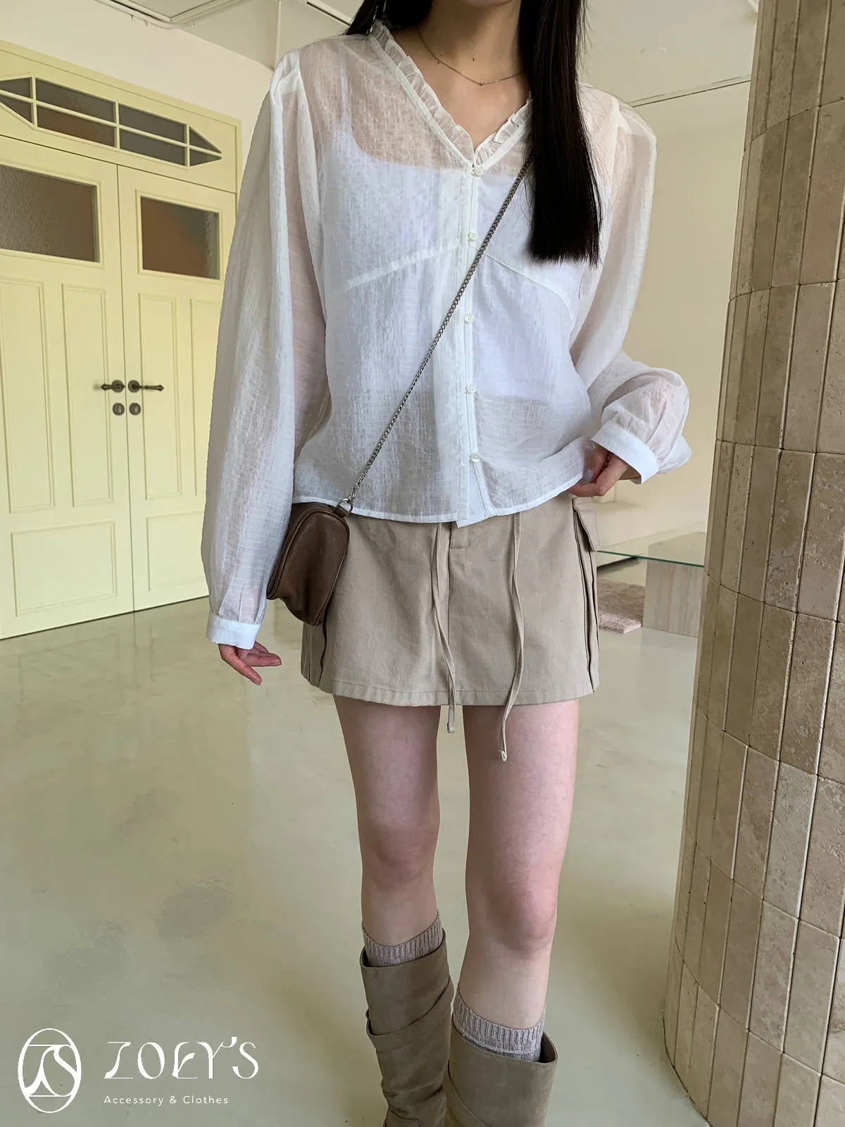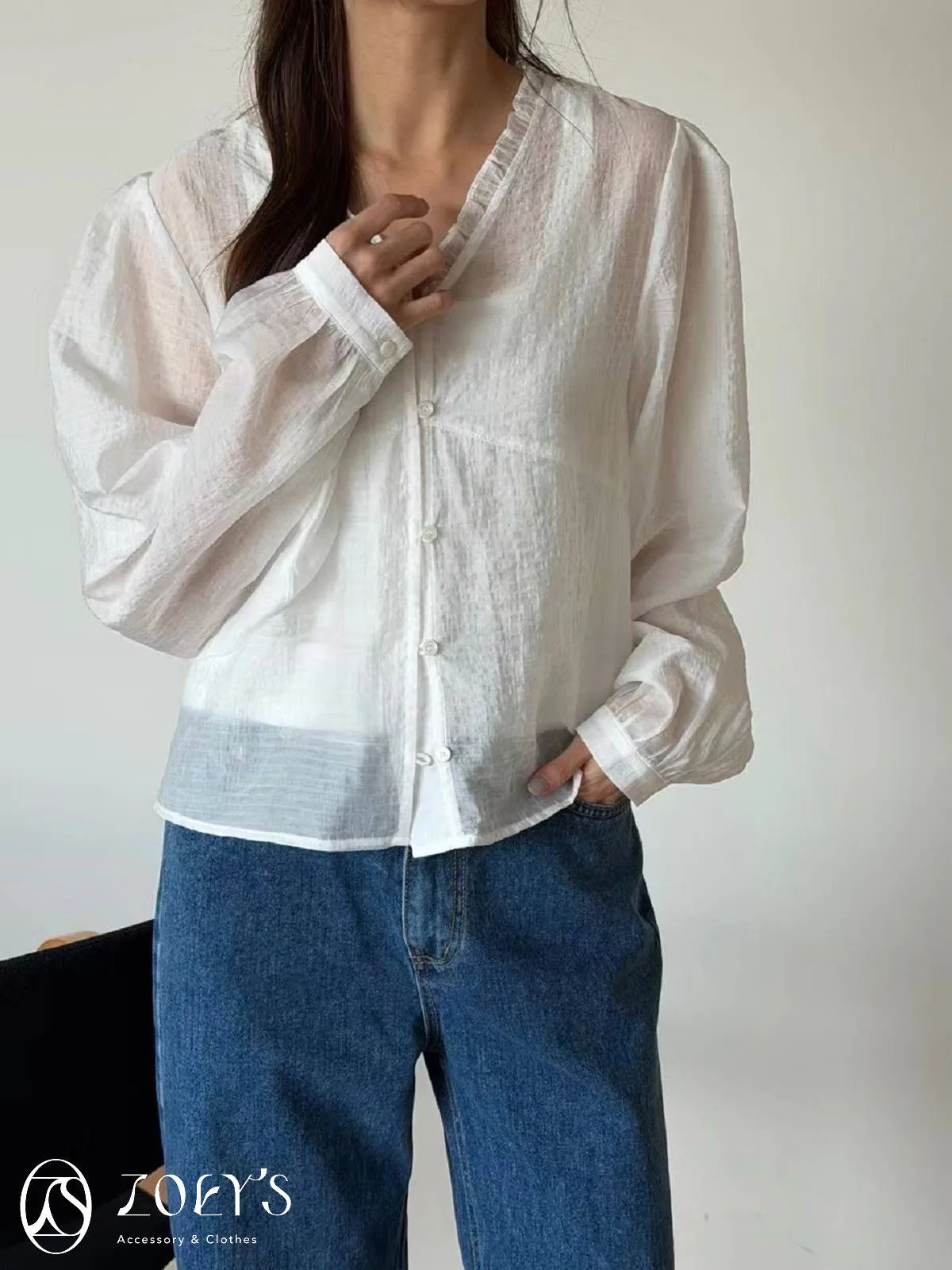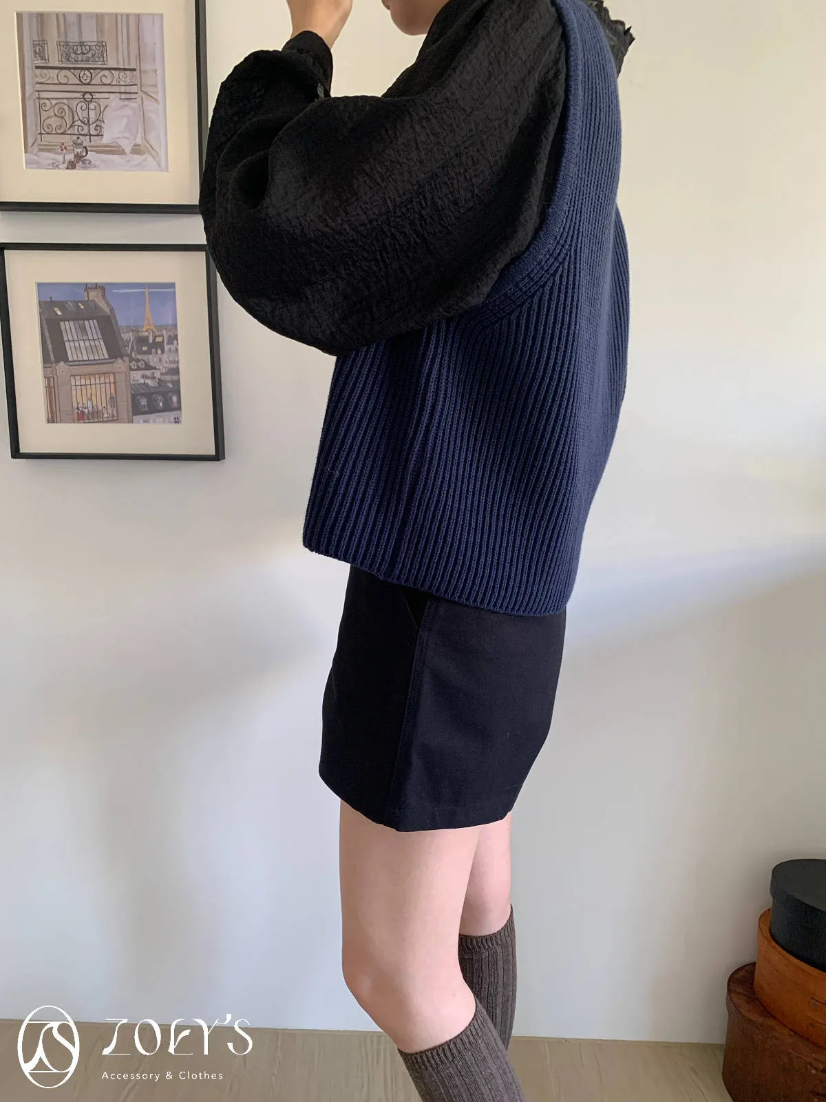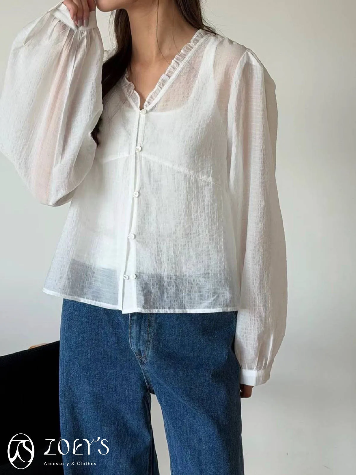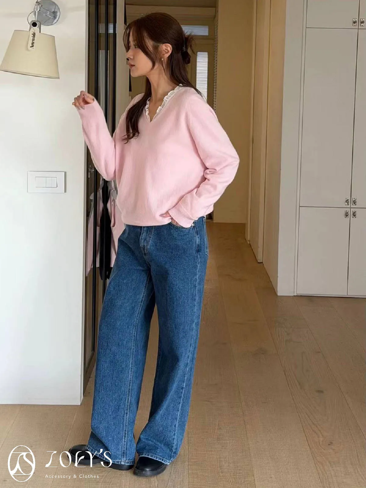 微日系V領抓褶花邊,黑白兩色穿起來風格截然不同