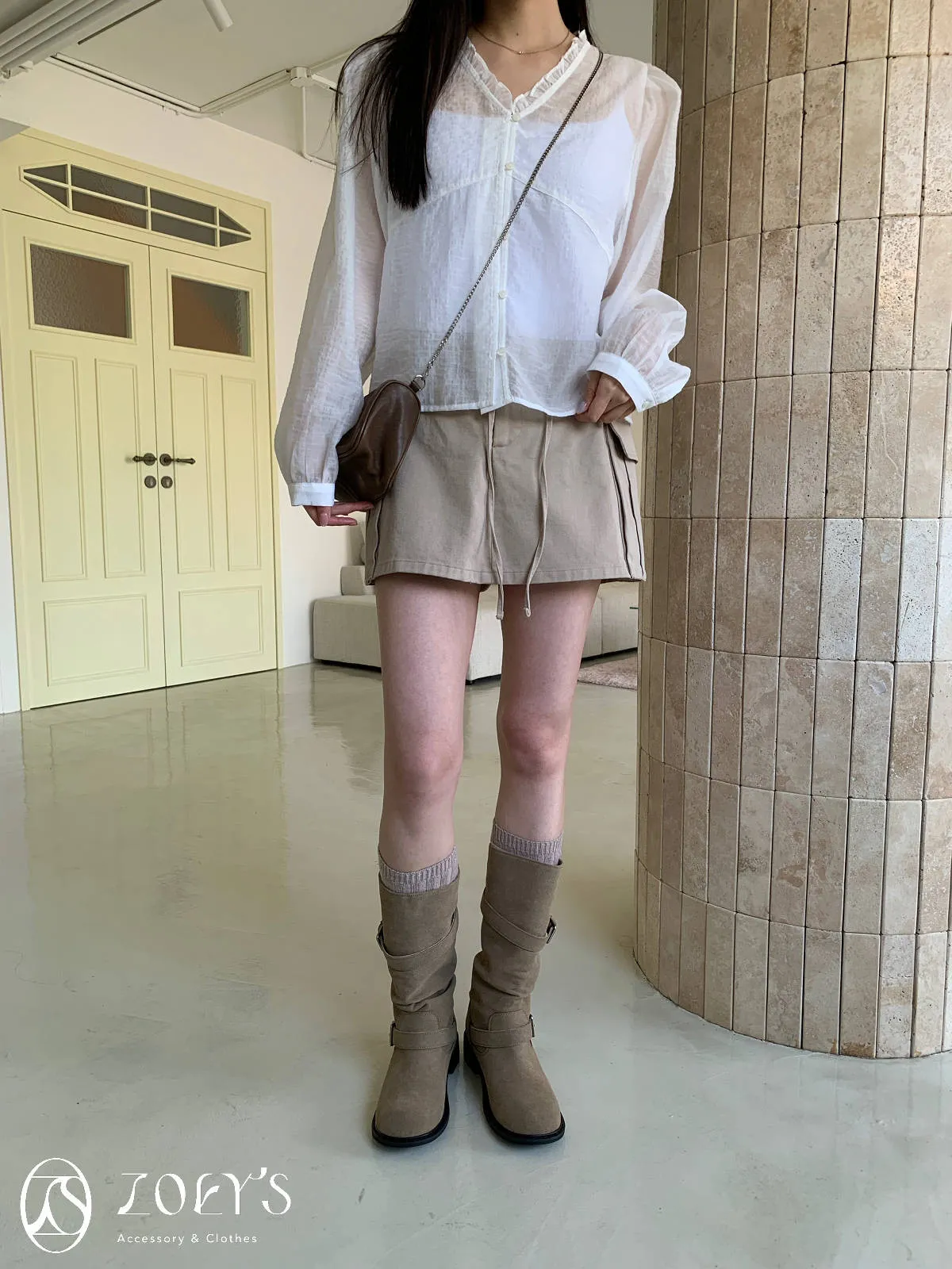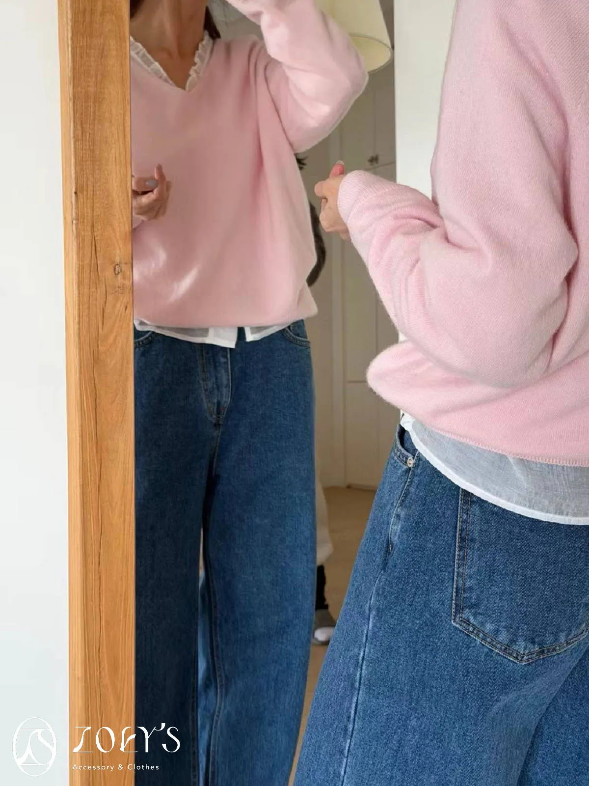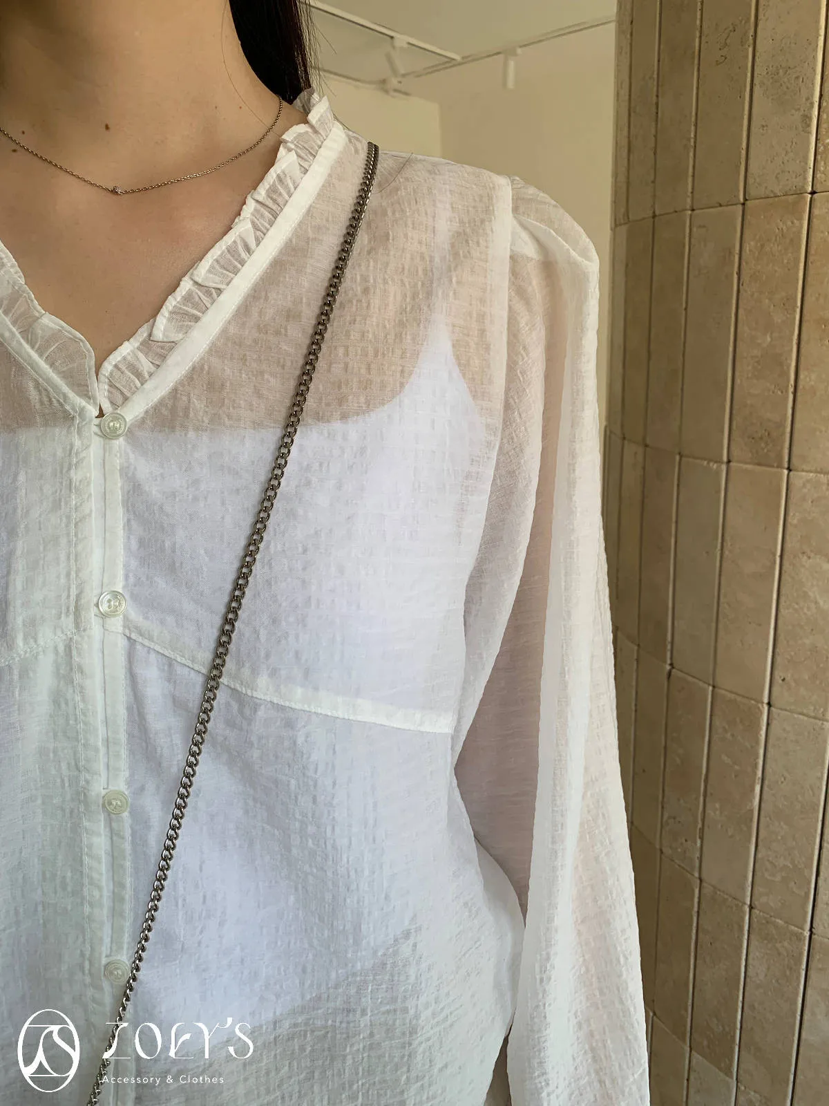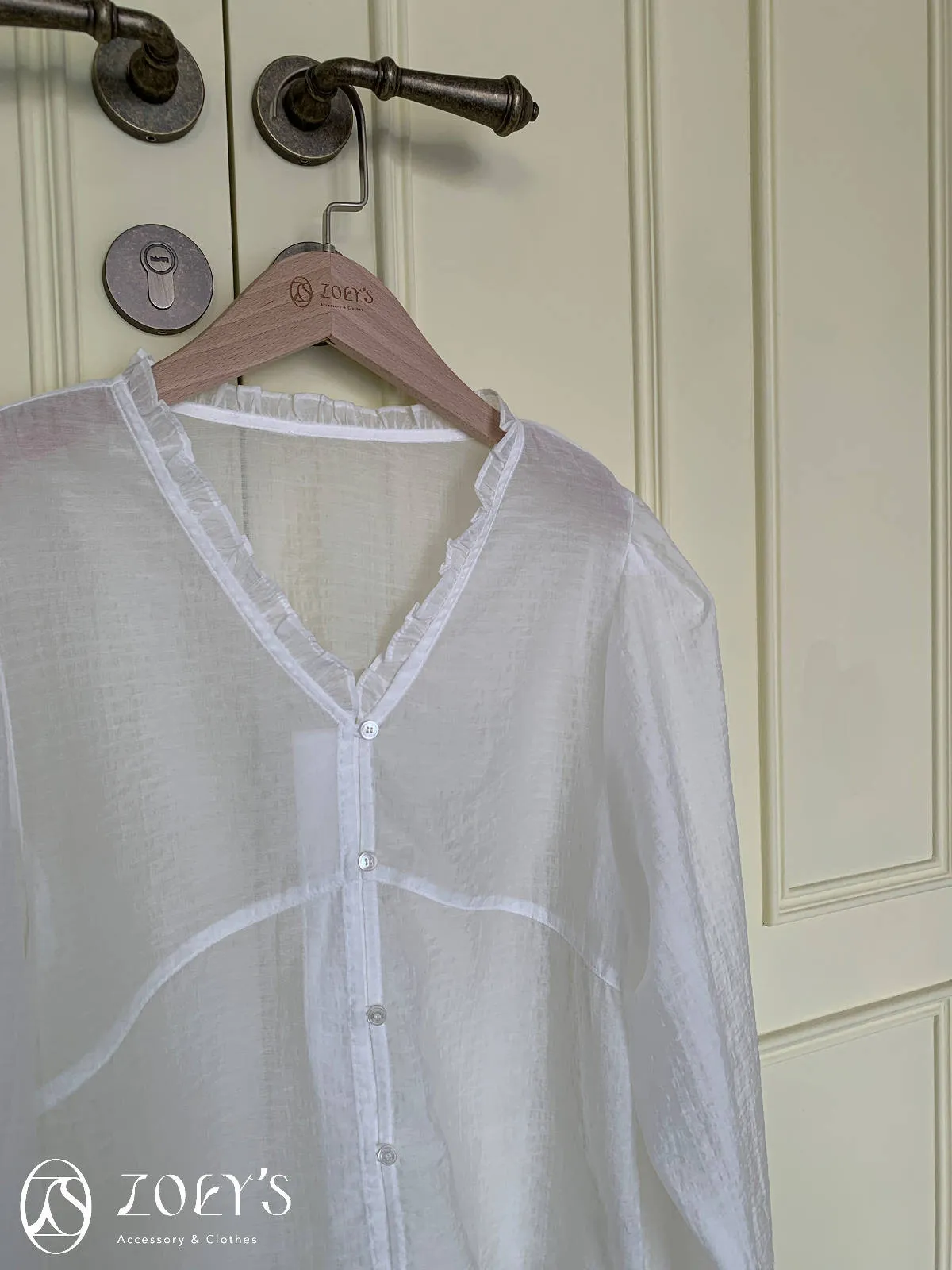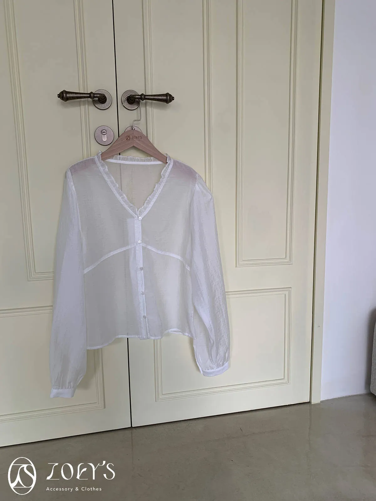 微日系V領抓褶花邊,黑白兩色穿起來風格截然不同
