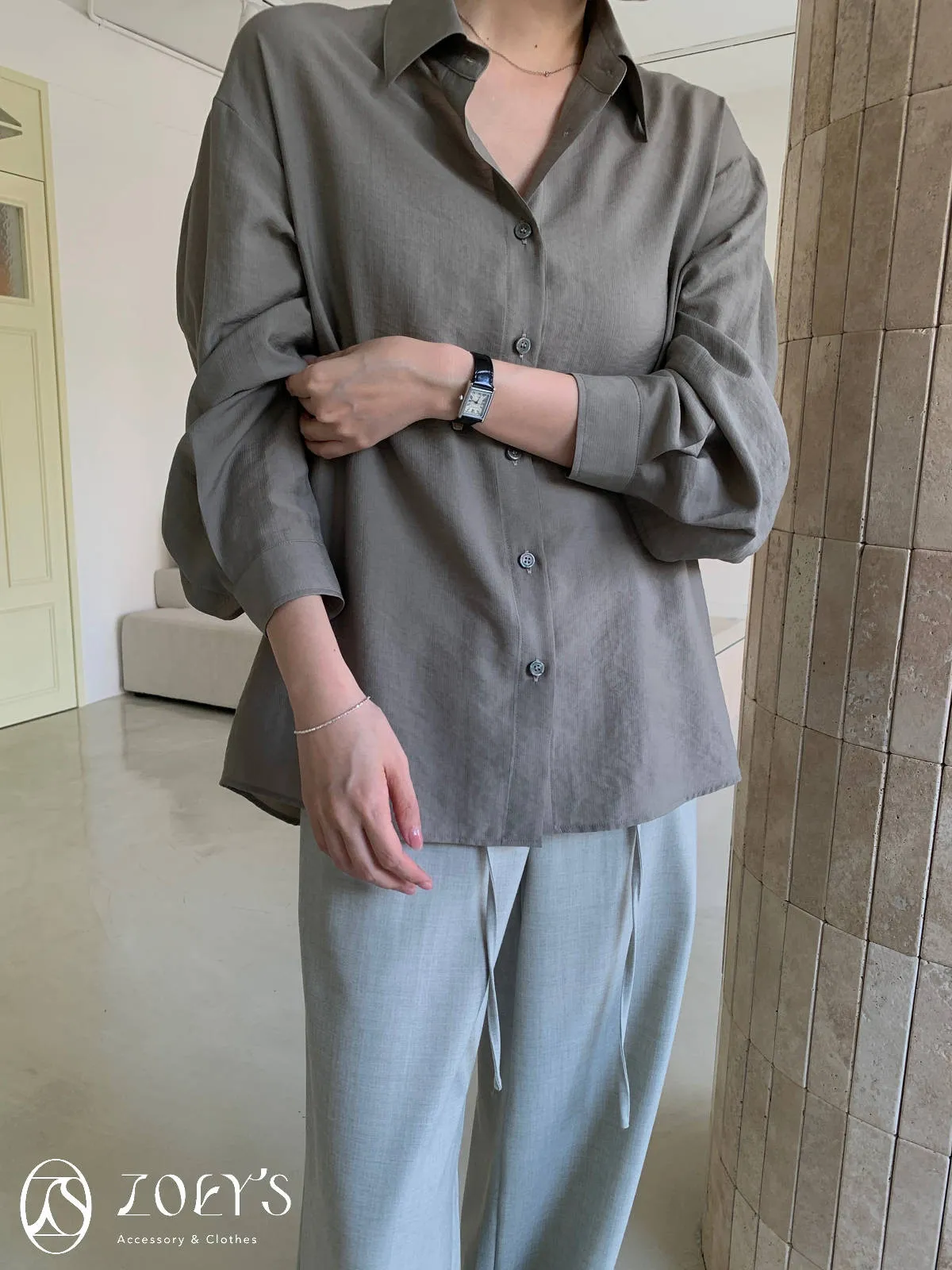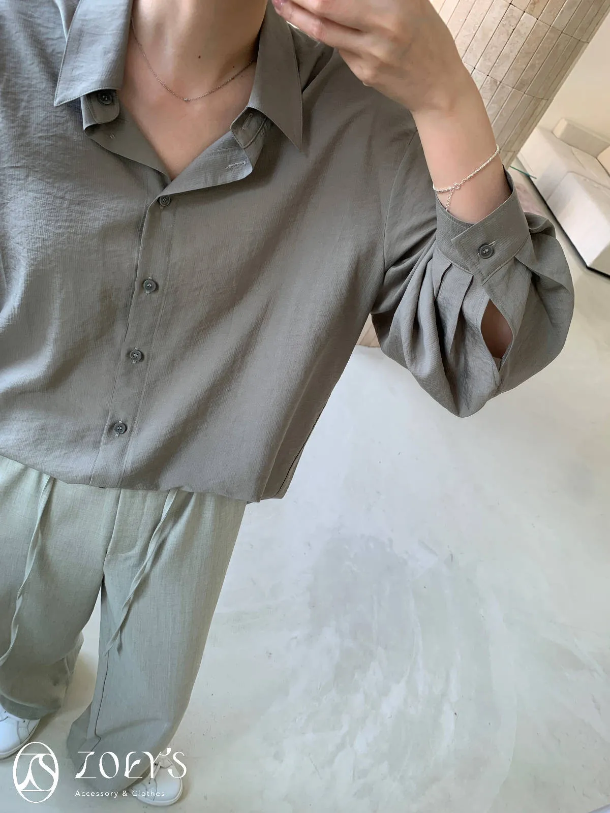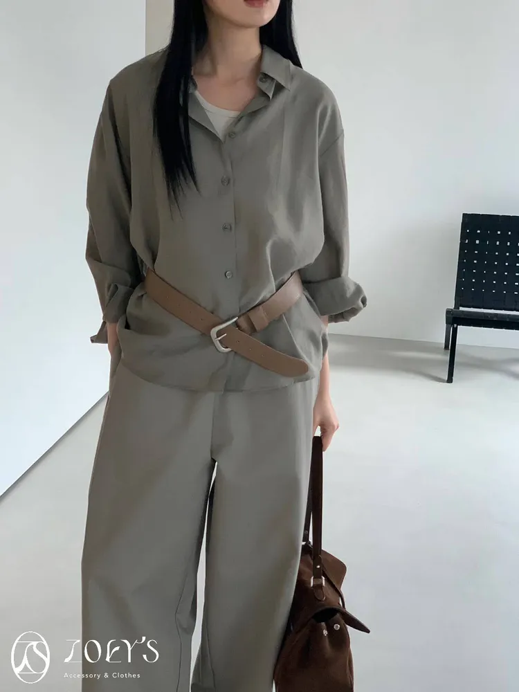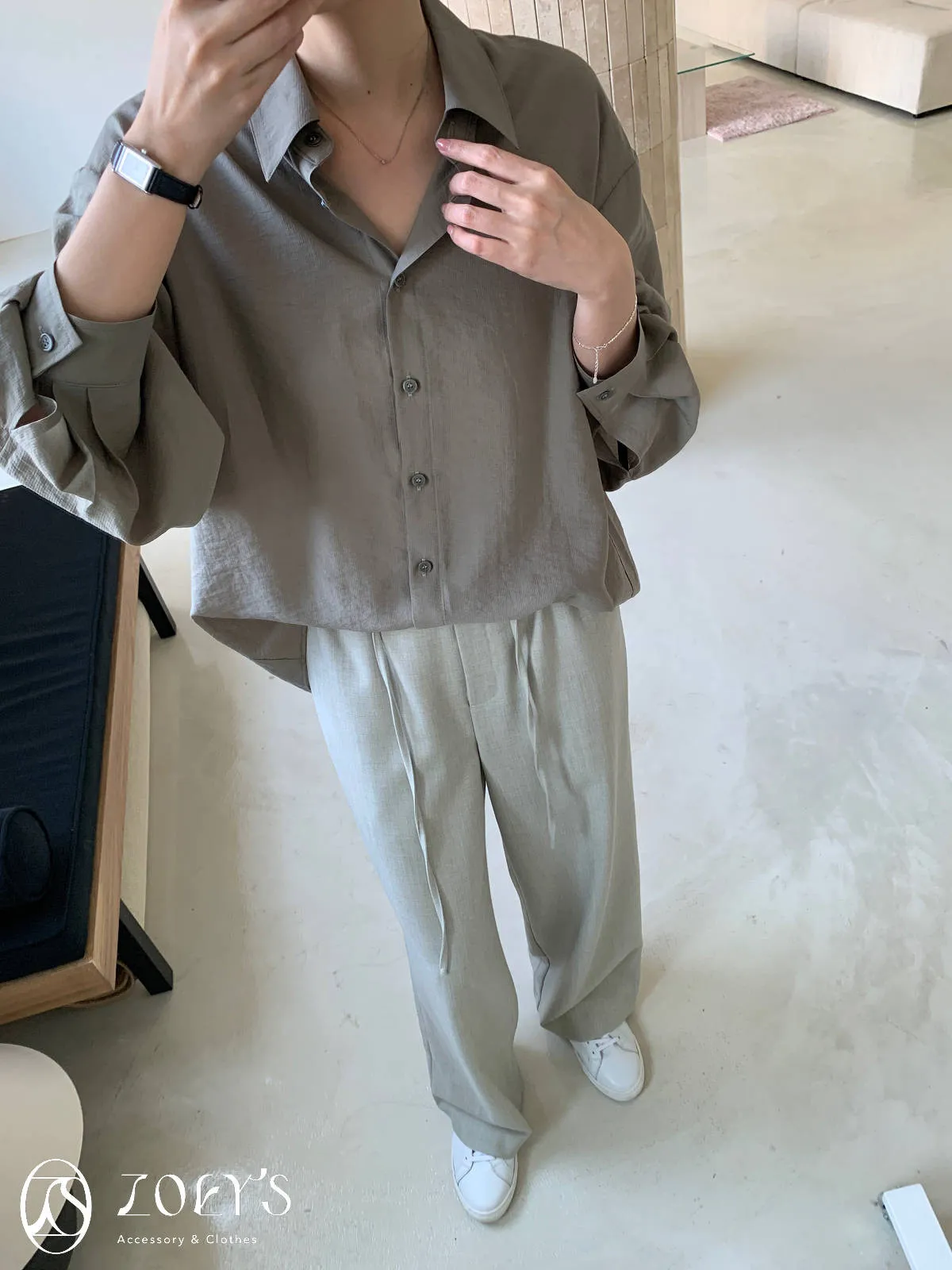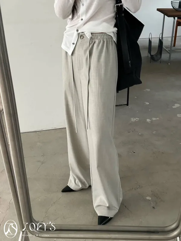 正韓 可正式可休閒綁繩寬版西裝褲 灰/杏灰