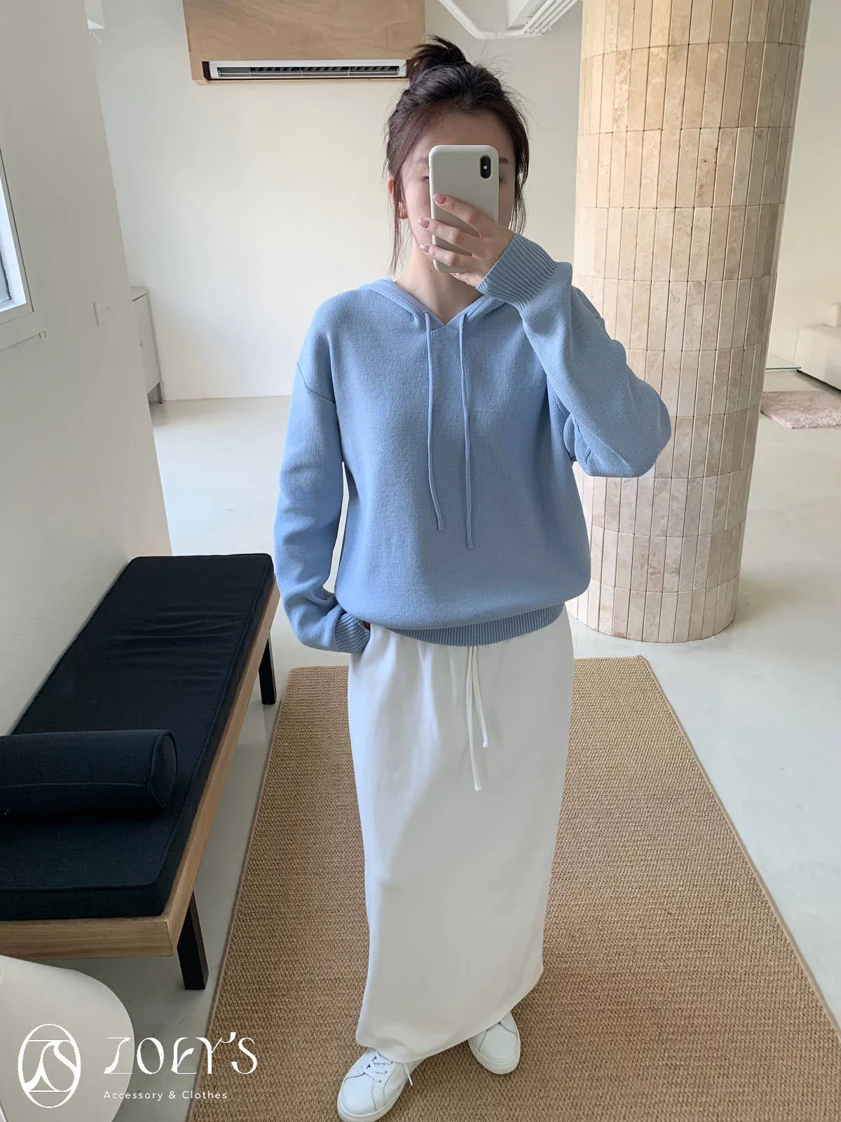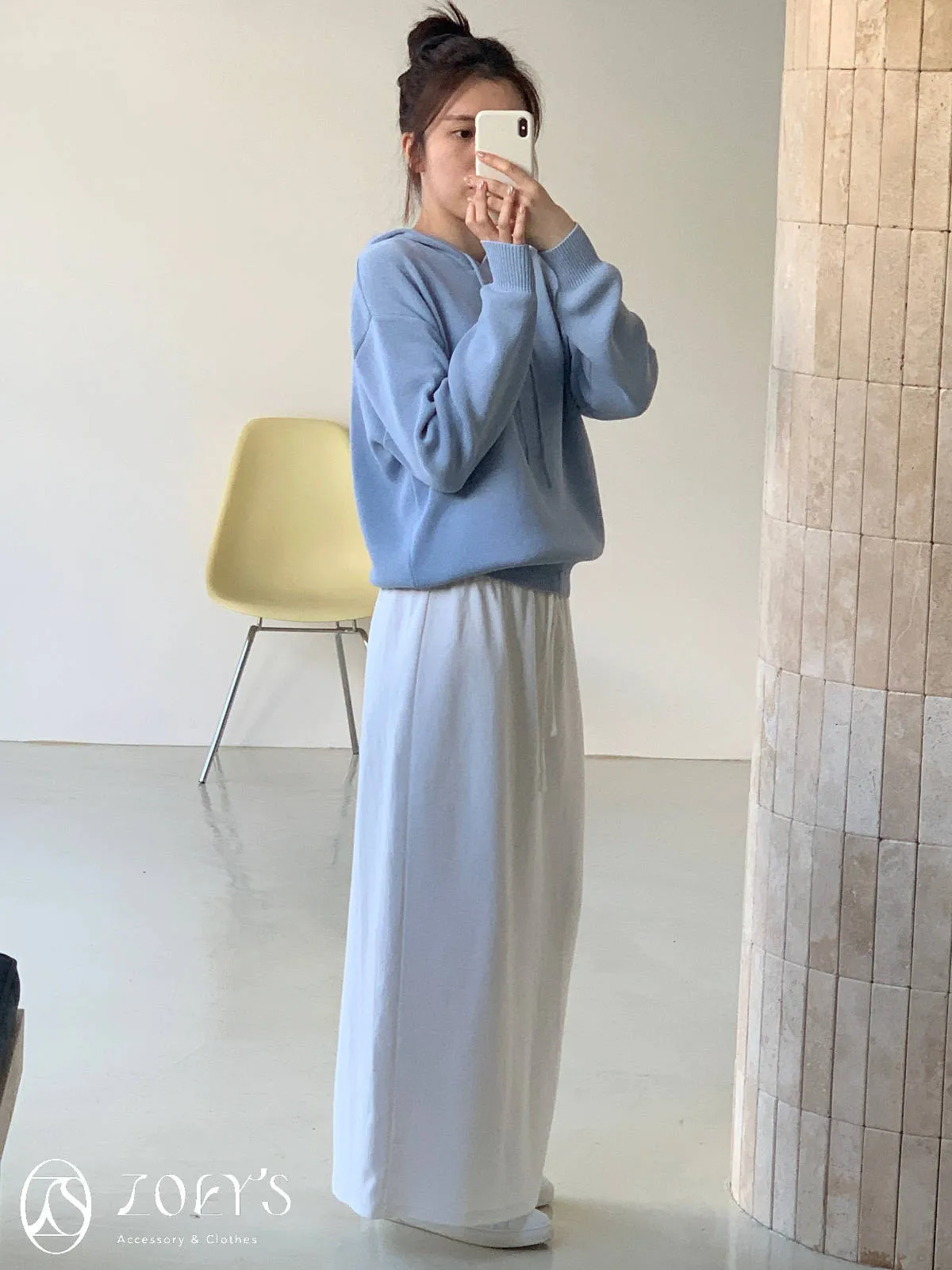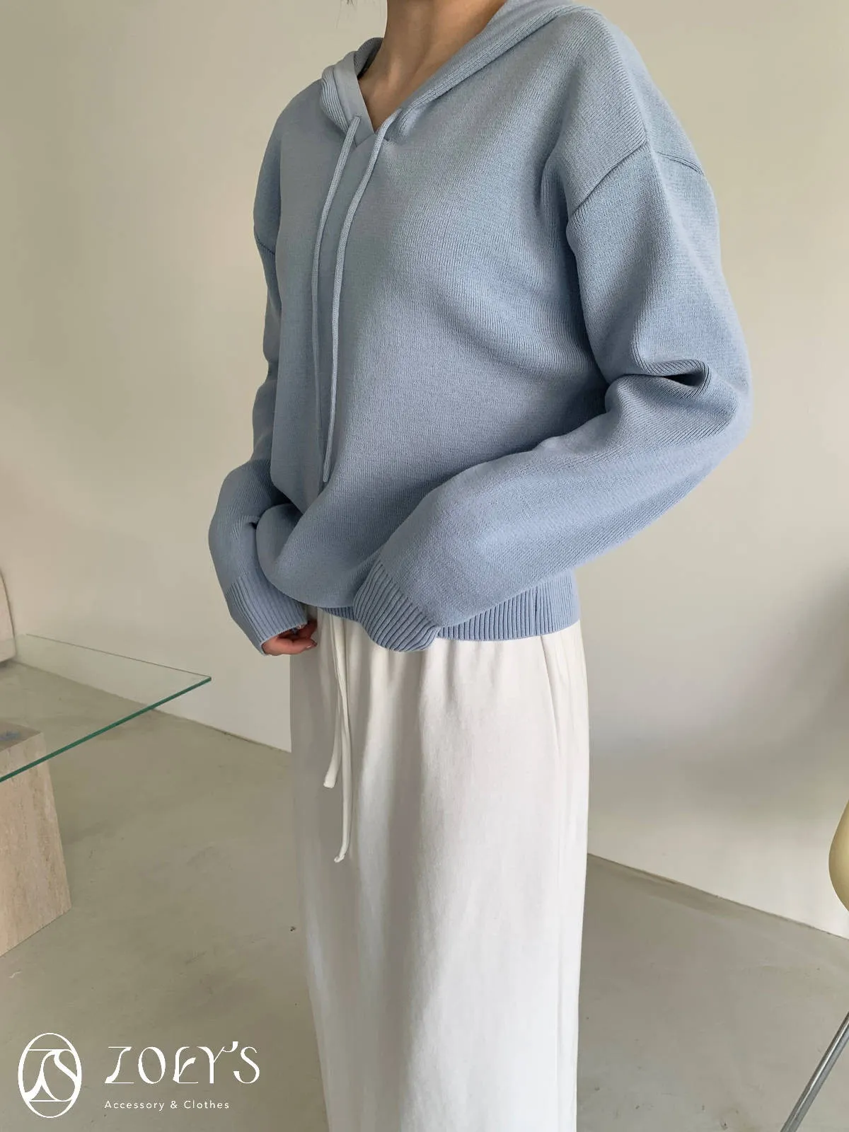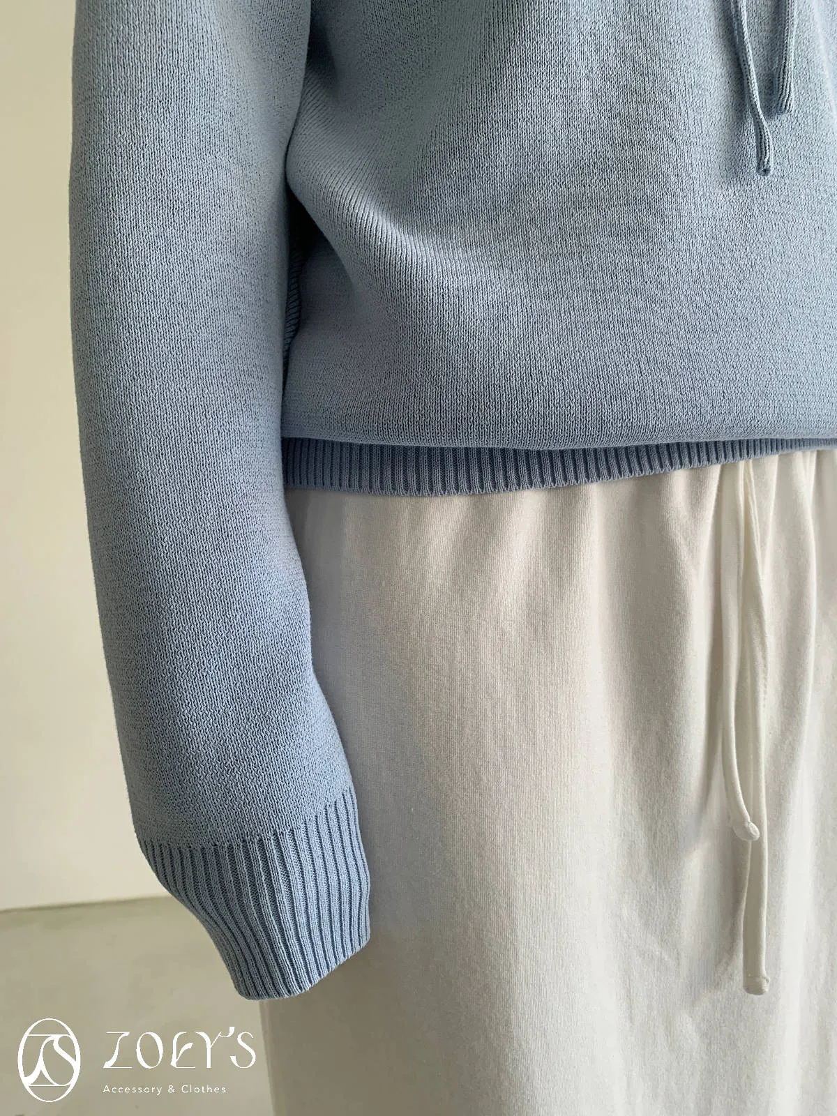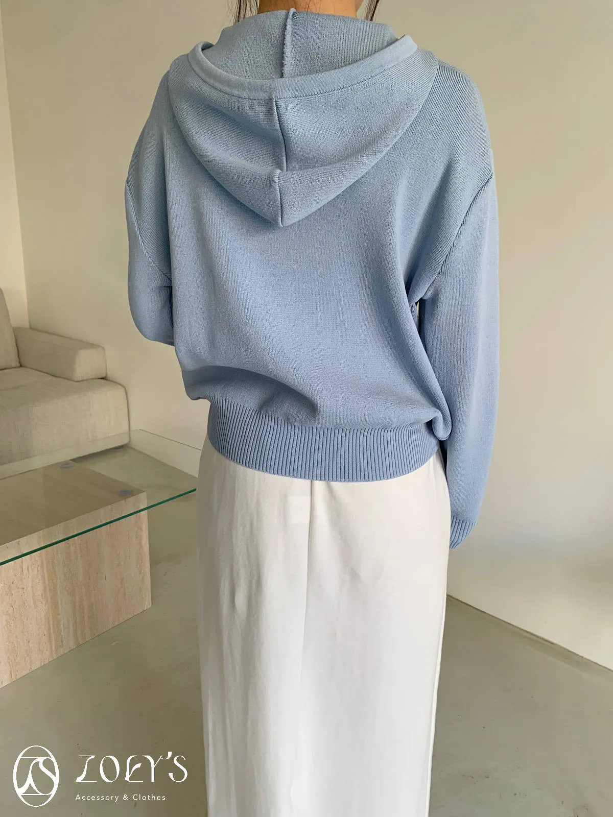 正韓 高質感薄織連帽上衣 藍/白