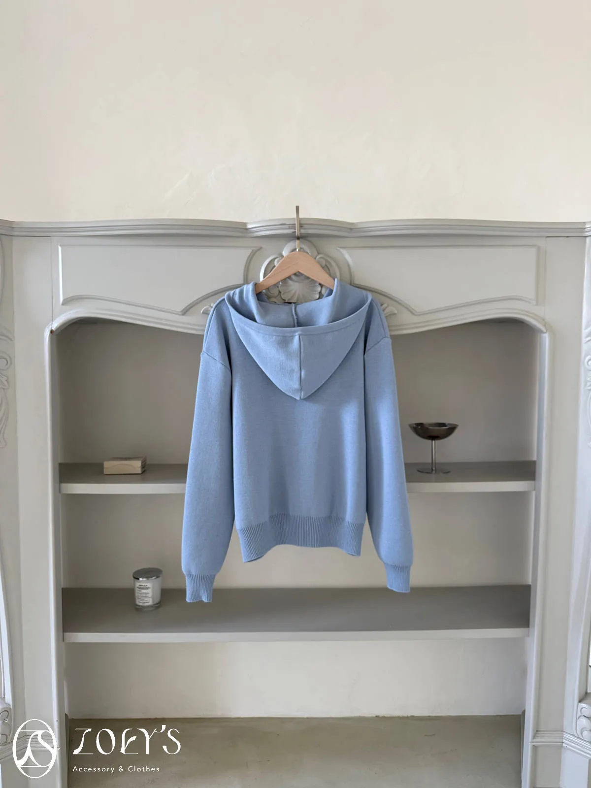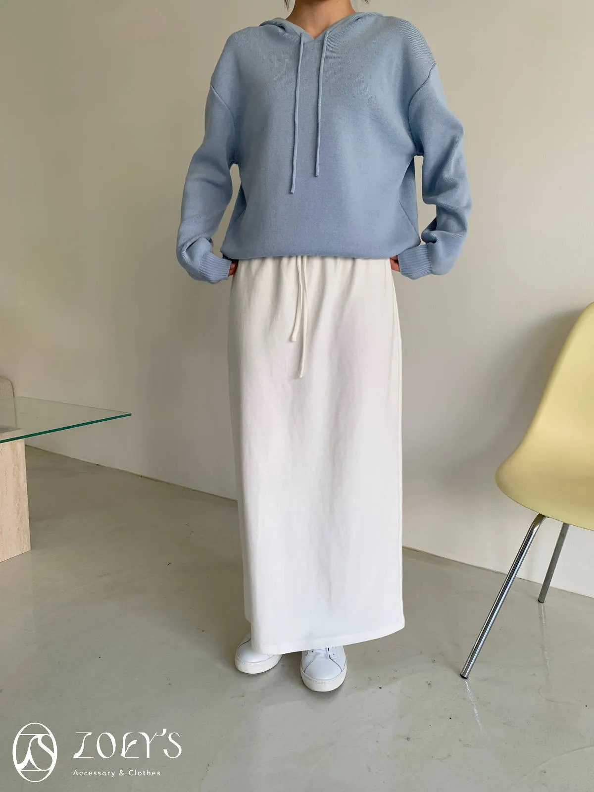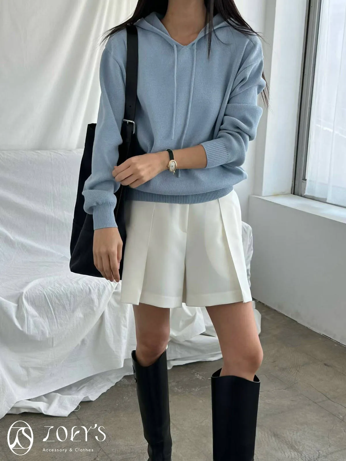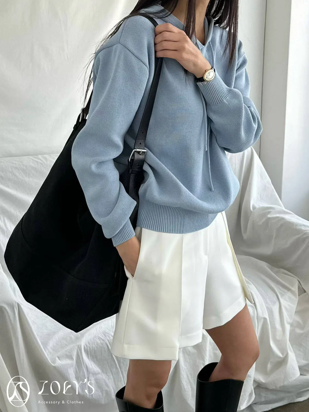 正韓 高質感薄織連帽上衣 藍/白