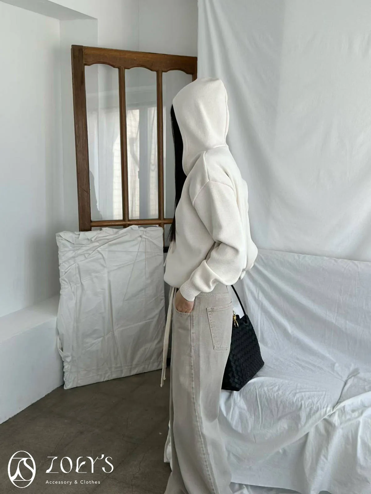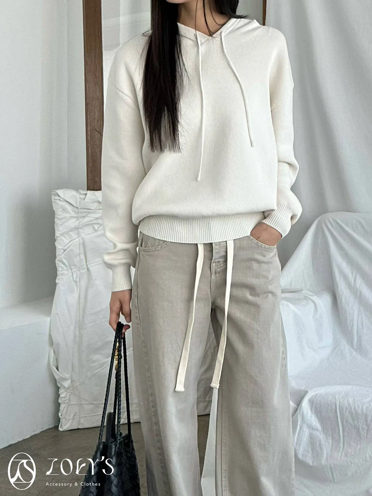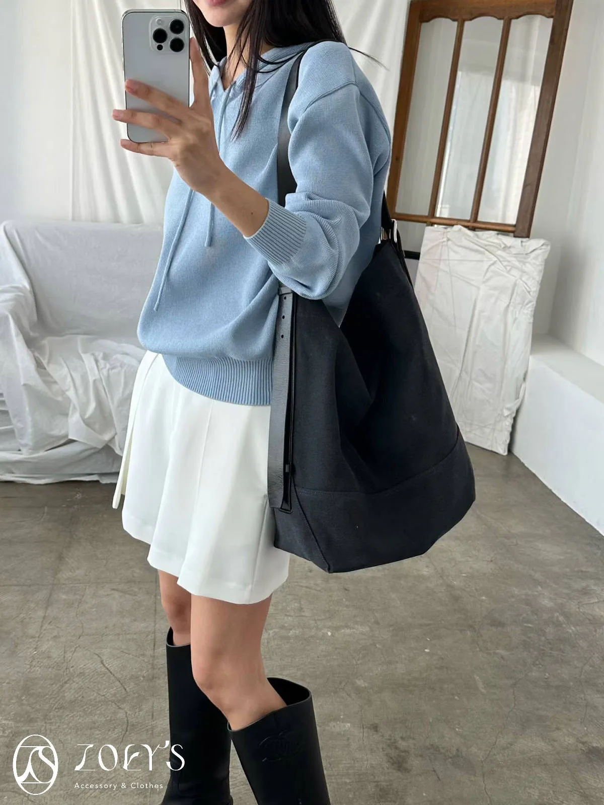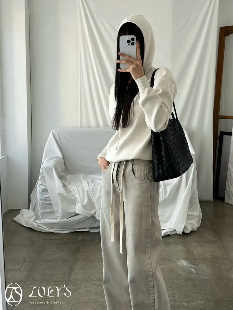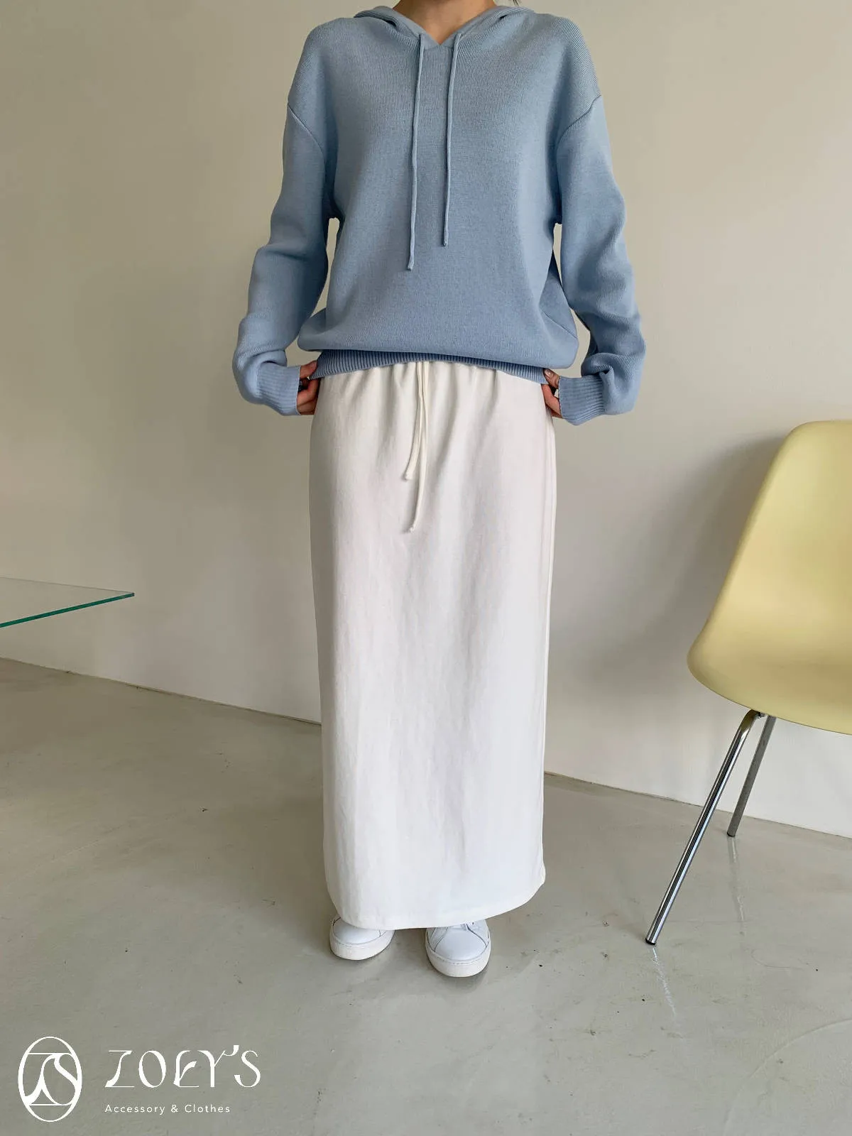 正韓 高質感薄織連帽上衣 藍/白