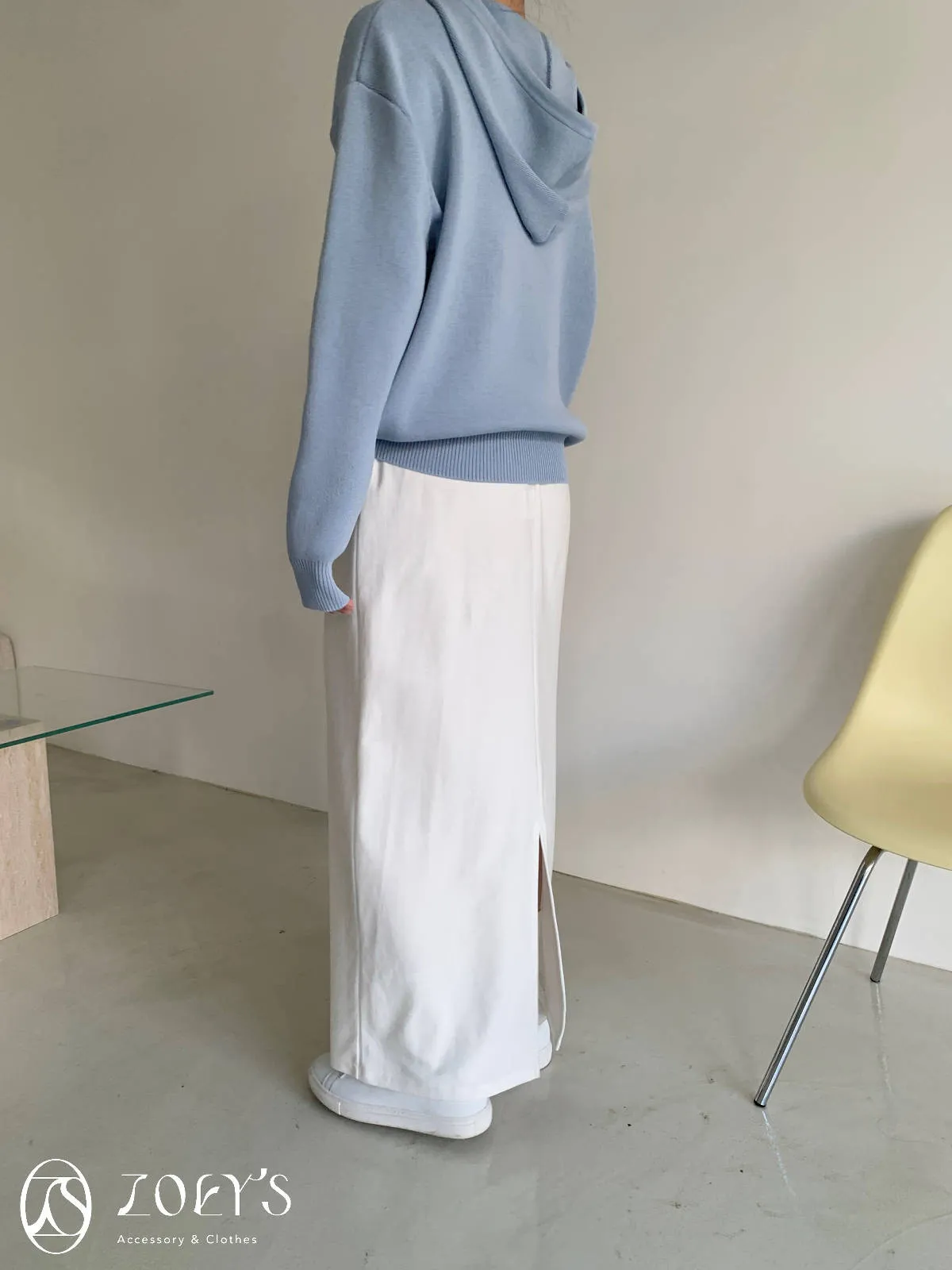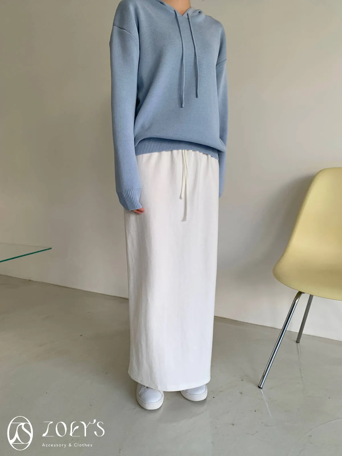 正韓 顯瘦柔軟開衩棉長裙 黑/白/深灰/淺灰