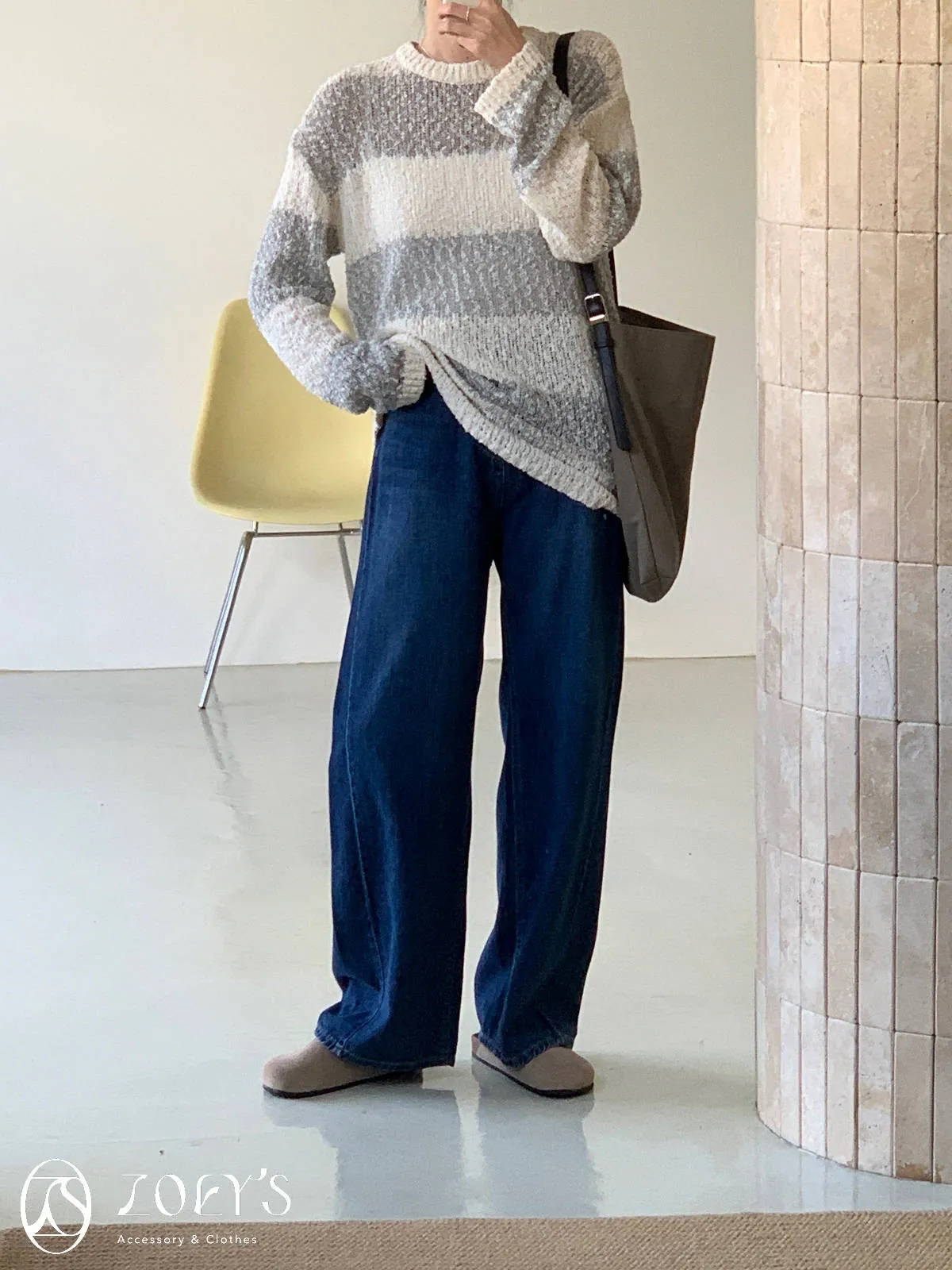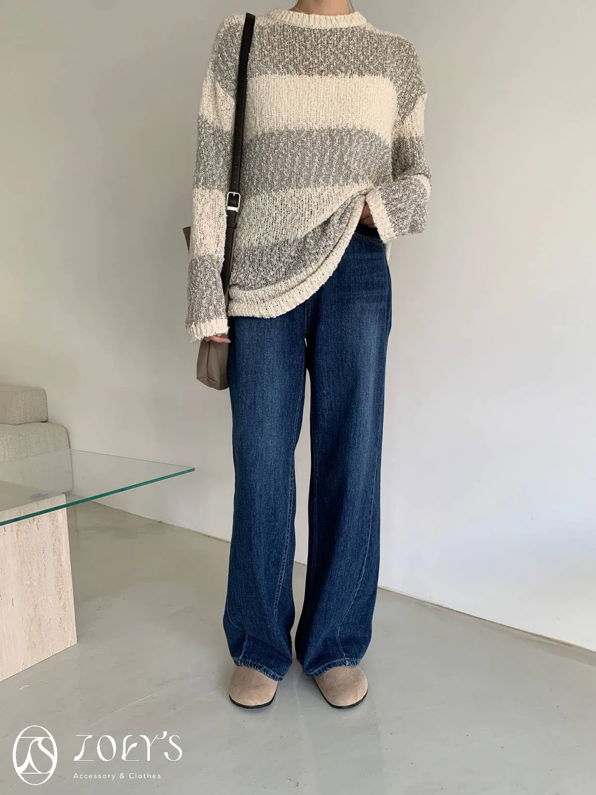 正韓 深藍刷色直筒小寬褲 S-L