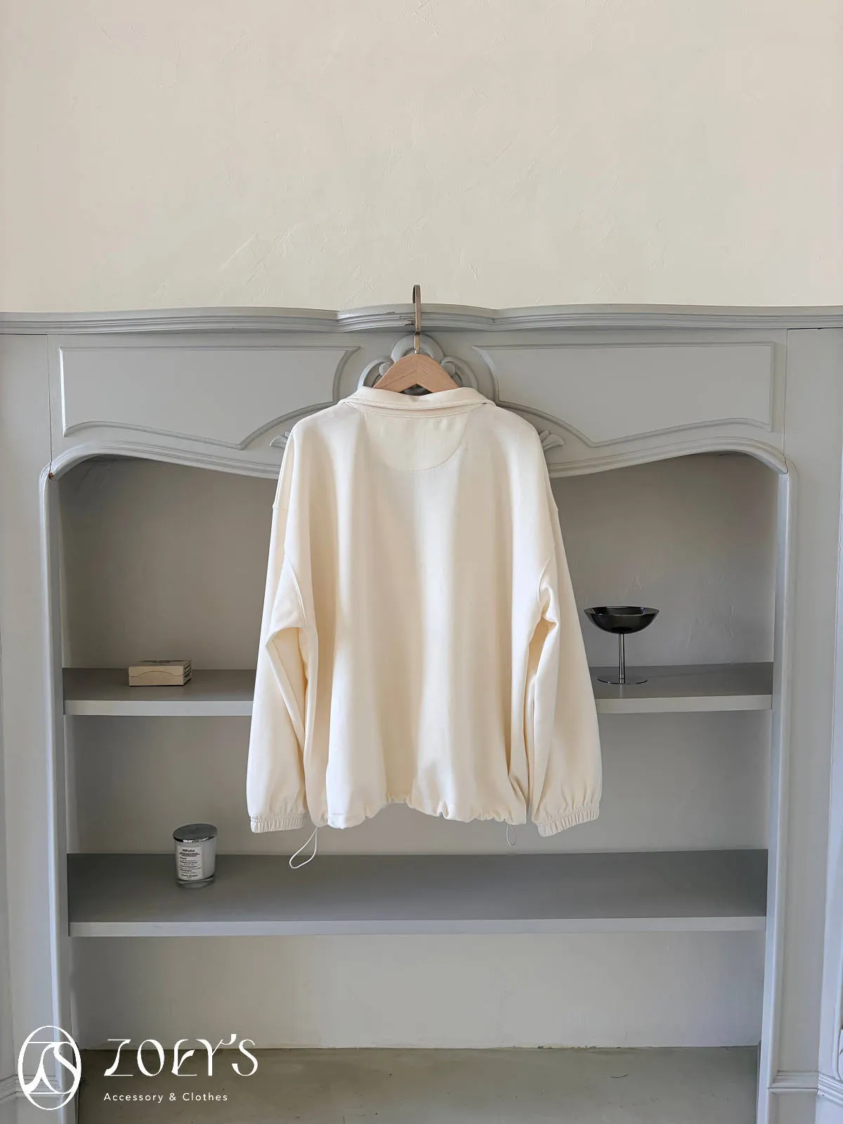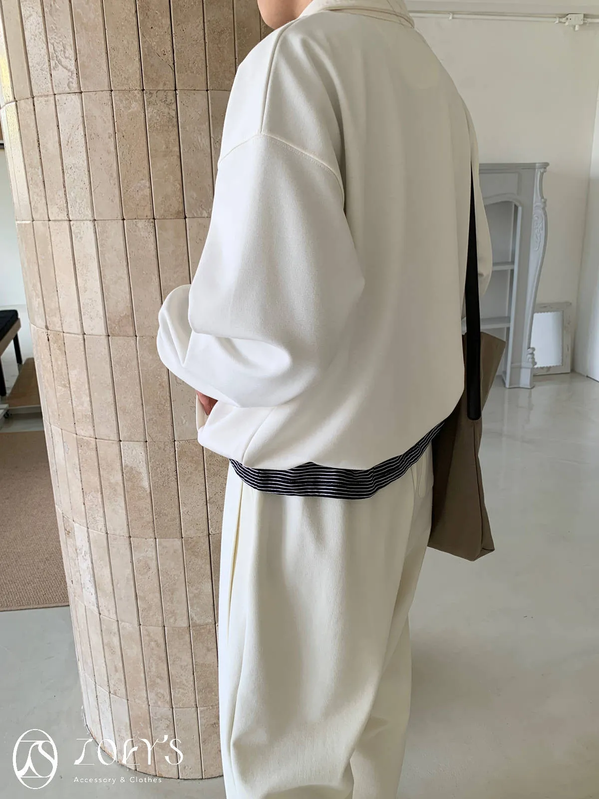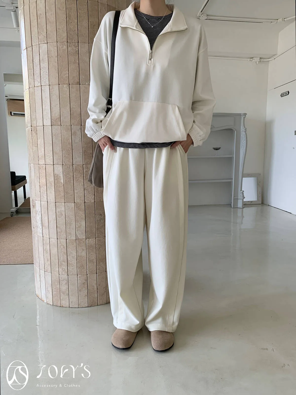 正韓 拉鍊立領滑棉大學T 灰/白