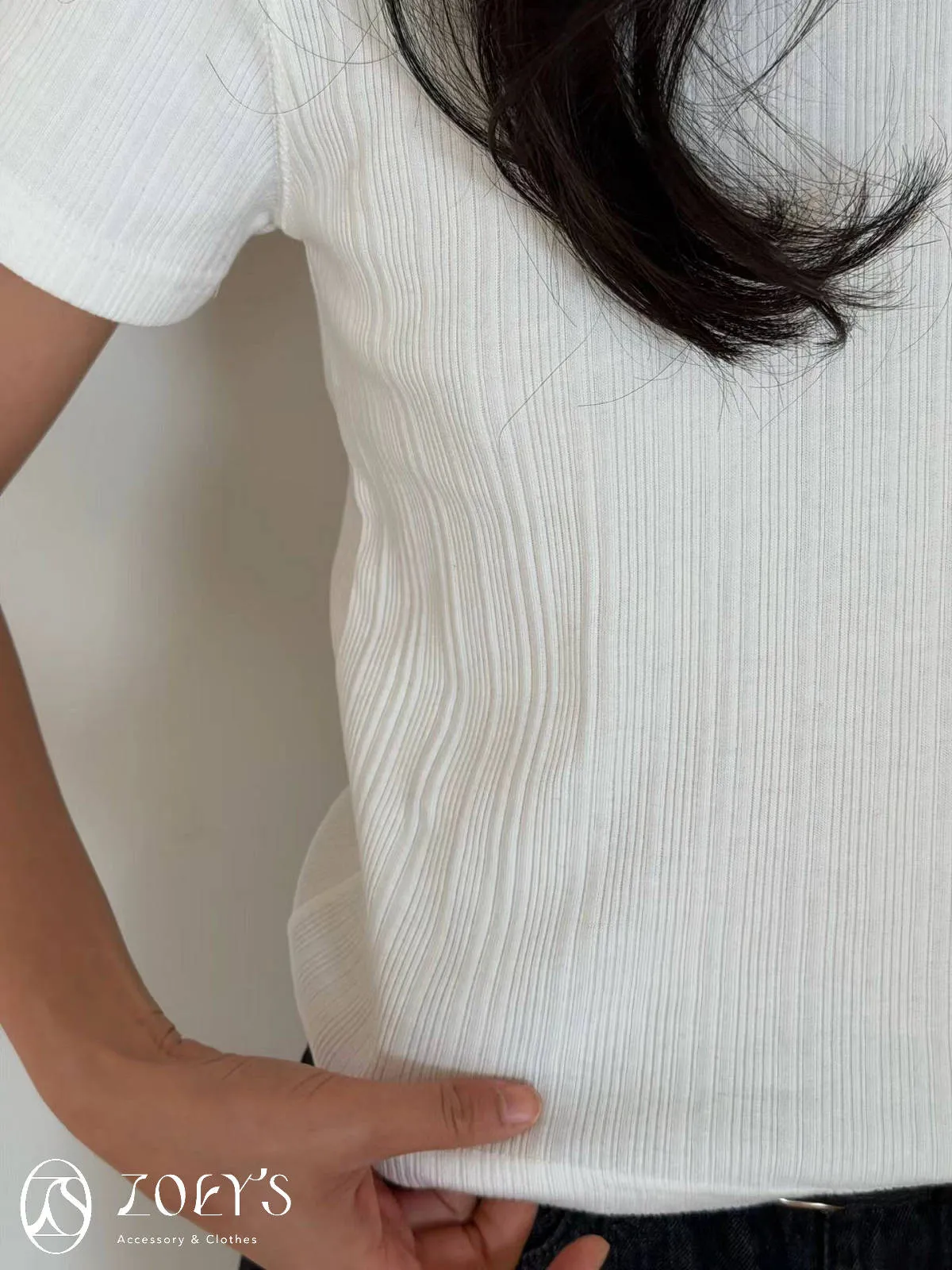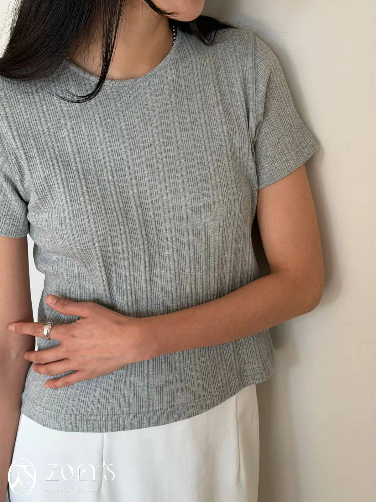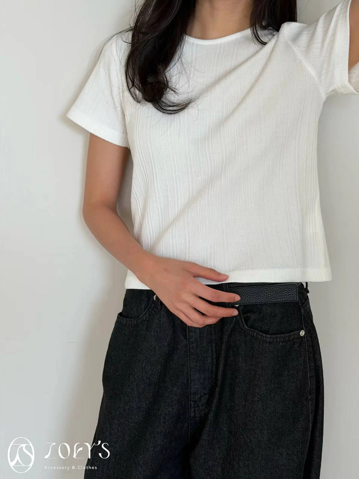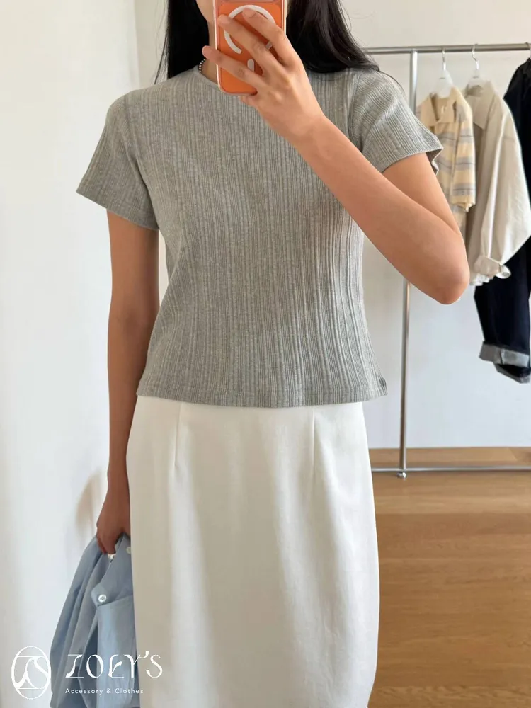 正韓 間距細直紋微短襬上衣 黑/白/灰