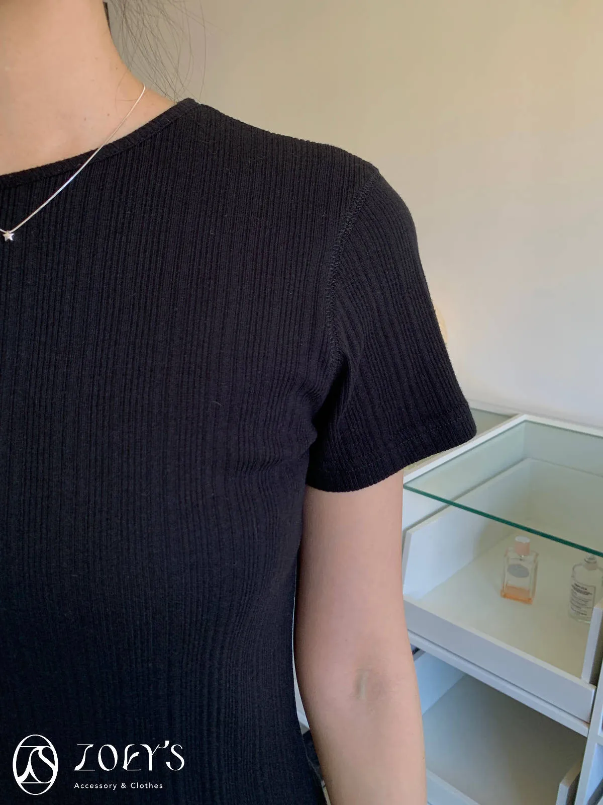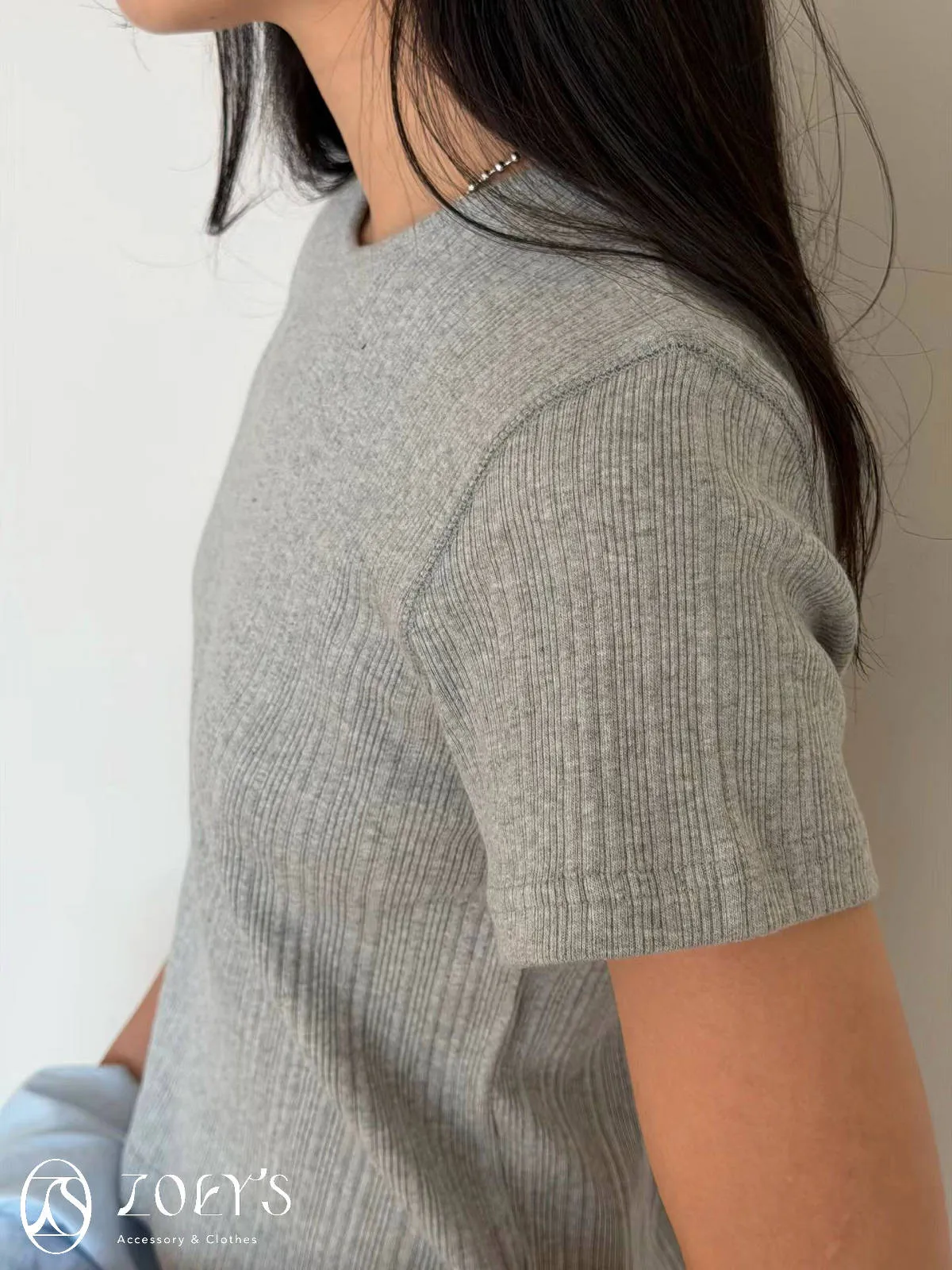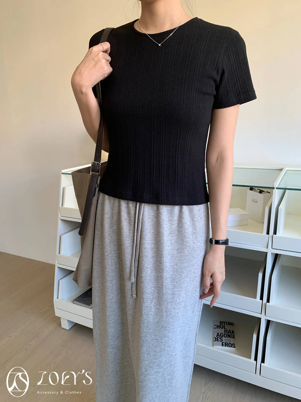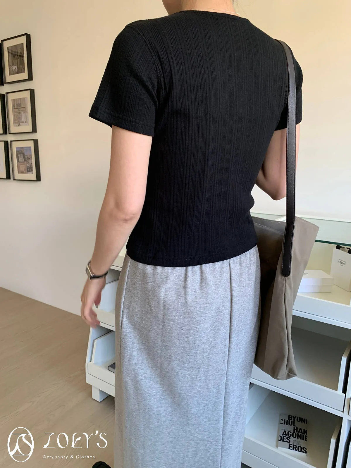 正韓 間距細直紋微短襬上衣 黑/白/灰