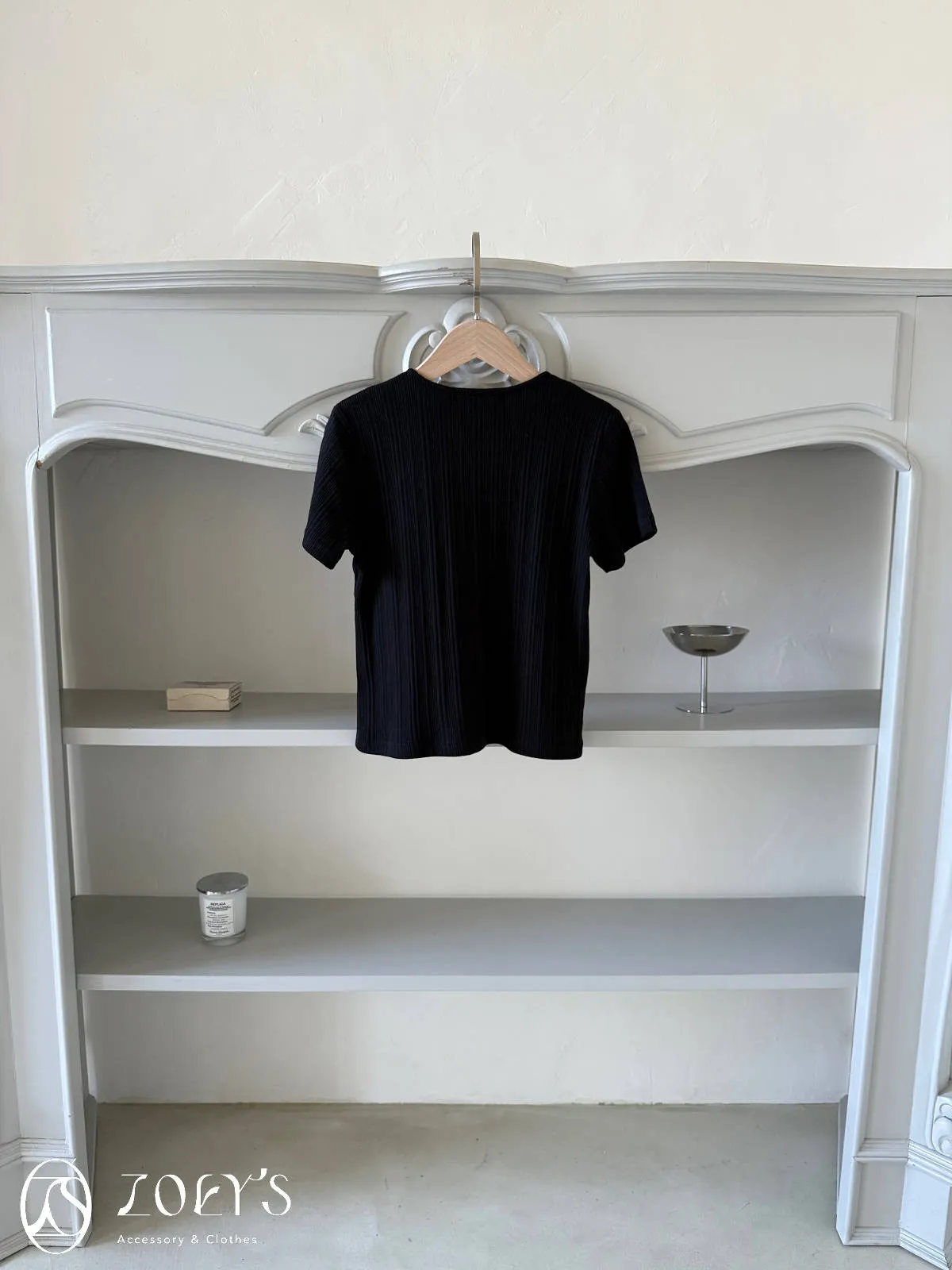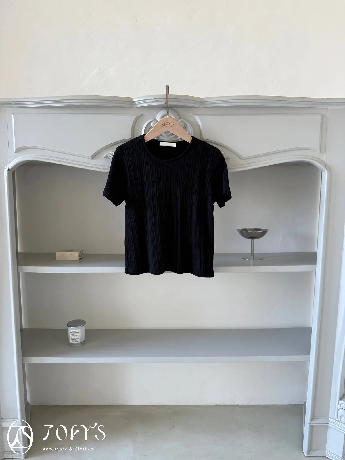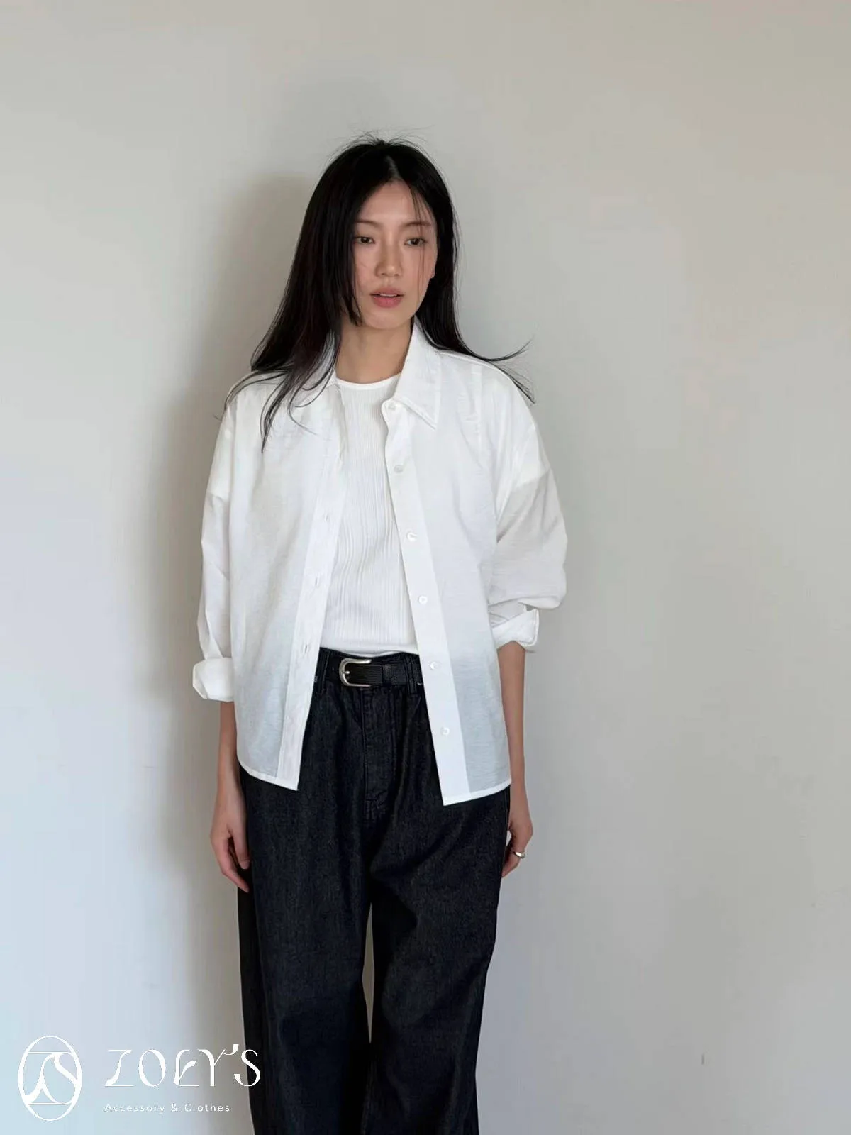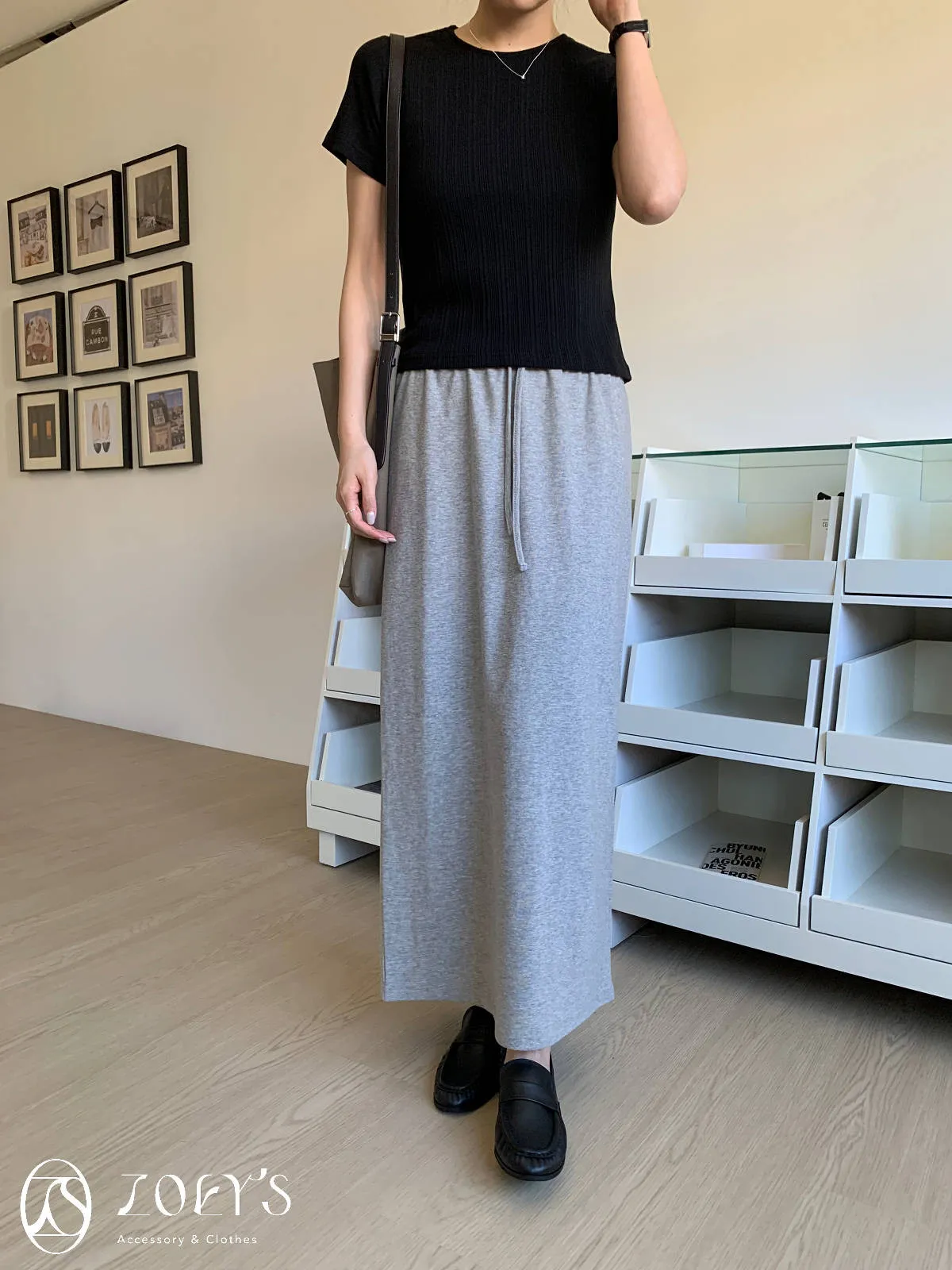 正韓 間距細直紋微短襬上衣 黑/白/灰