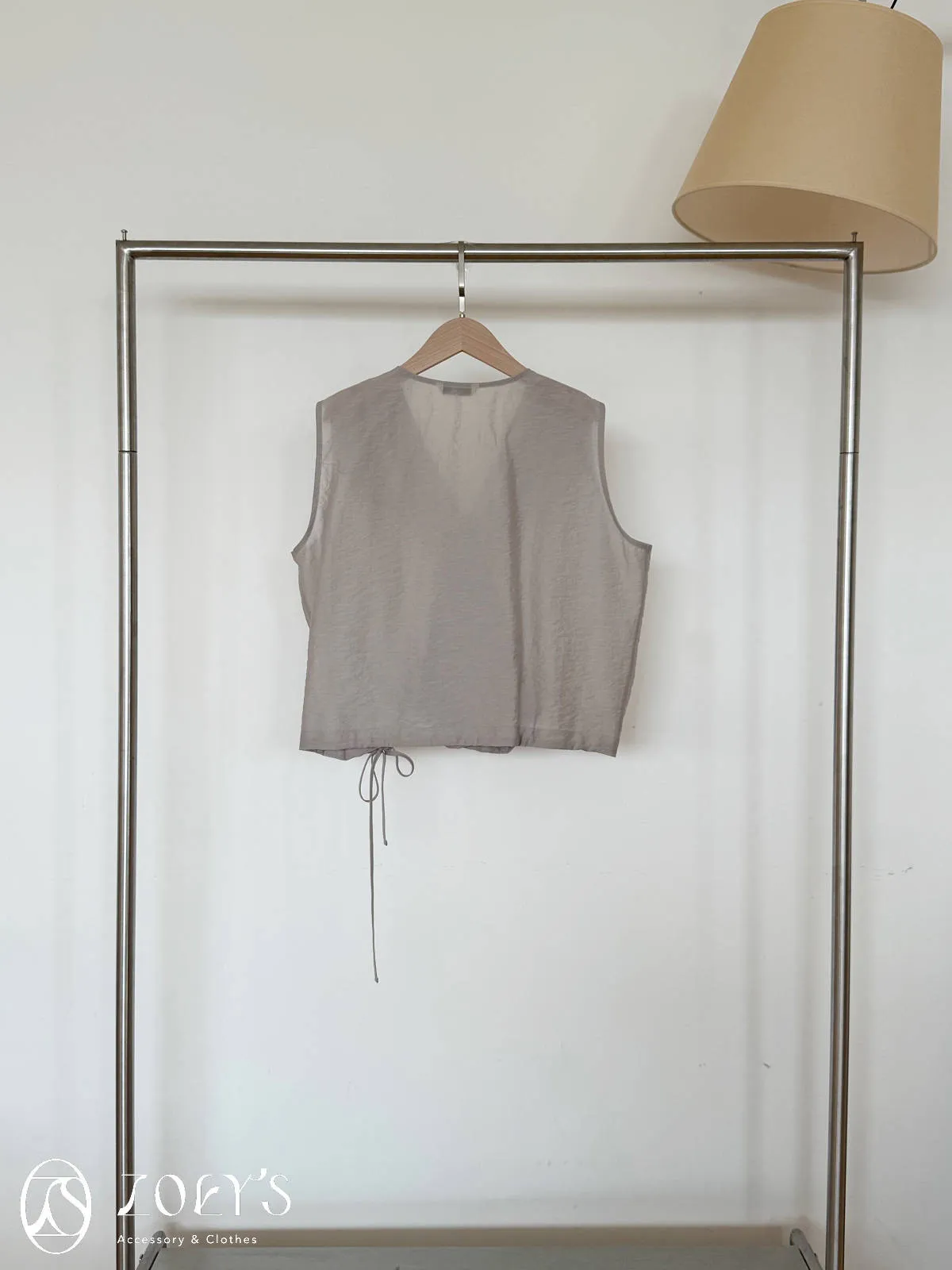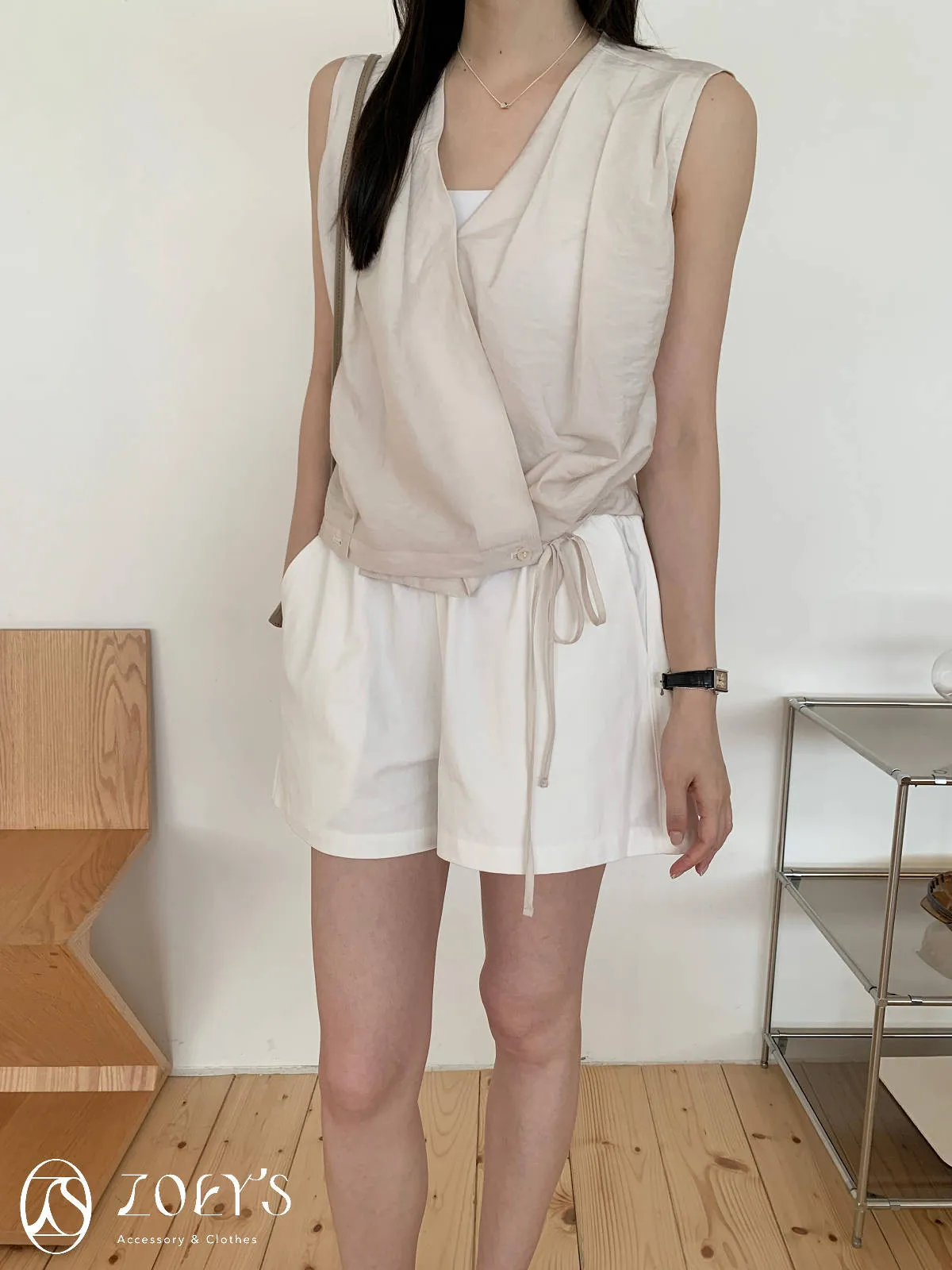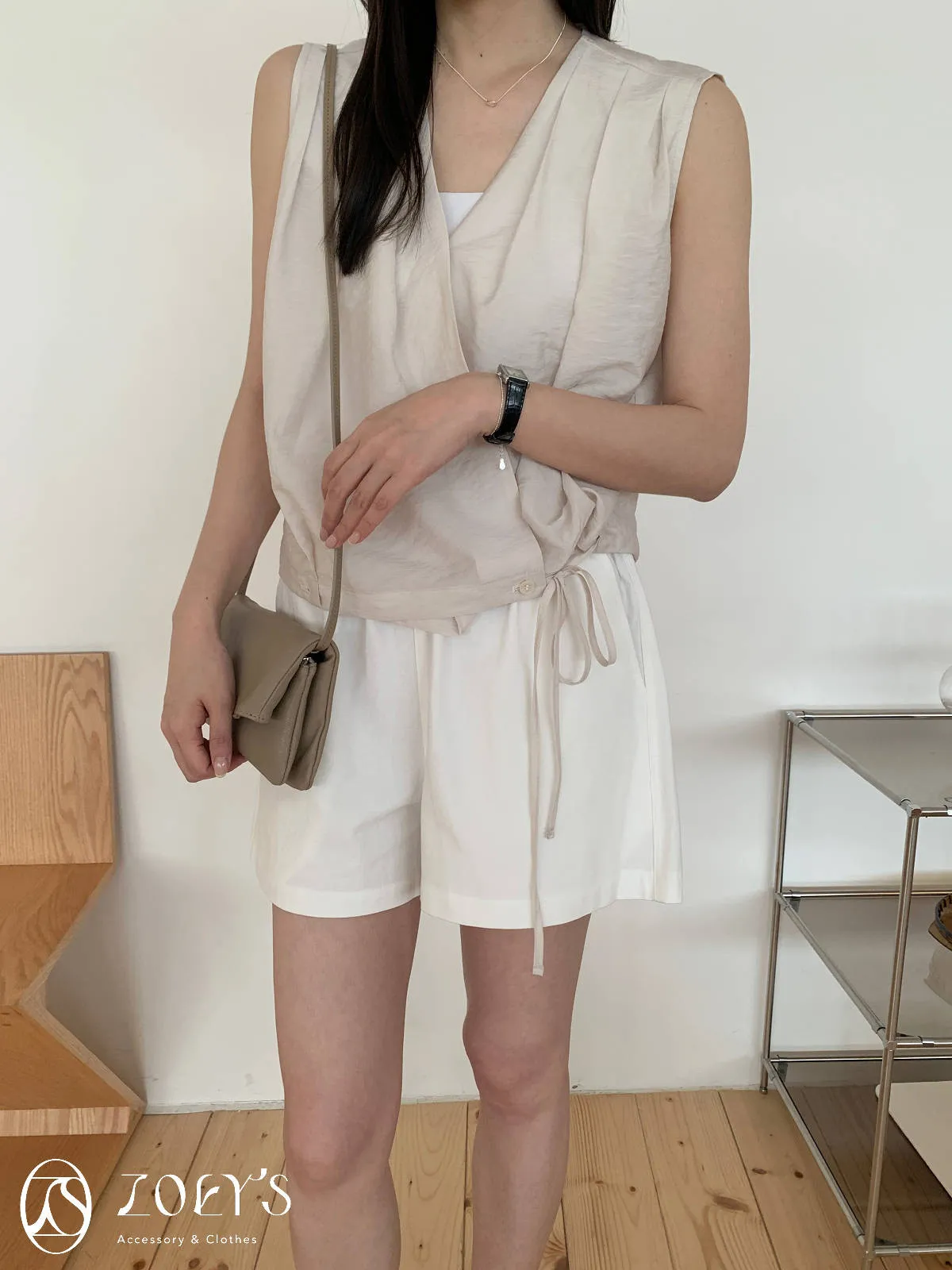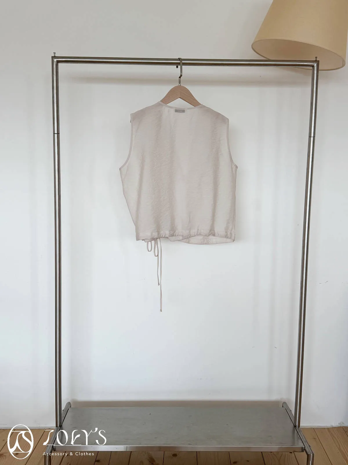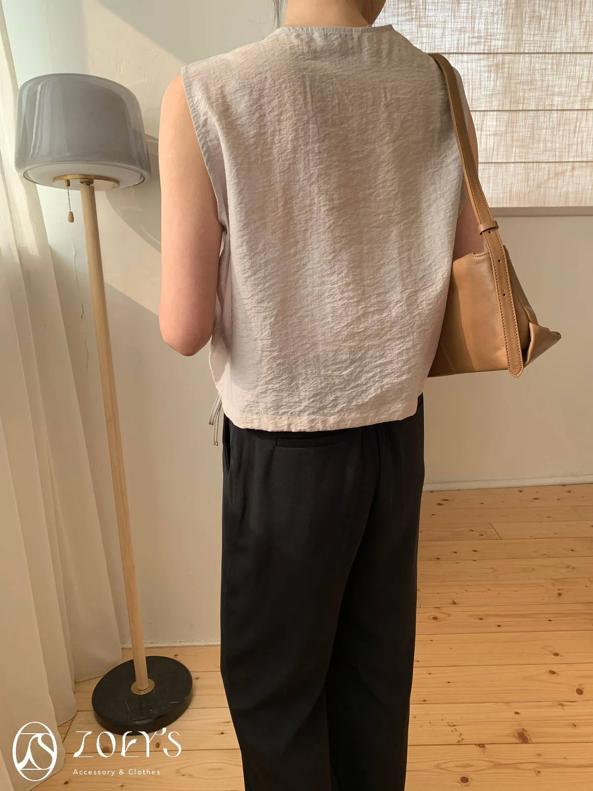 正韓 側扣綁繩無袖襯衫 裸米/灰