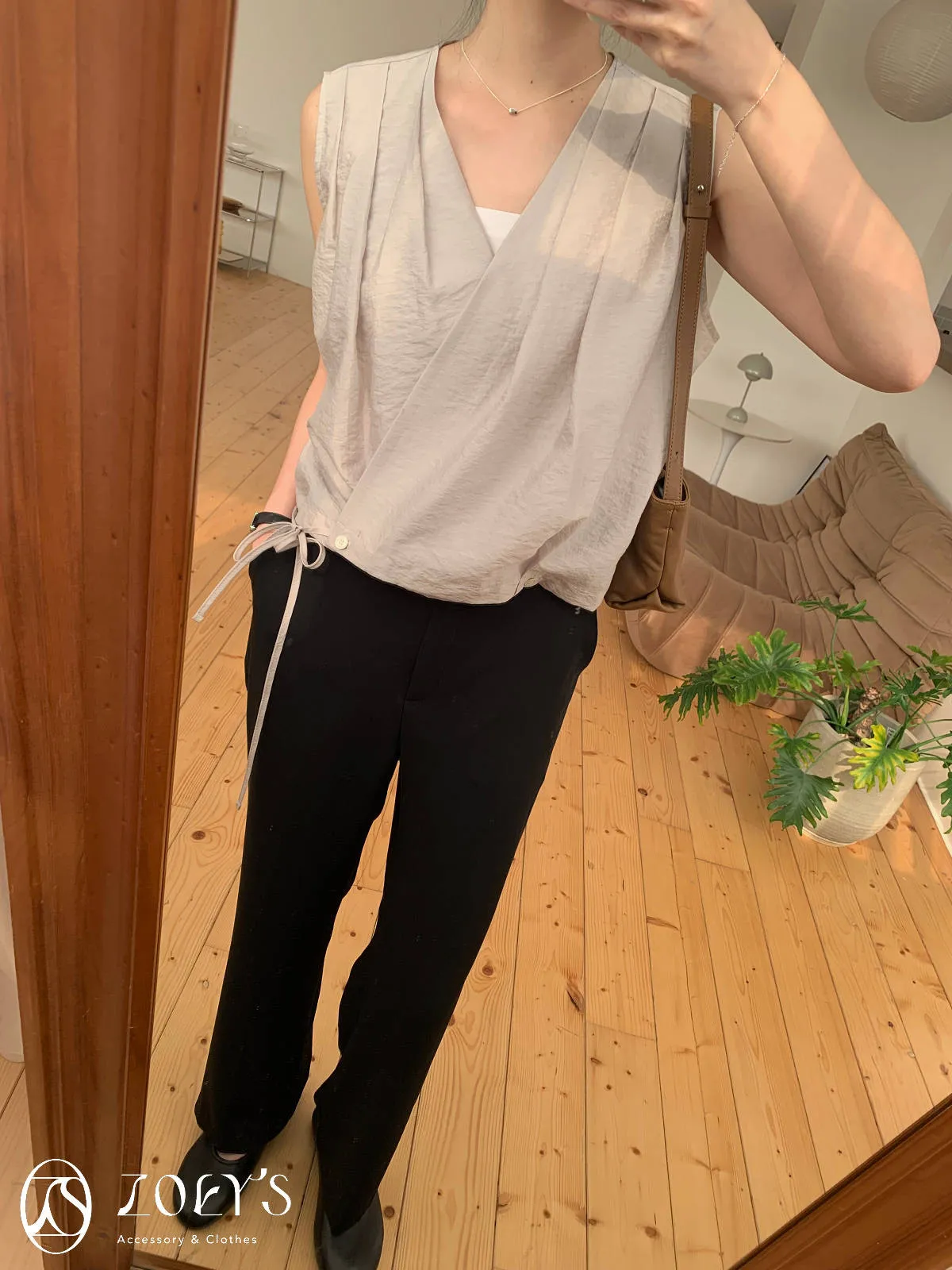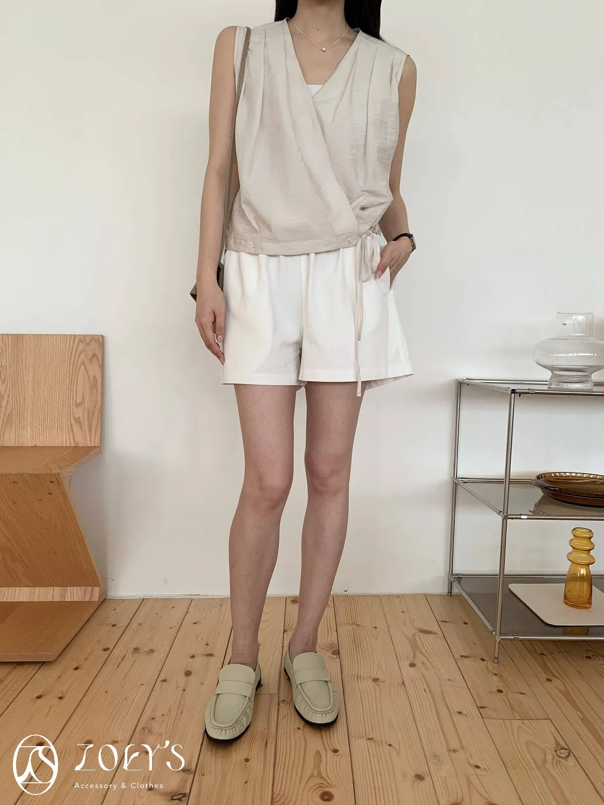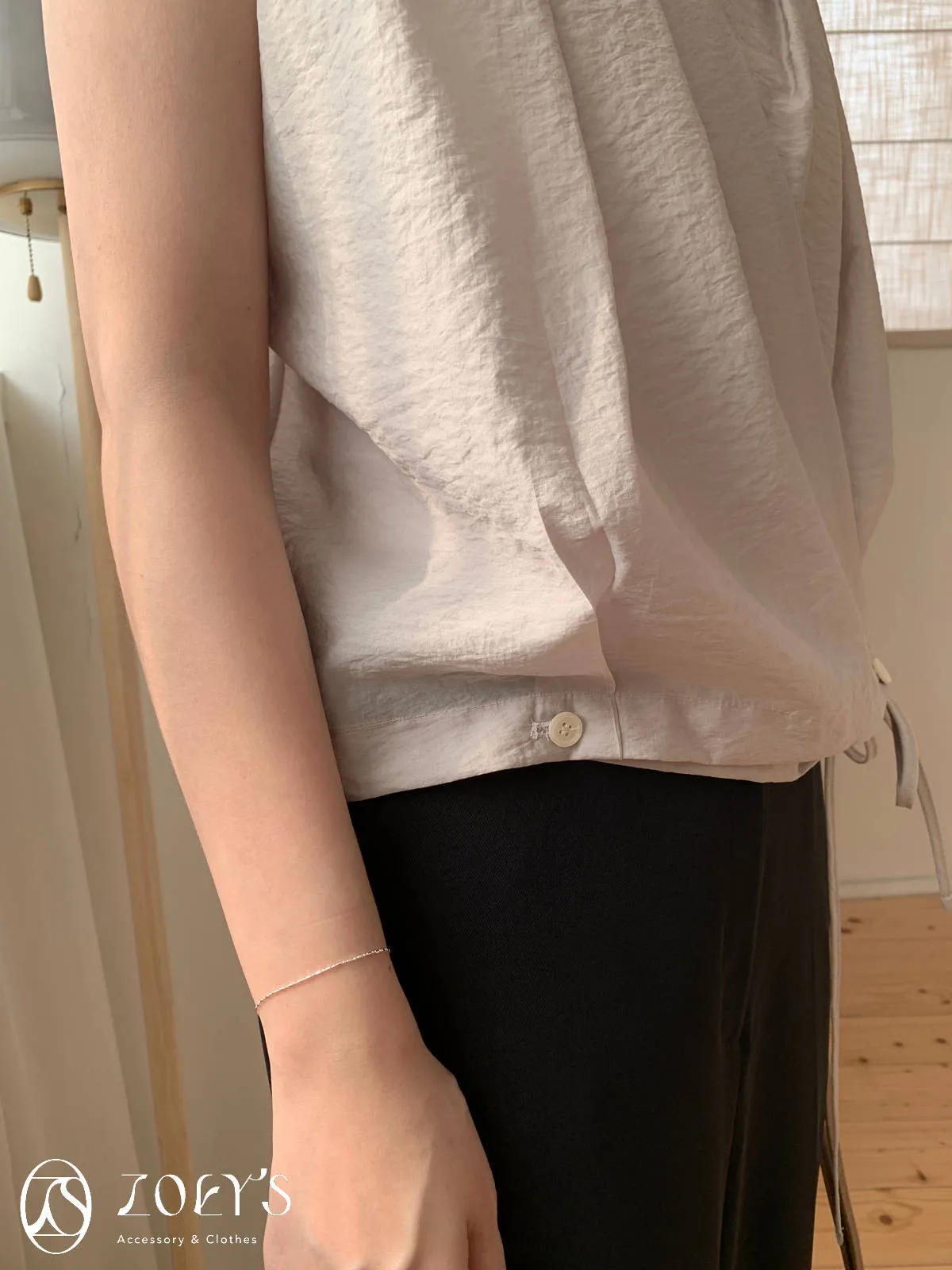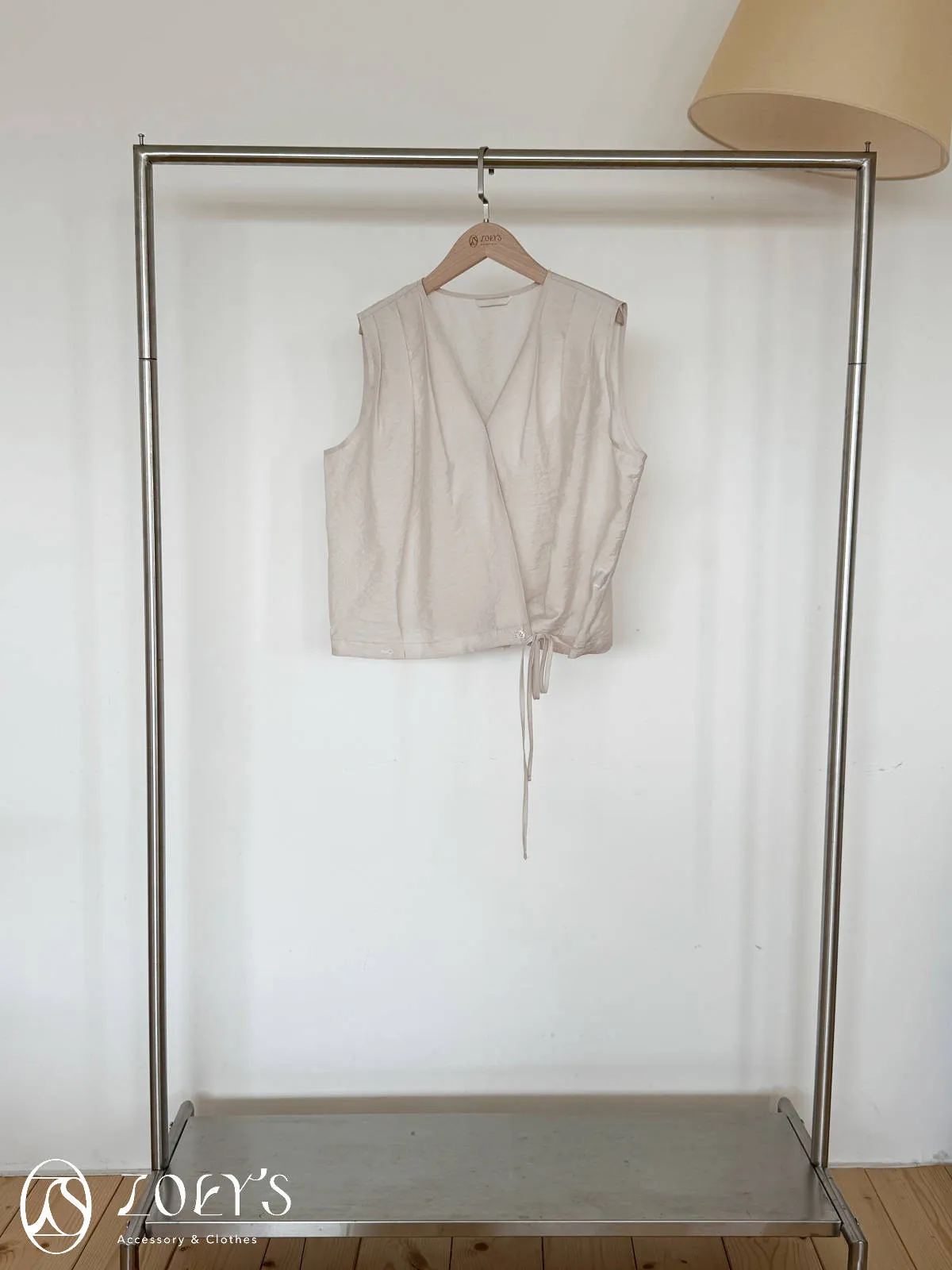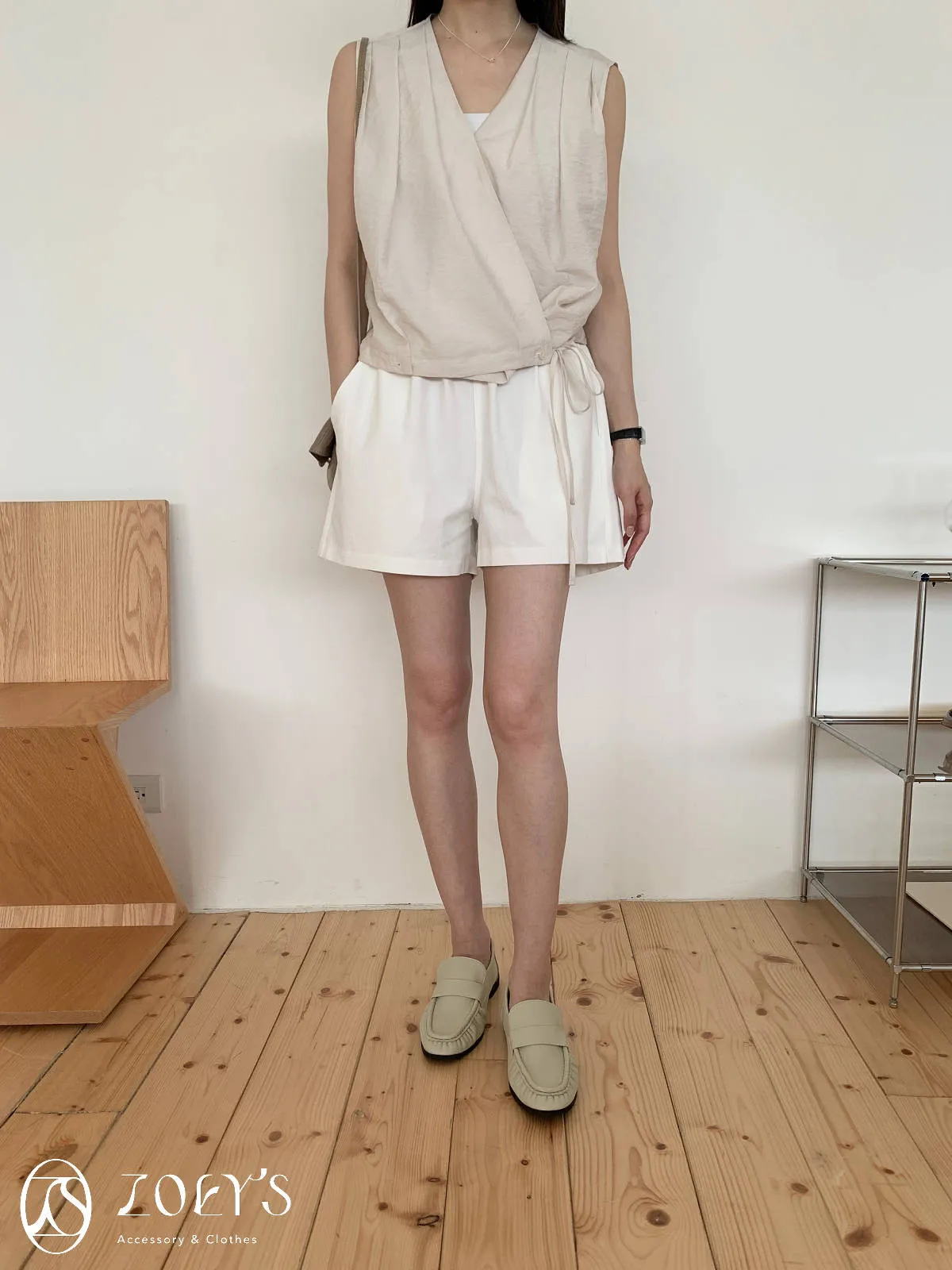 正韓 側扣綁繩無袖襯衫 裸米/灰