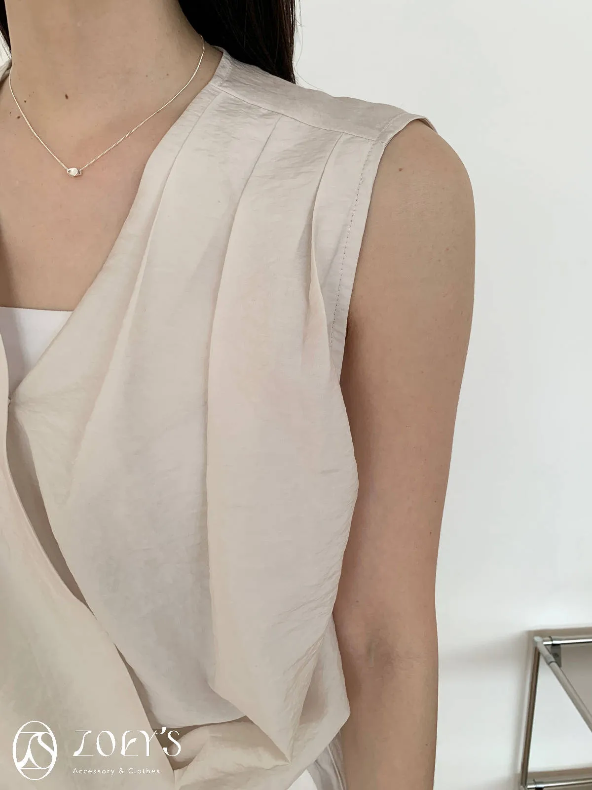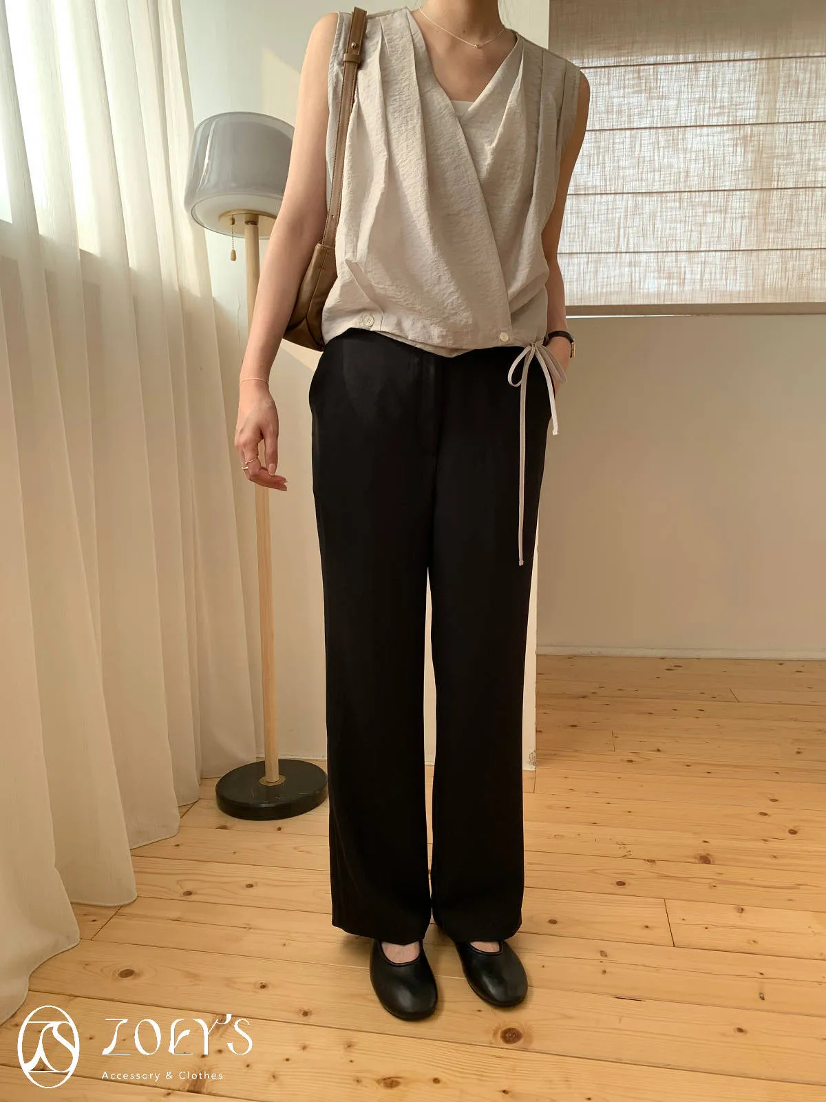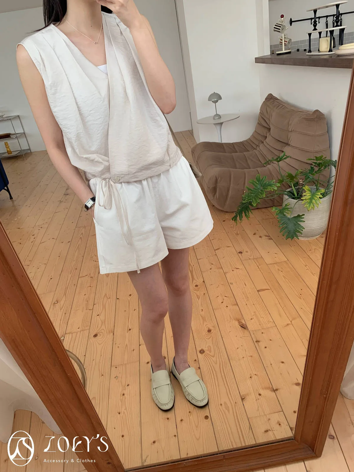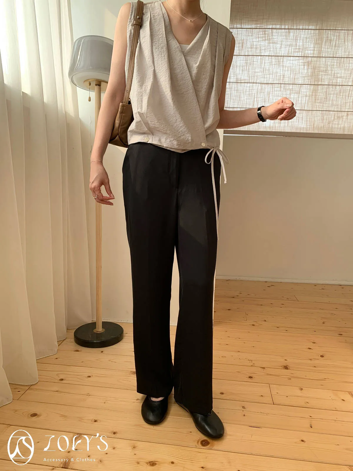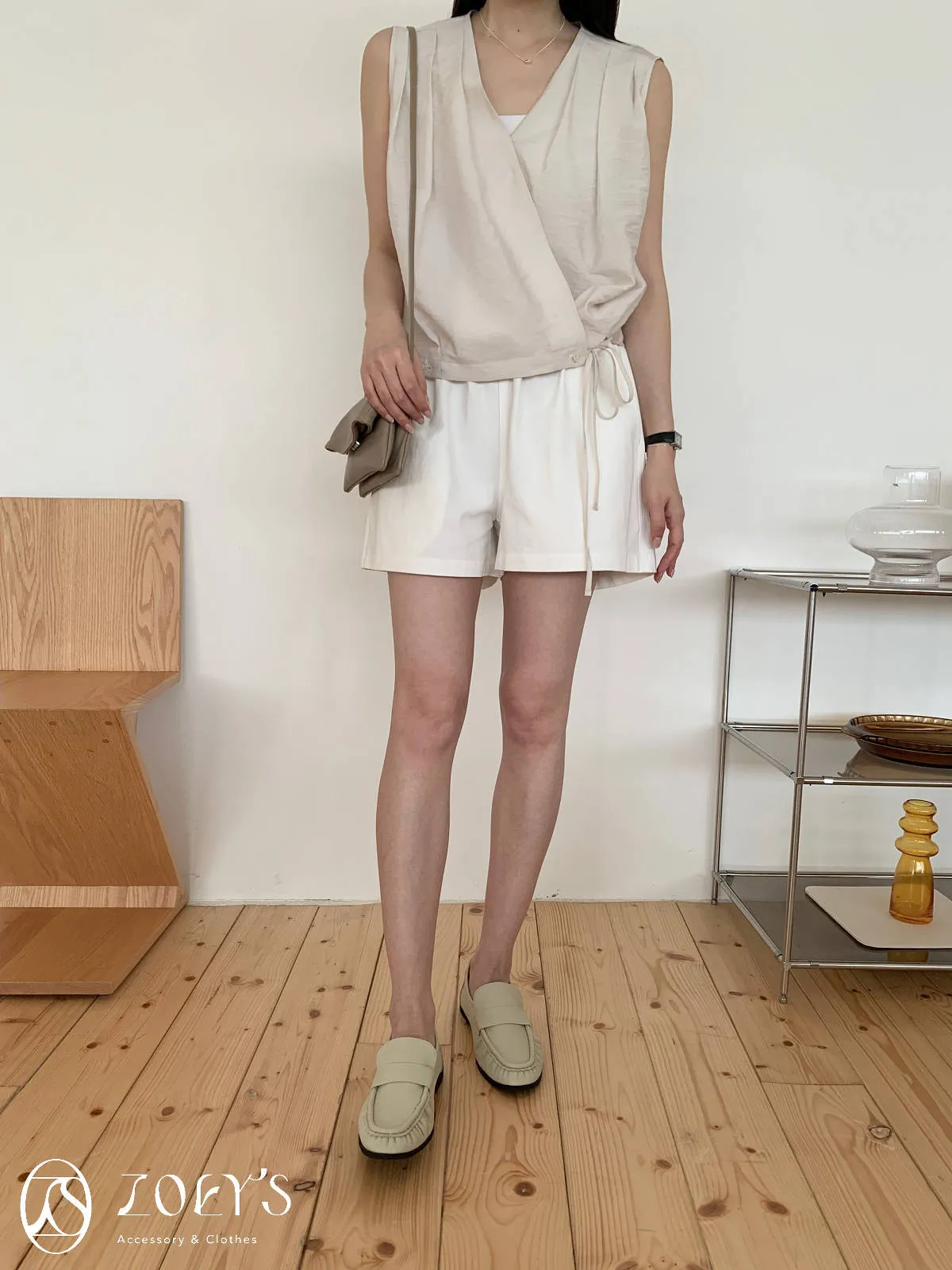 正韓 側扣綁繩無袖襯衫 裸米/灰