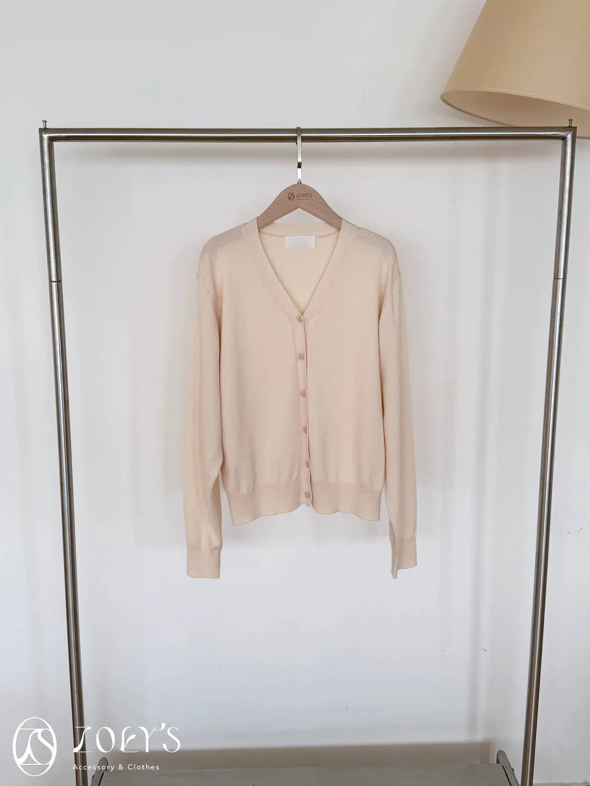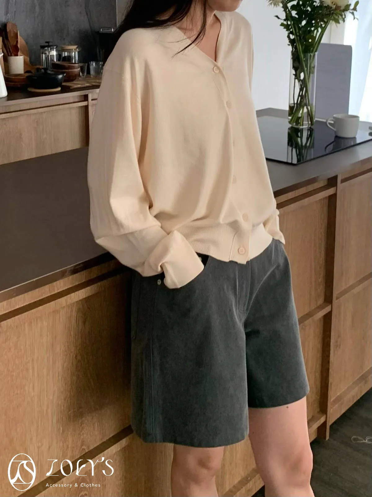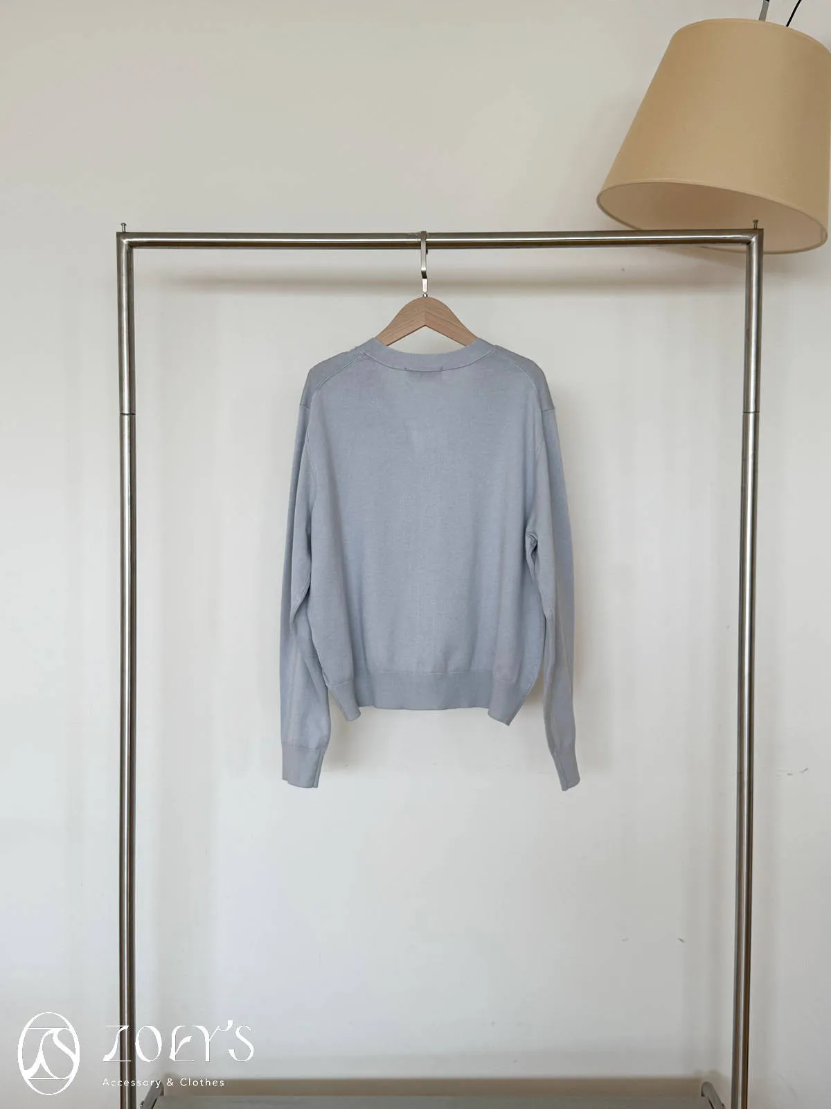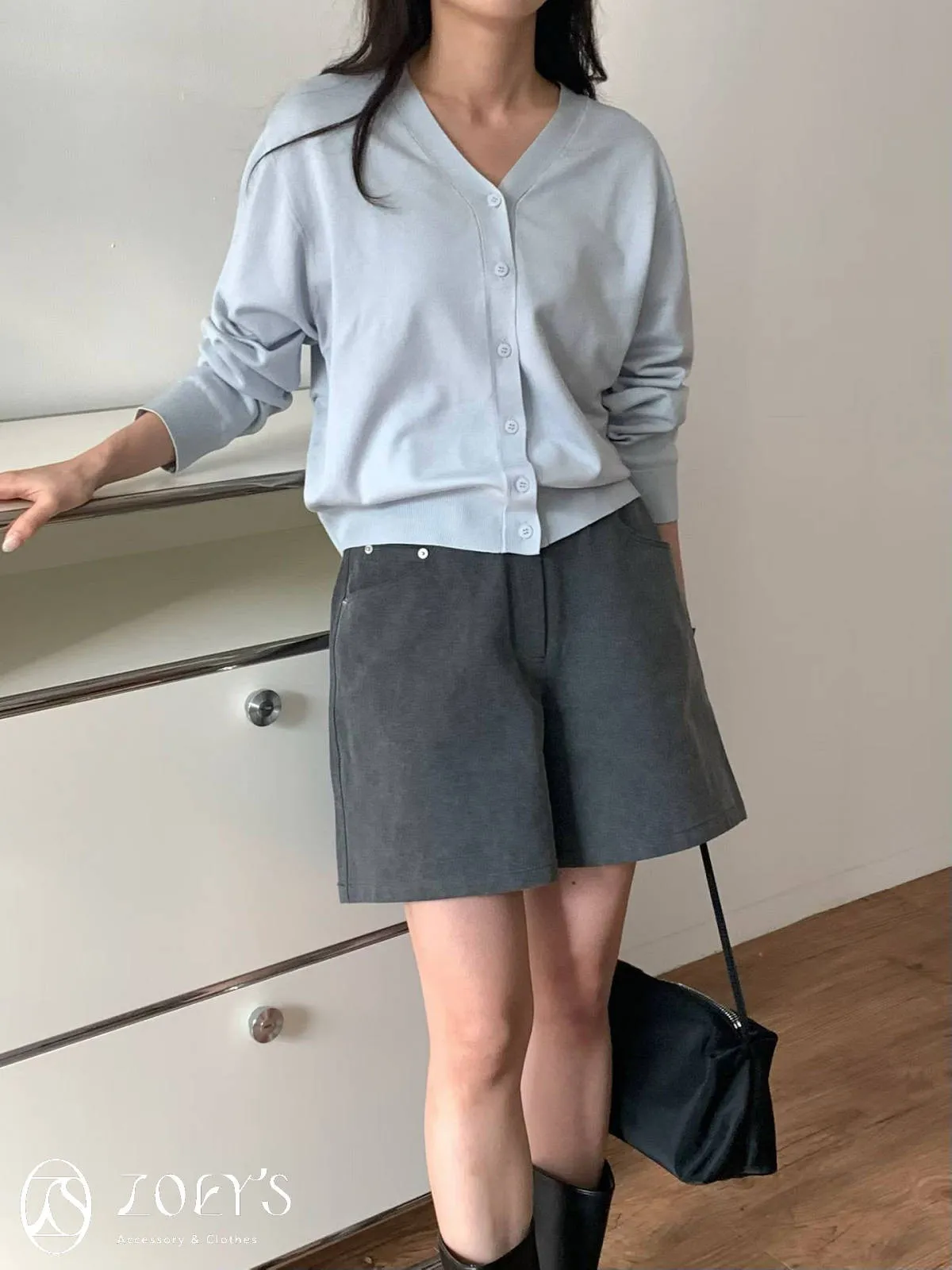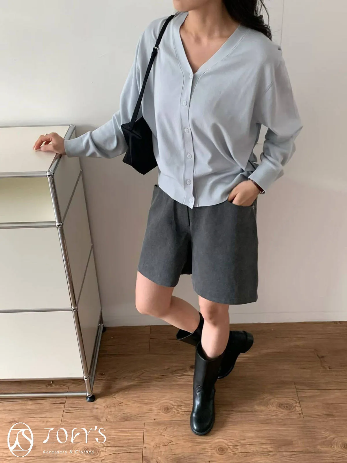 正韓 涼感薄織V領開襟衫 水藍/奶油/灰