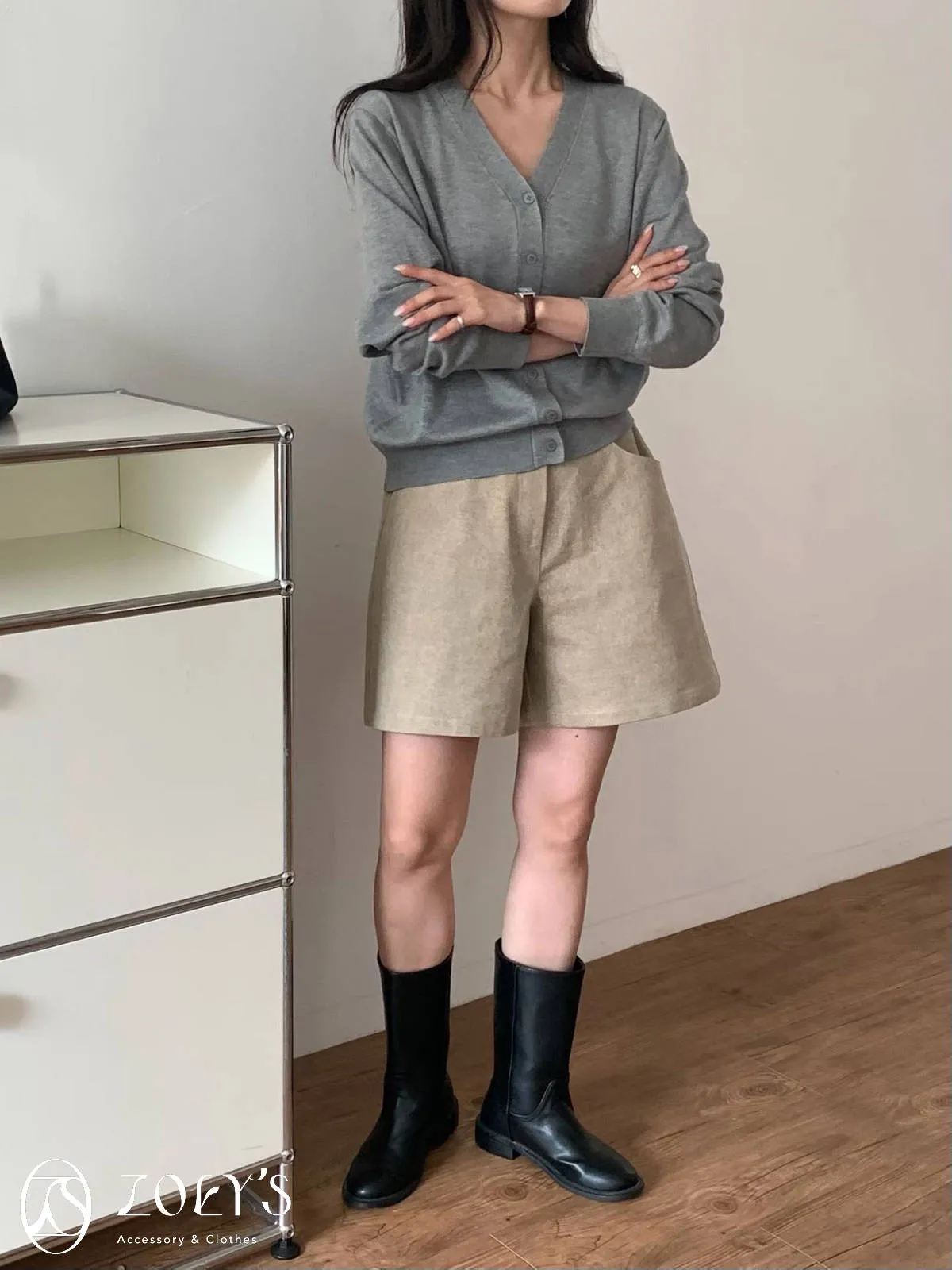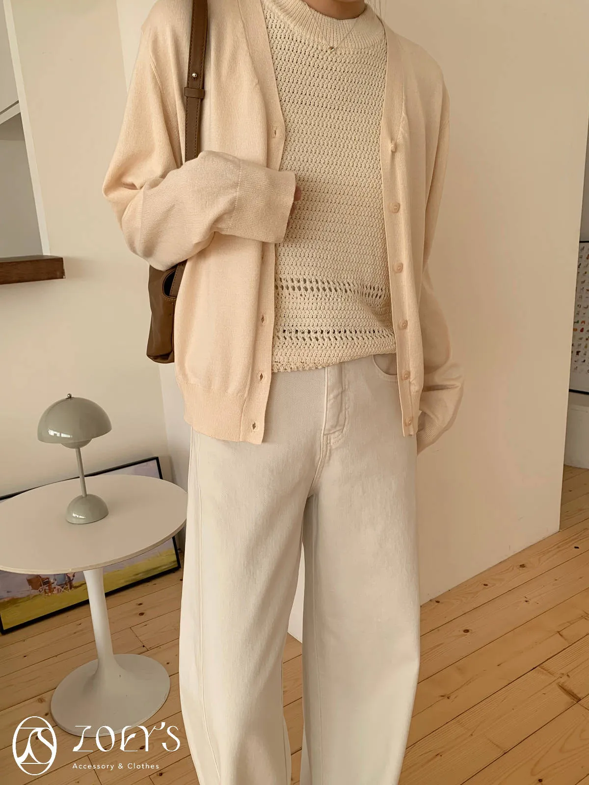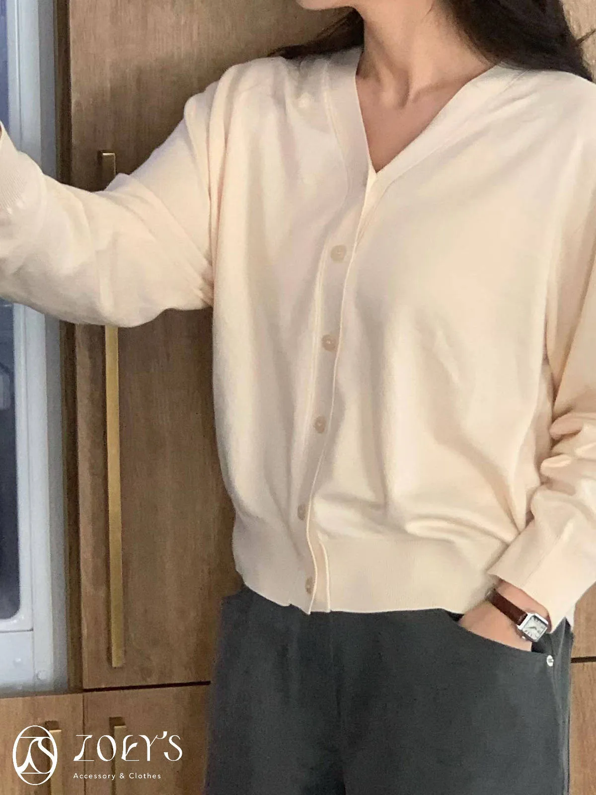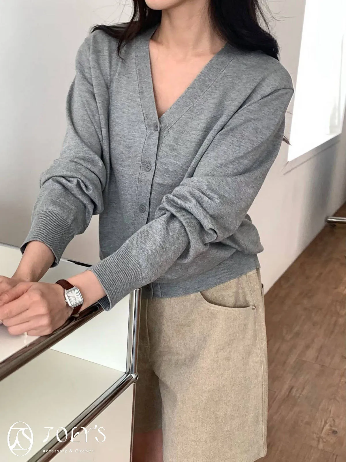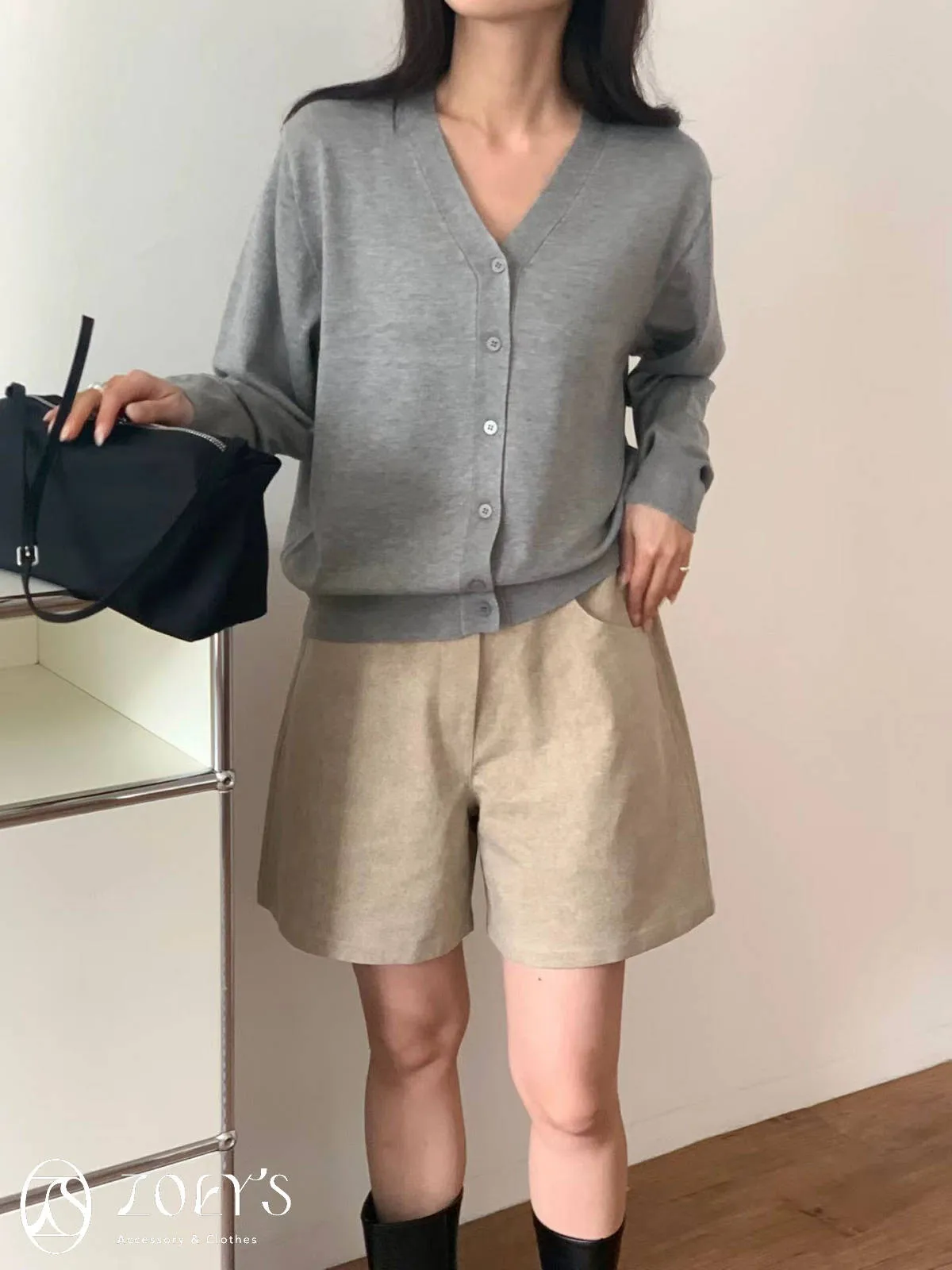 正韓 涼感薄織V領開襟衫 水藍/奶油/灰