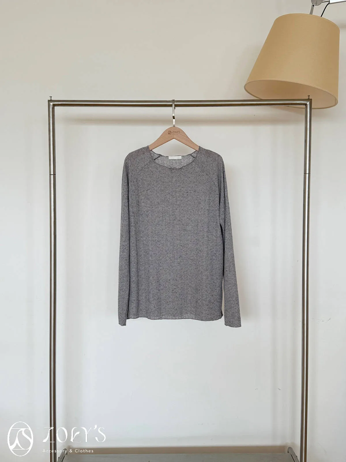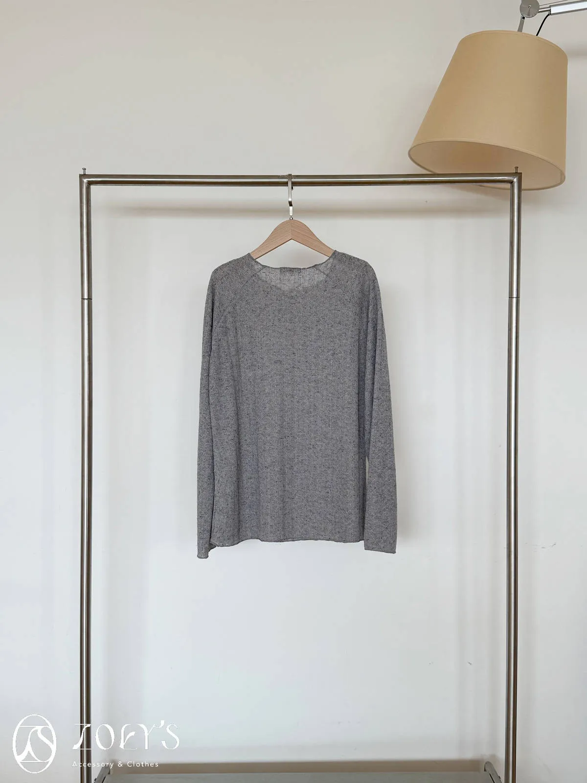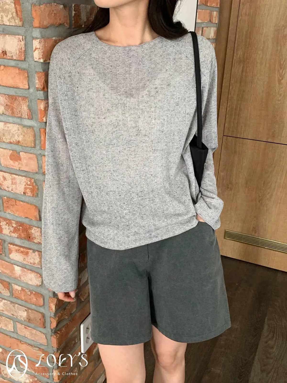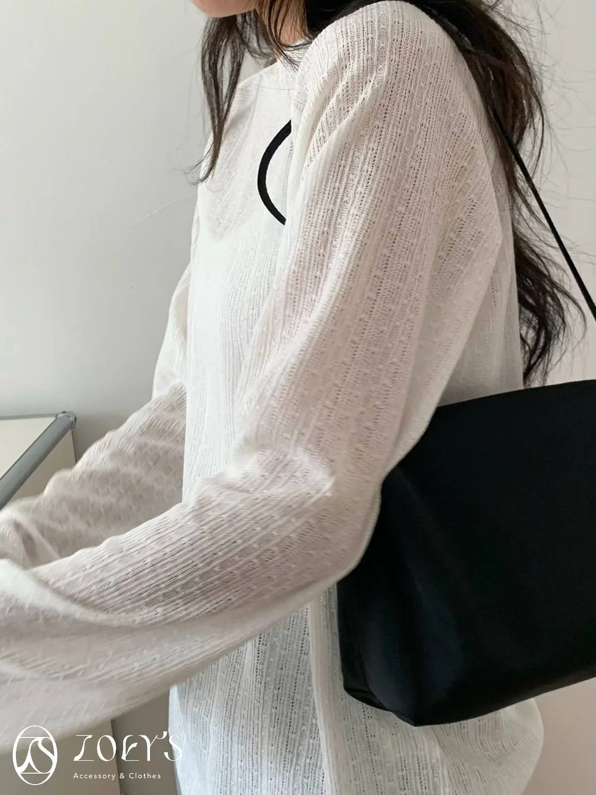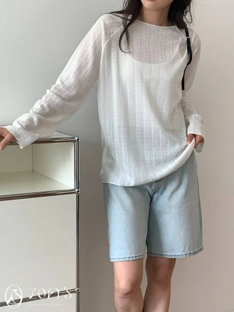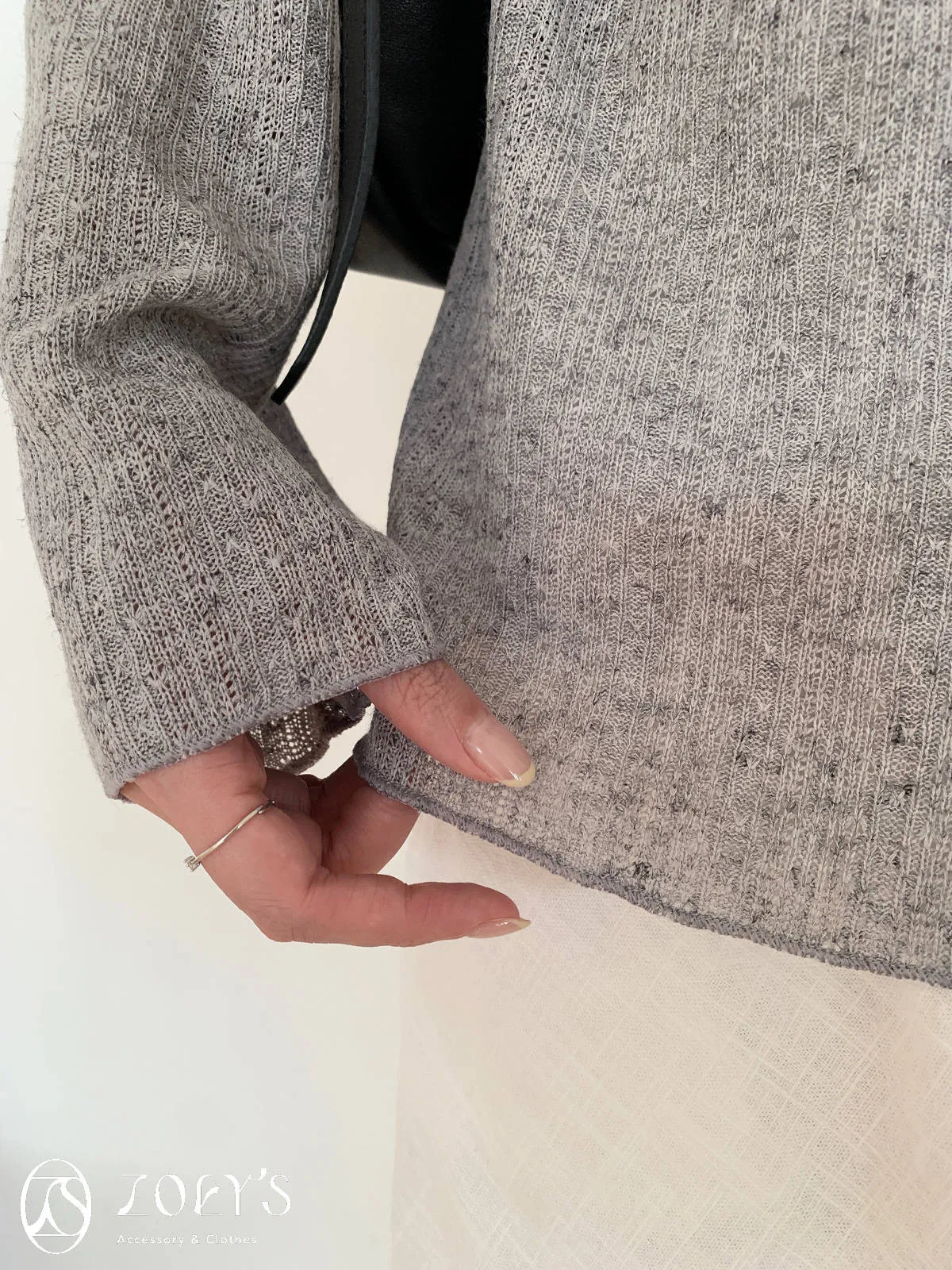正韓 法式簍空斜肩袖上衣 灰/白