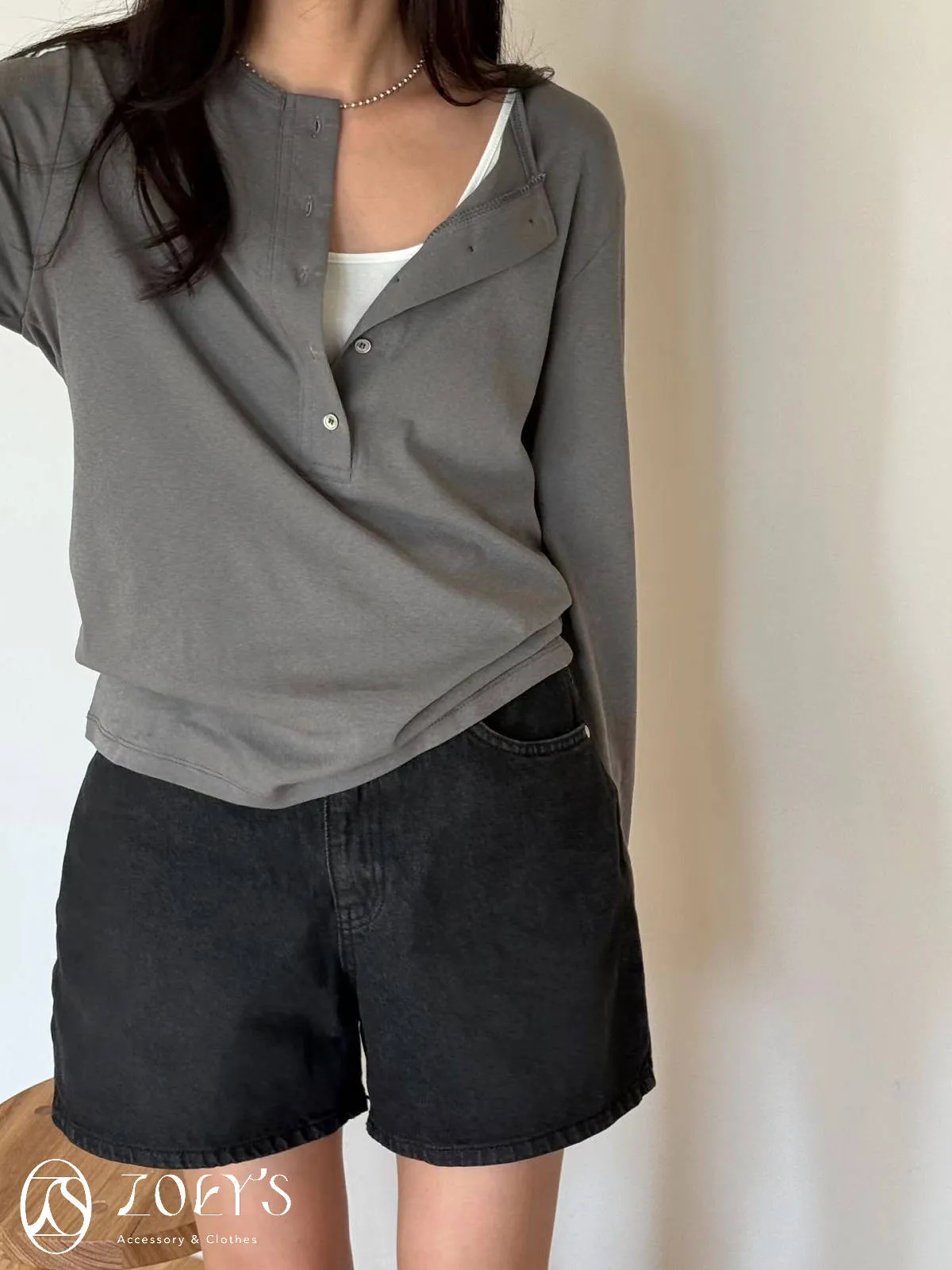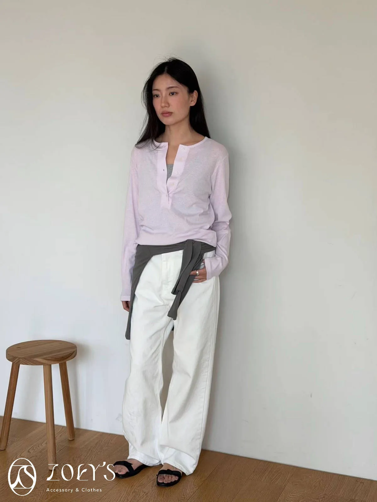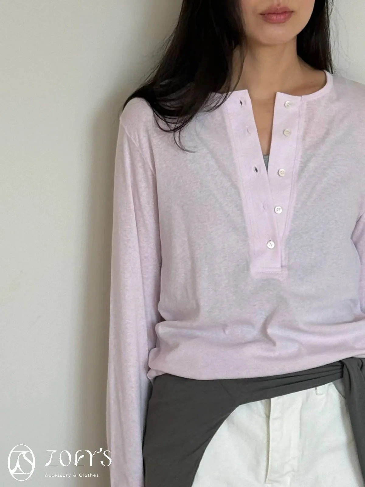 |商品描述| 對亨利領上衣一直特別有好感 但常常遇到穿起來有衛生衣錯覺的款式 這款就不會! 首先是領口開扣邊緣加寬加長.版型不過度寬鬆也不緊貼 布料炎夏友善很薄很涼~但是有挺度不黏身的 粉跟灰調色都很美~~